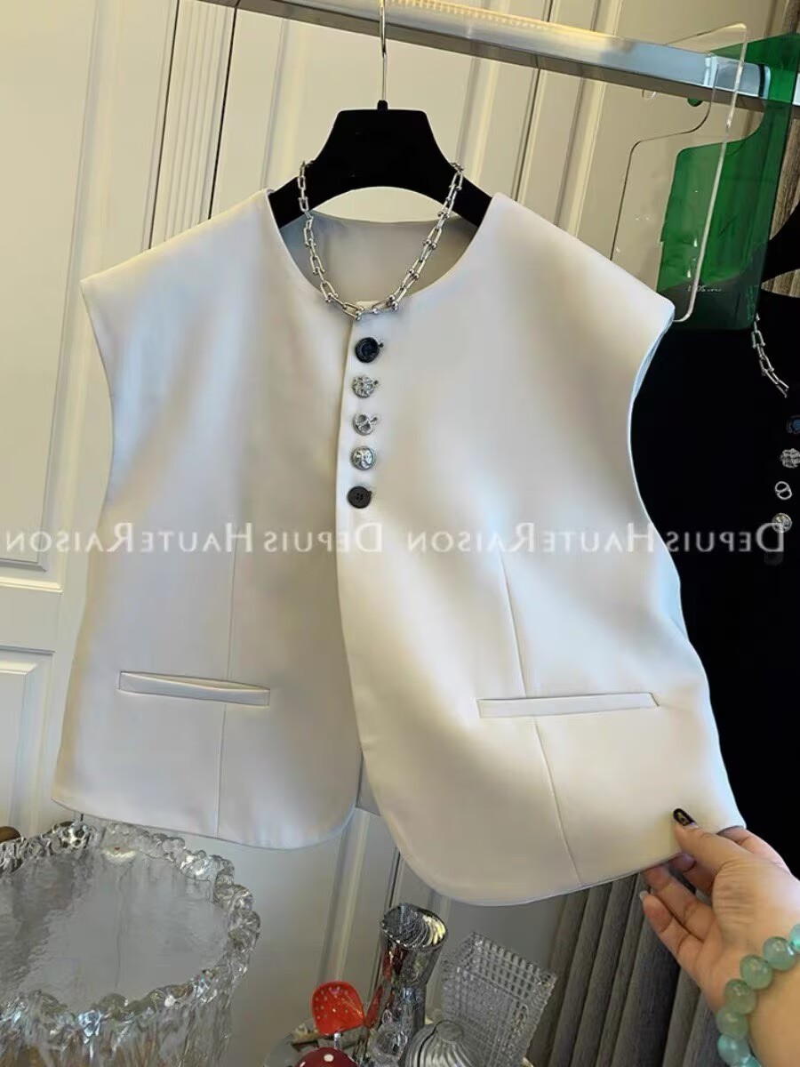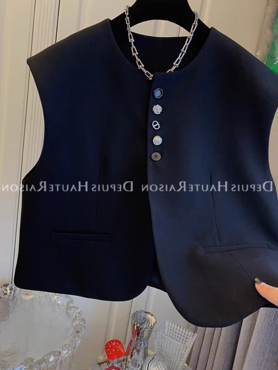 봄 가을 고급 센스 정장 조끼 여자 Chic 단추 조끼 재킷