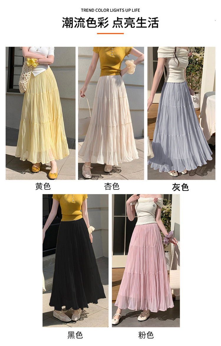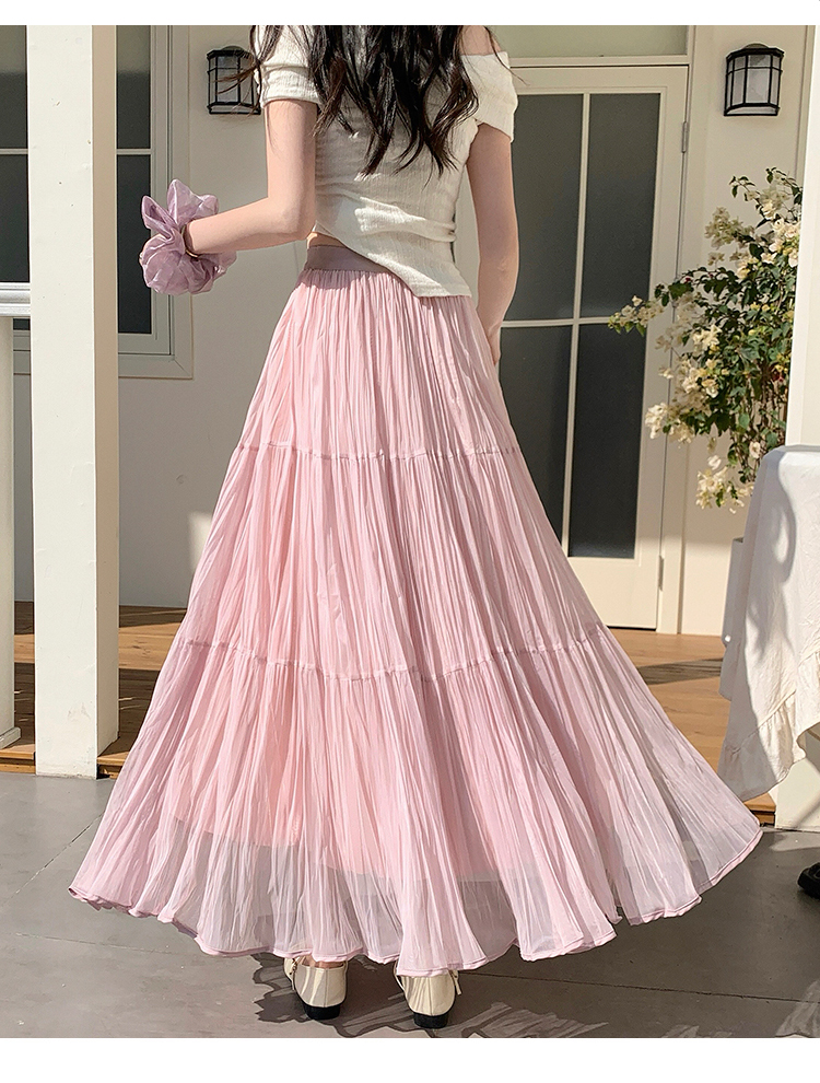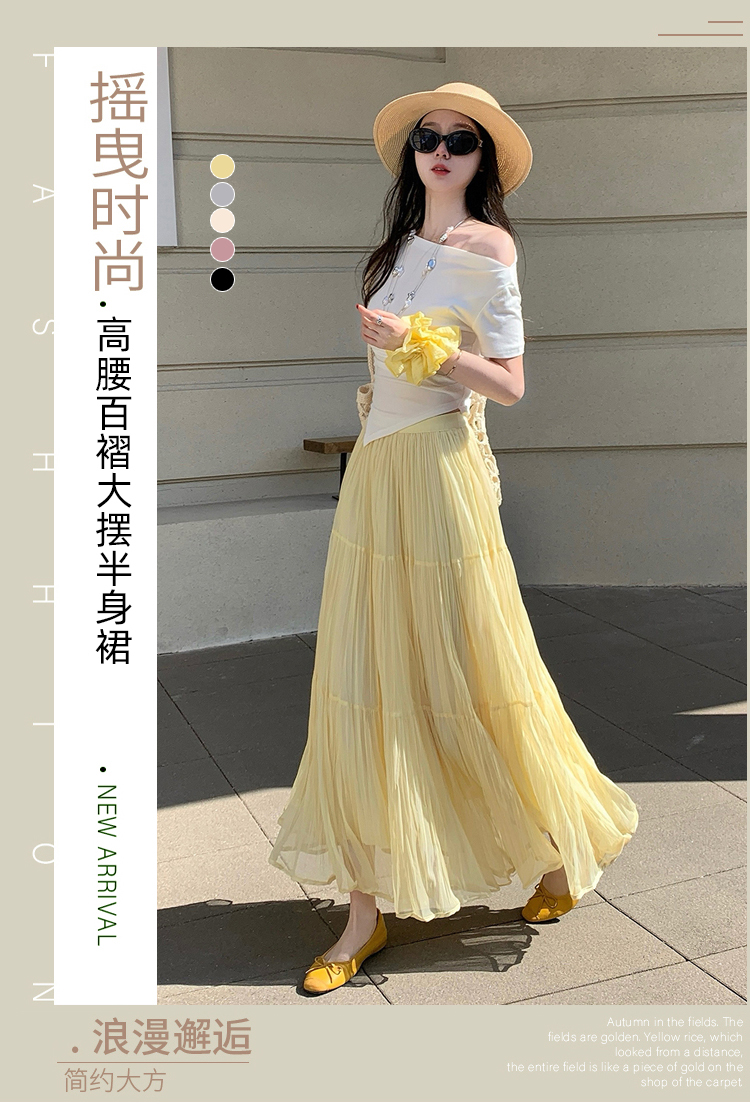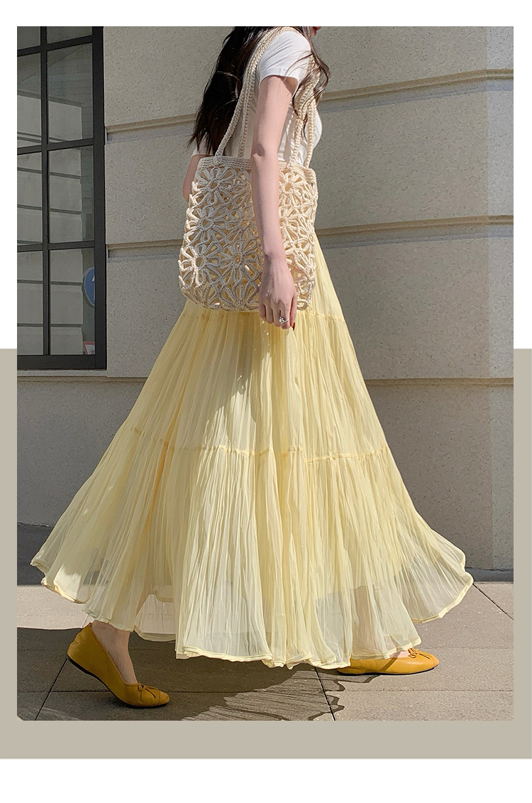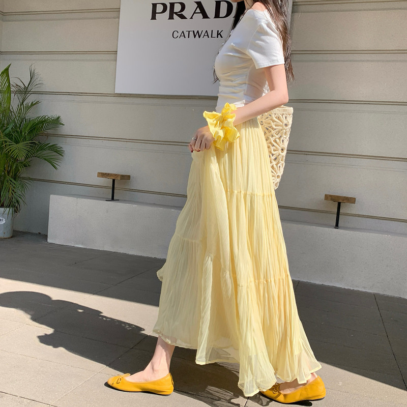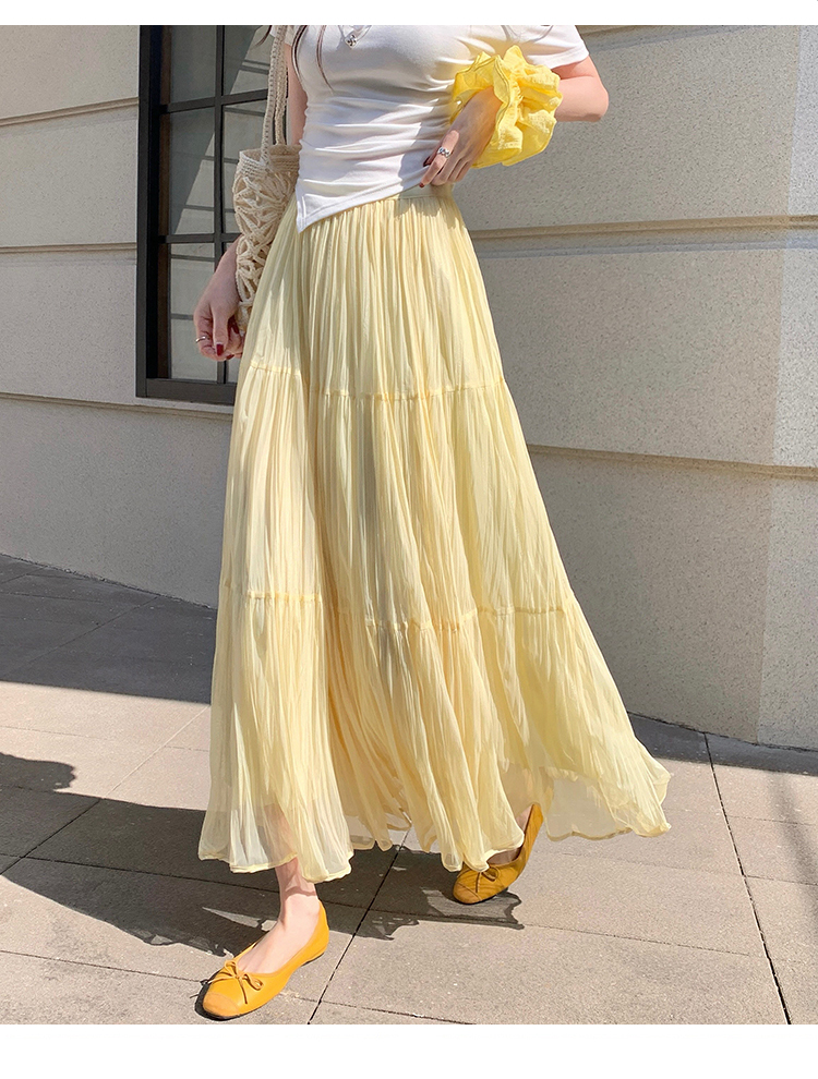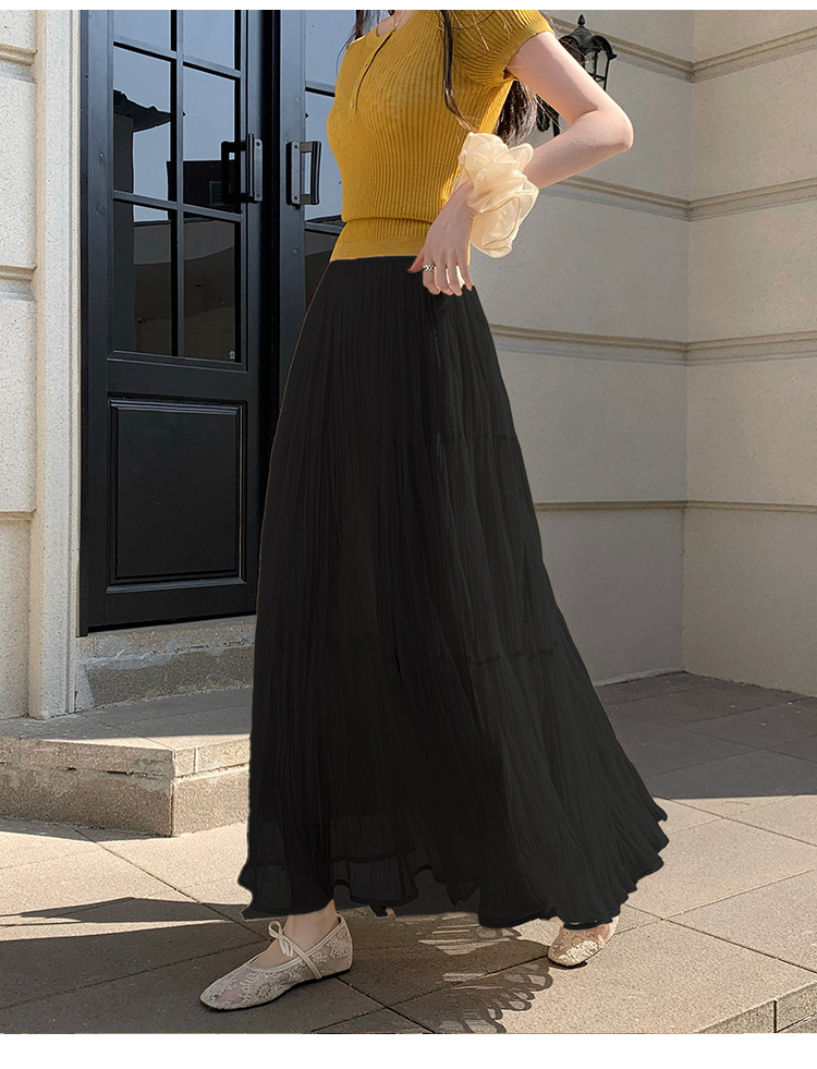 빛 럭셔리 도루 가을 센스 플리츠 쉬폰 반신 스커트 여성 여름 큰 진자 하이웨이스트 슬림해 보이는 한 마디 표지 넓적 다리 플리츠 롱 스커트