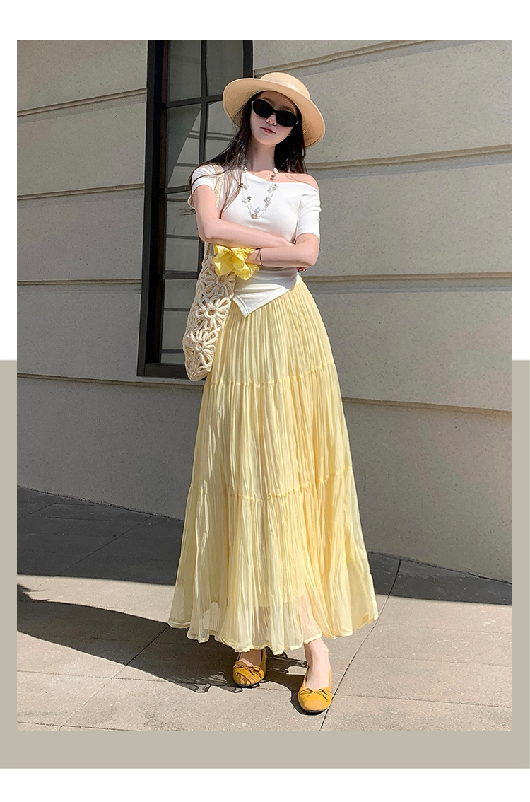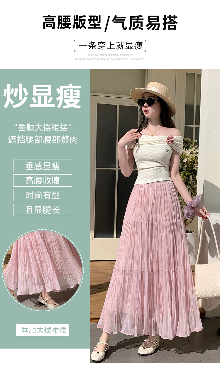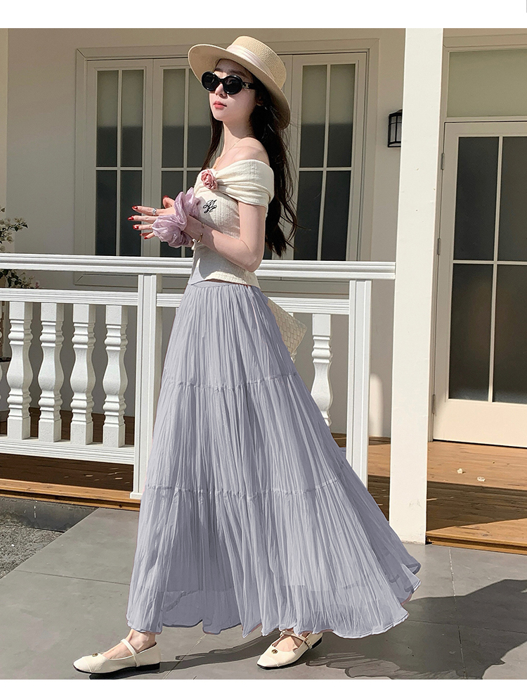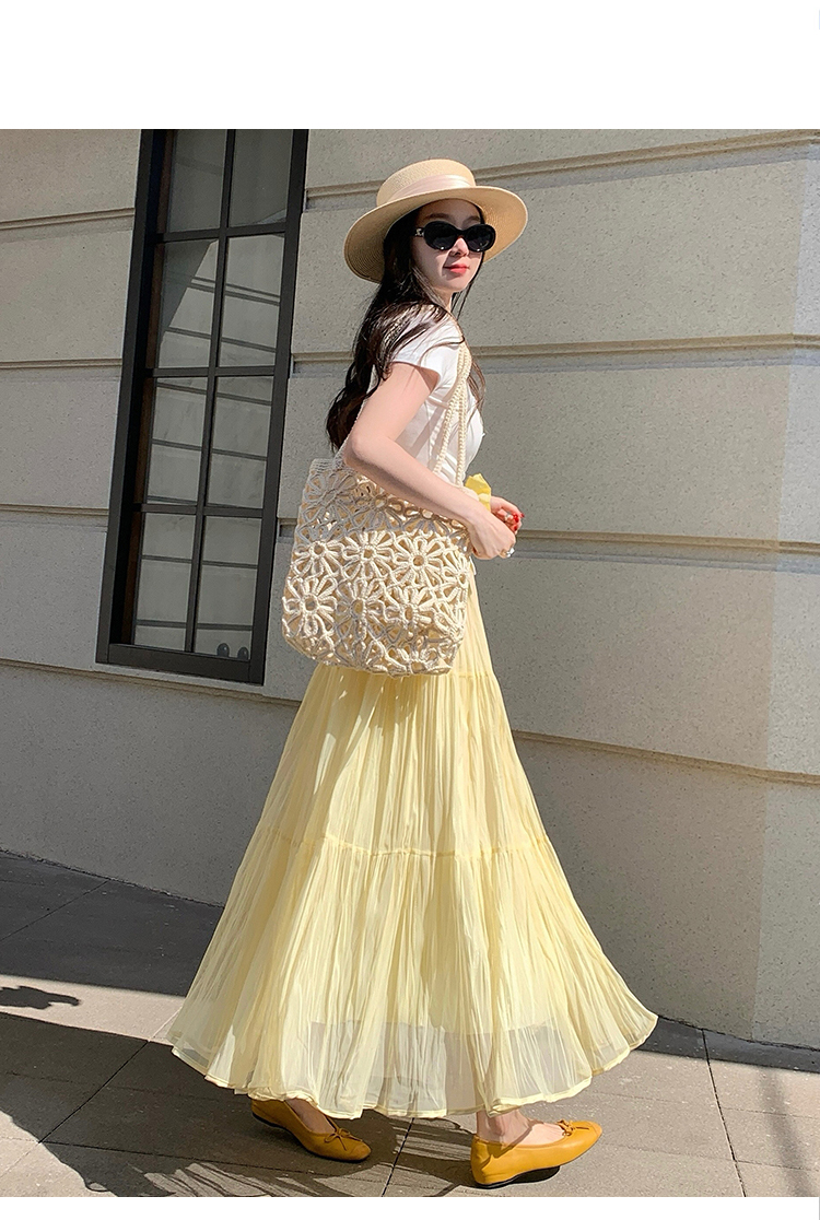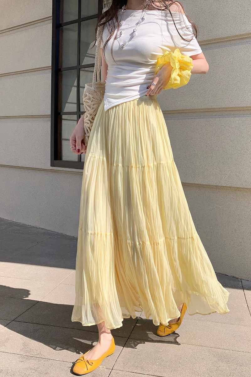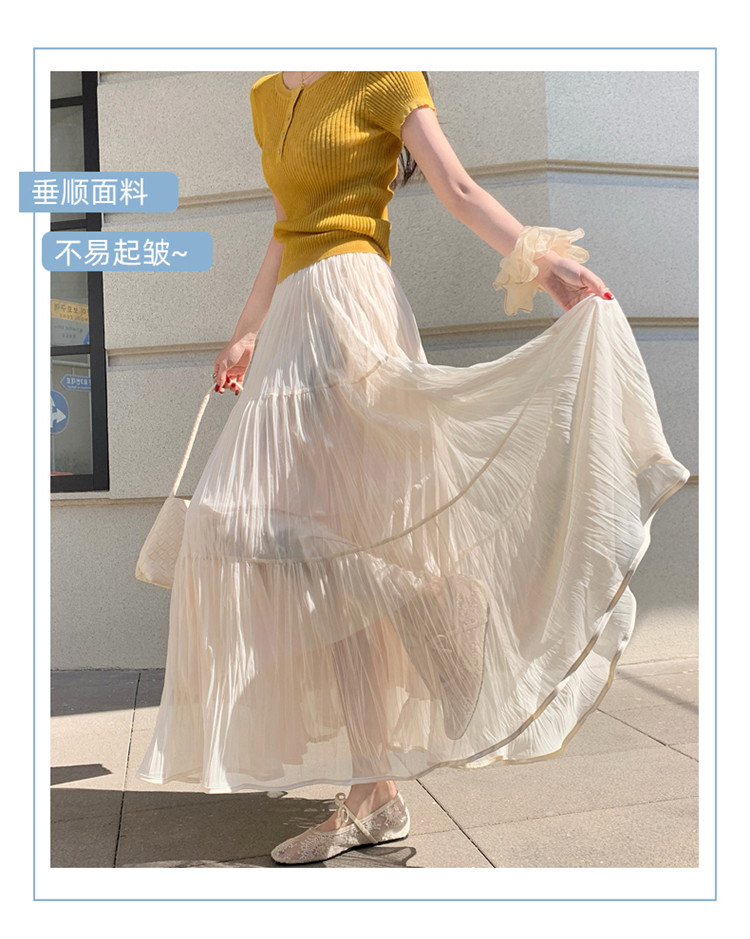 빛 럭셔리 도루 가을 센스 플리츠 쉬폰 반신 스커트 여성 여름 큰 진자 하이웨이스트 슬림해 보이는 한 마디 표지 넓적 다리 플리츠 롱 스커트