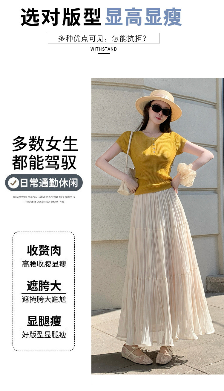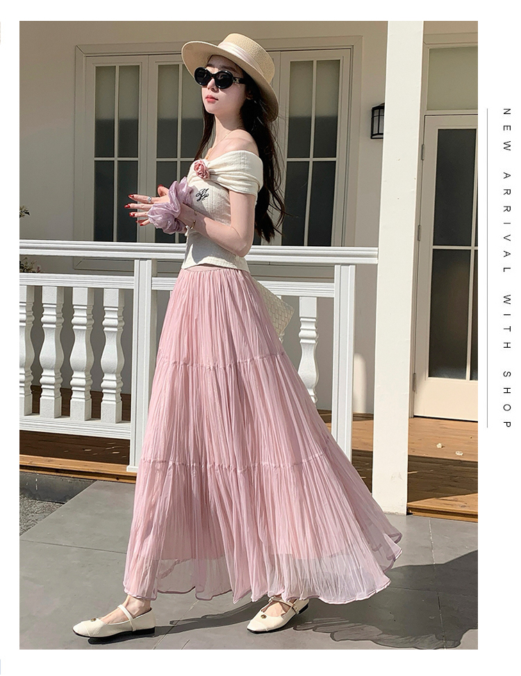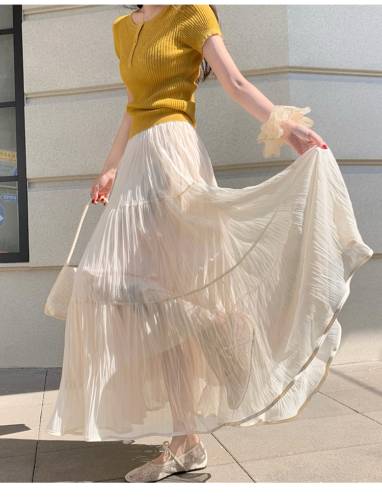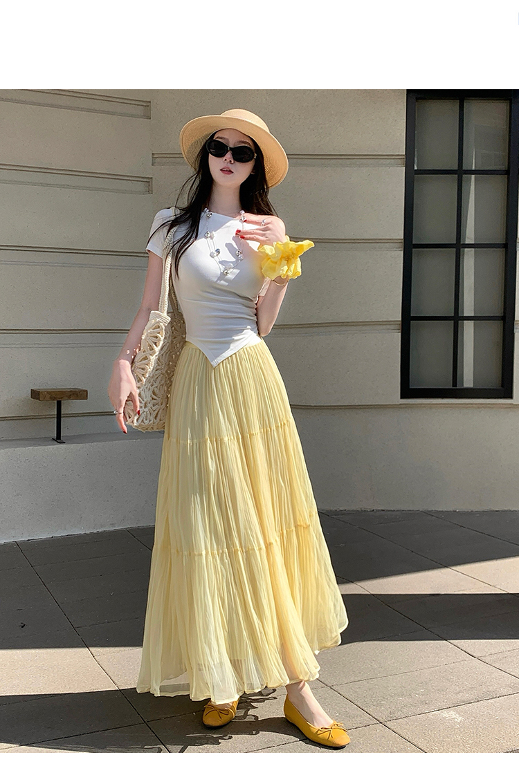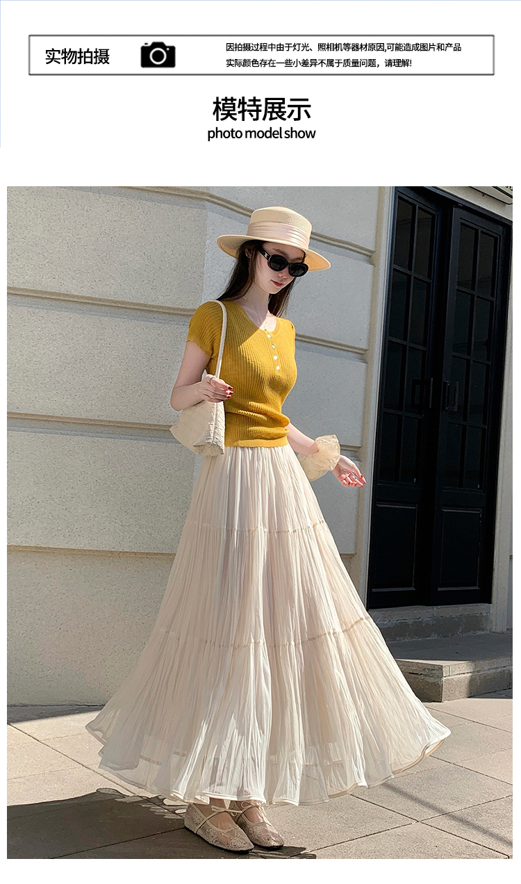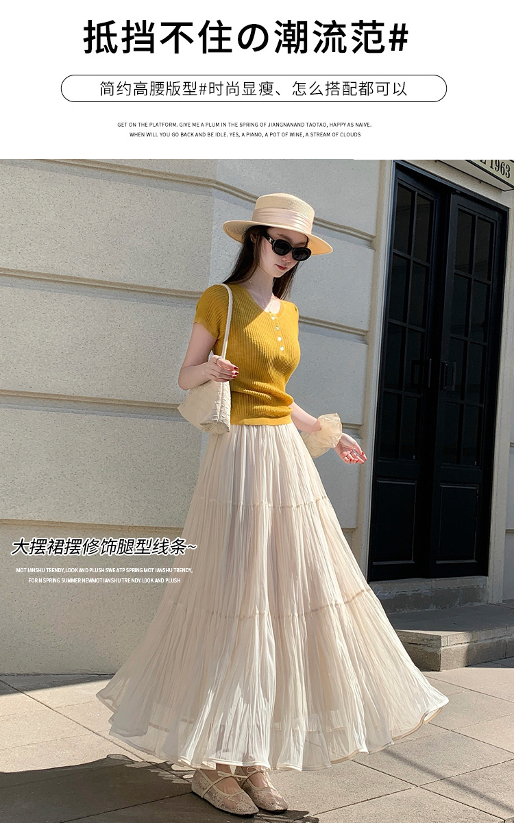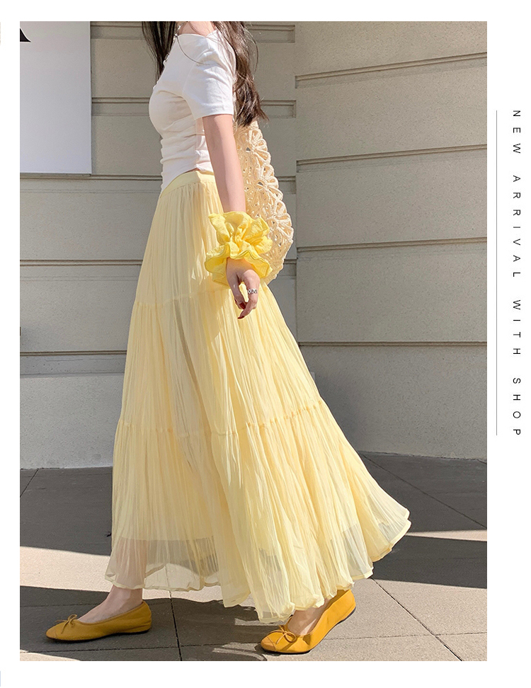 빛 럭셔리 도루 가을 센스 플리츠 쉬폰 반신 스커트 여성 여름 큰 진자 하이웨이스트 슬림해 보이는 한 마디 표지 넓적 다리 플리츠 롱 스커트