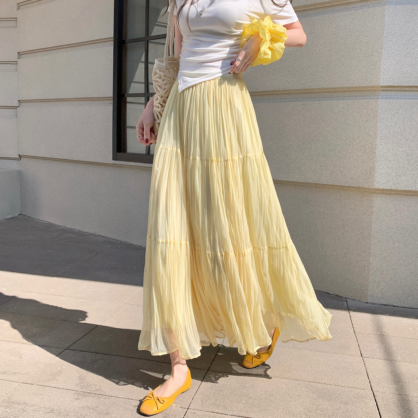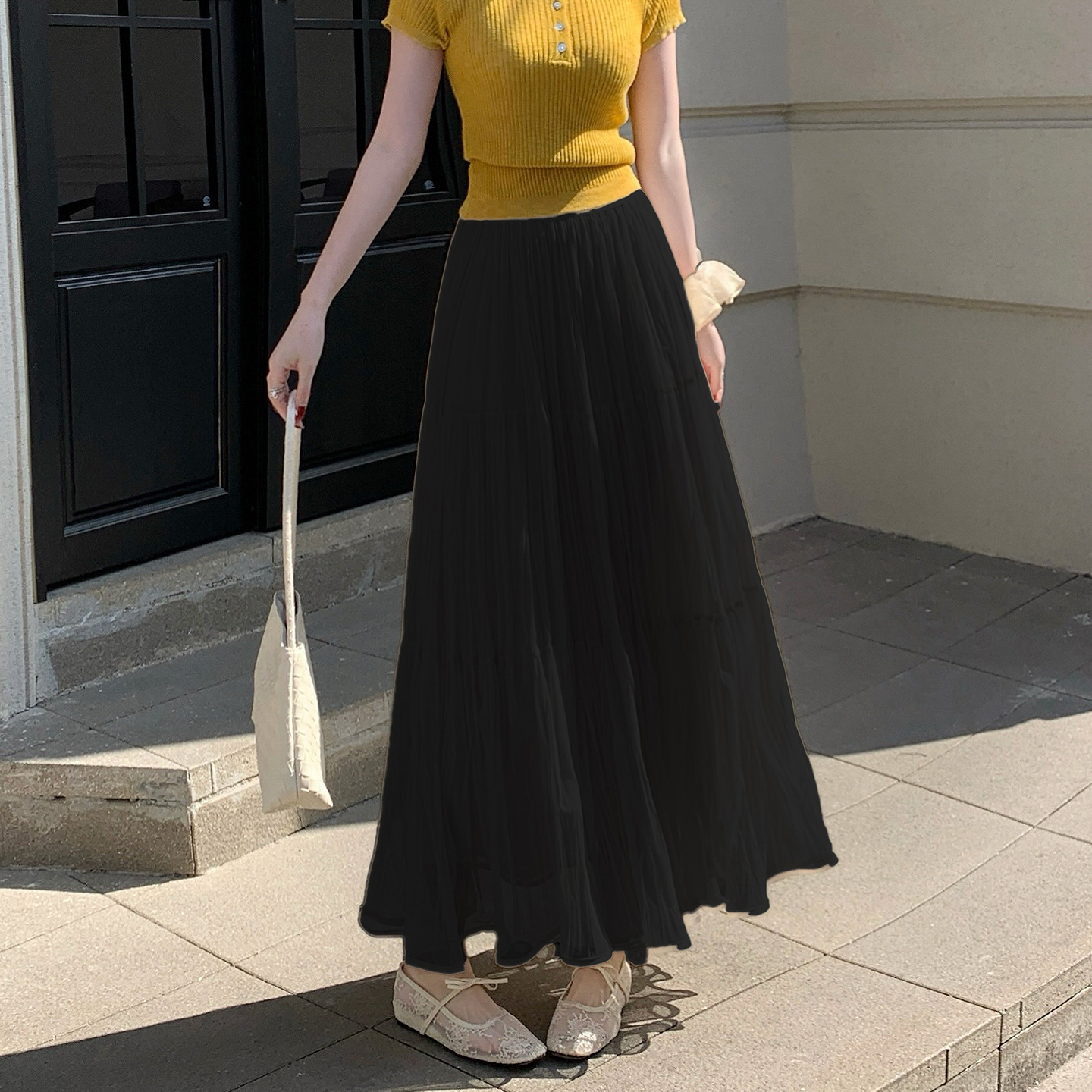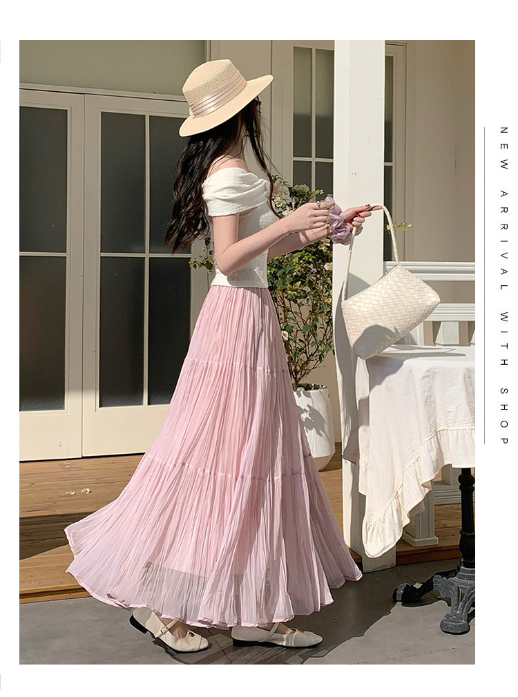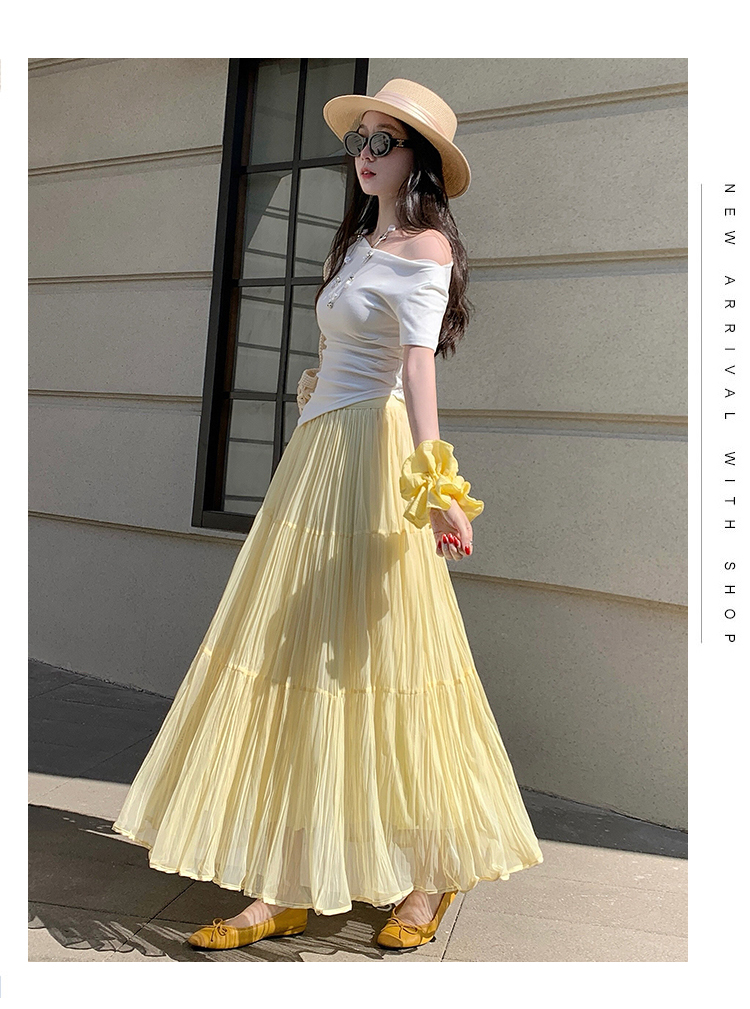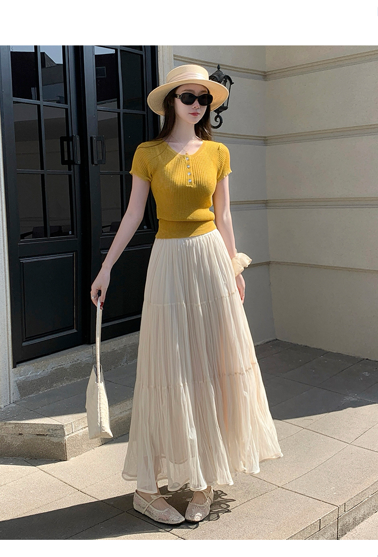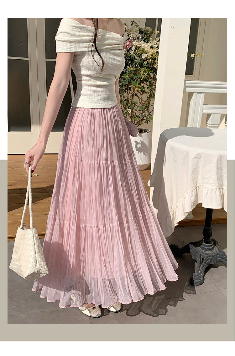 빛 럭셔리 도루 가을 센스 플리츠 쉬폰 반신 스커트 여성 여름 큰 진자 하이웨이스트 슬림해 보이는 한 마디 표지 넓적 다리 플리츠 롱 스커트