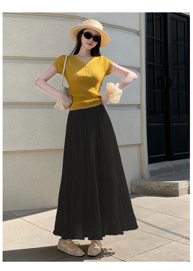우아한 큰 진자 주름 질감 센스 망사 반신 스커트 여성 여름 얇은 스타일 패션 한 마디 프릴 케이크 드레스