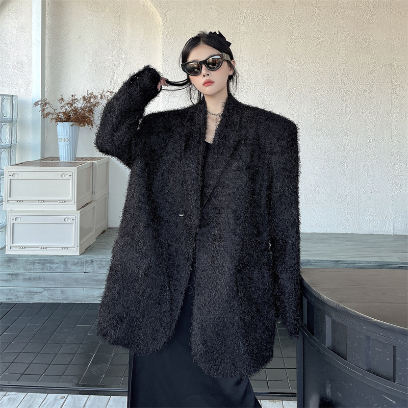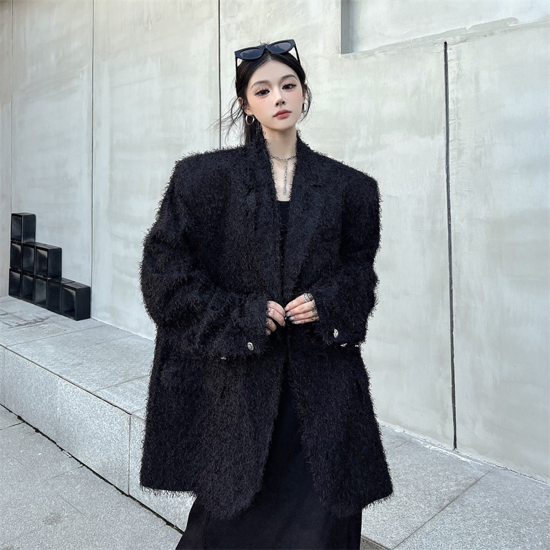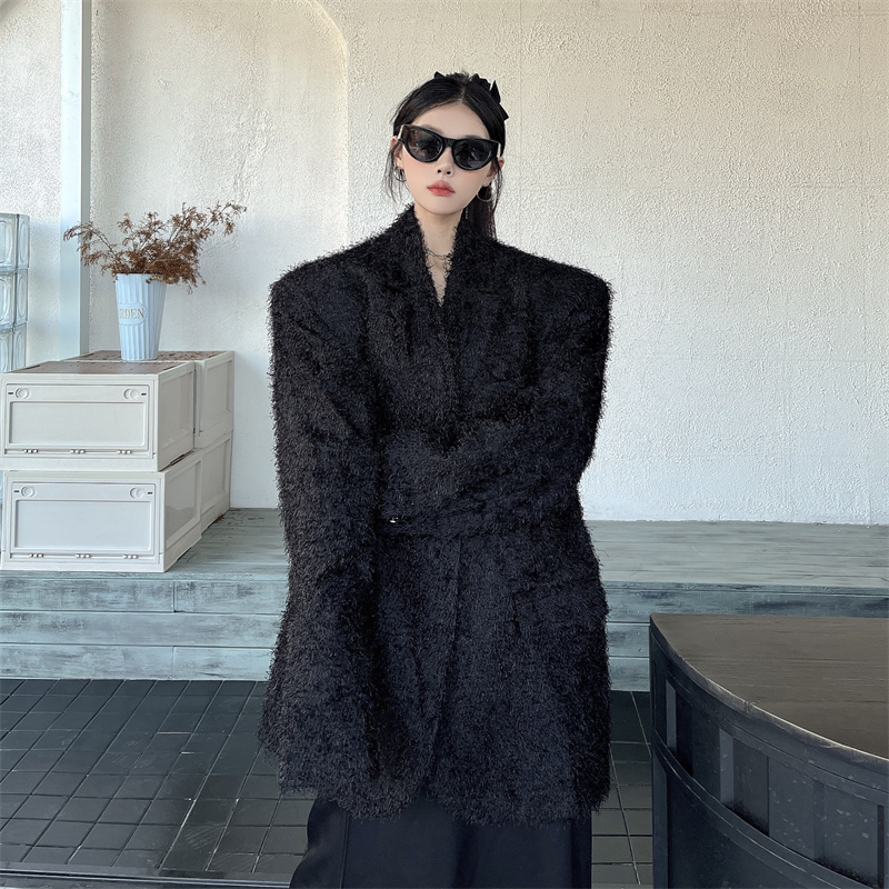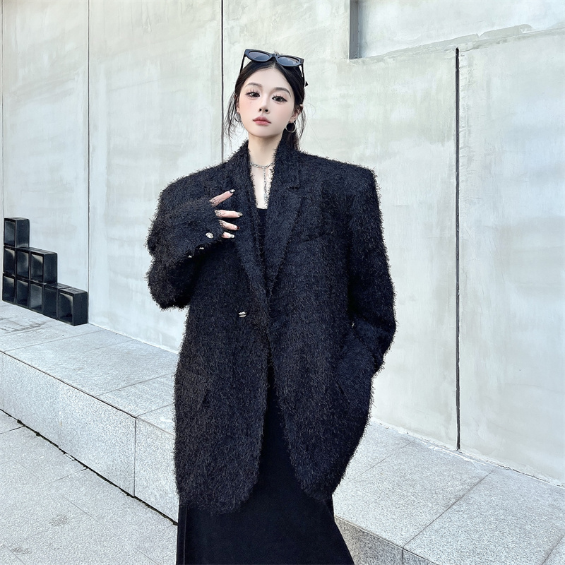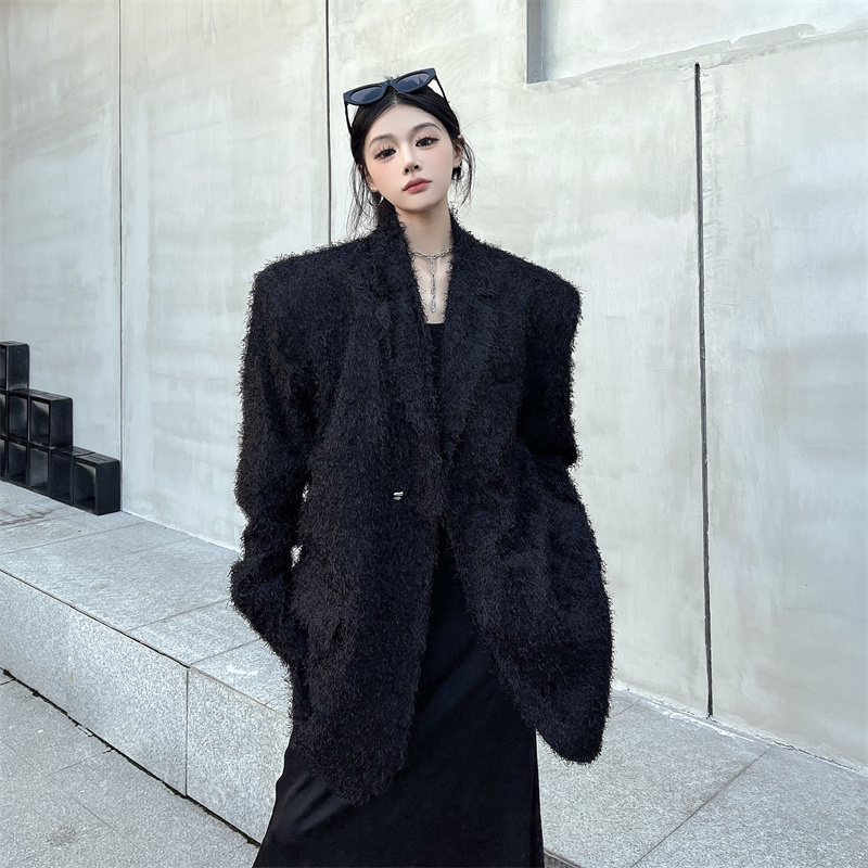 실사 Gypsophila 뿌리다 분말 디자인 센스 검정색 정장 여성 코트 다림질 금박 반짝임 고급 센스 정장 트렌디