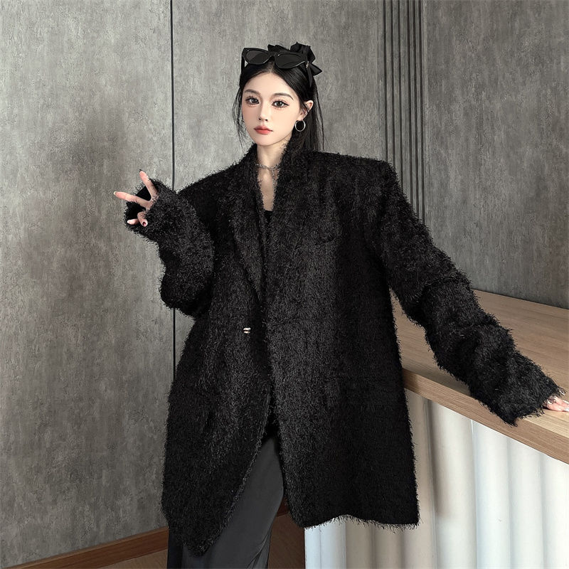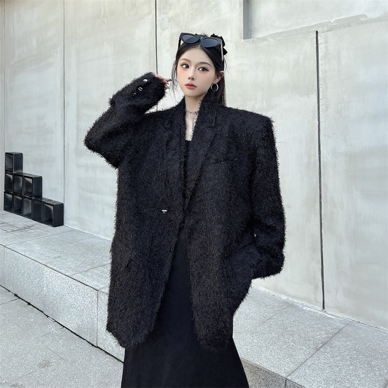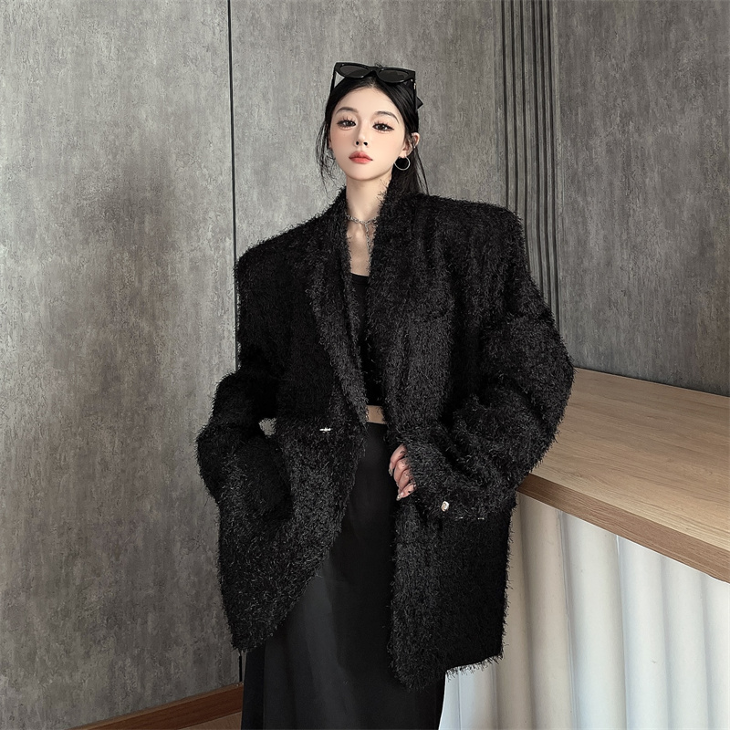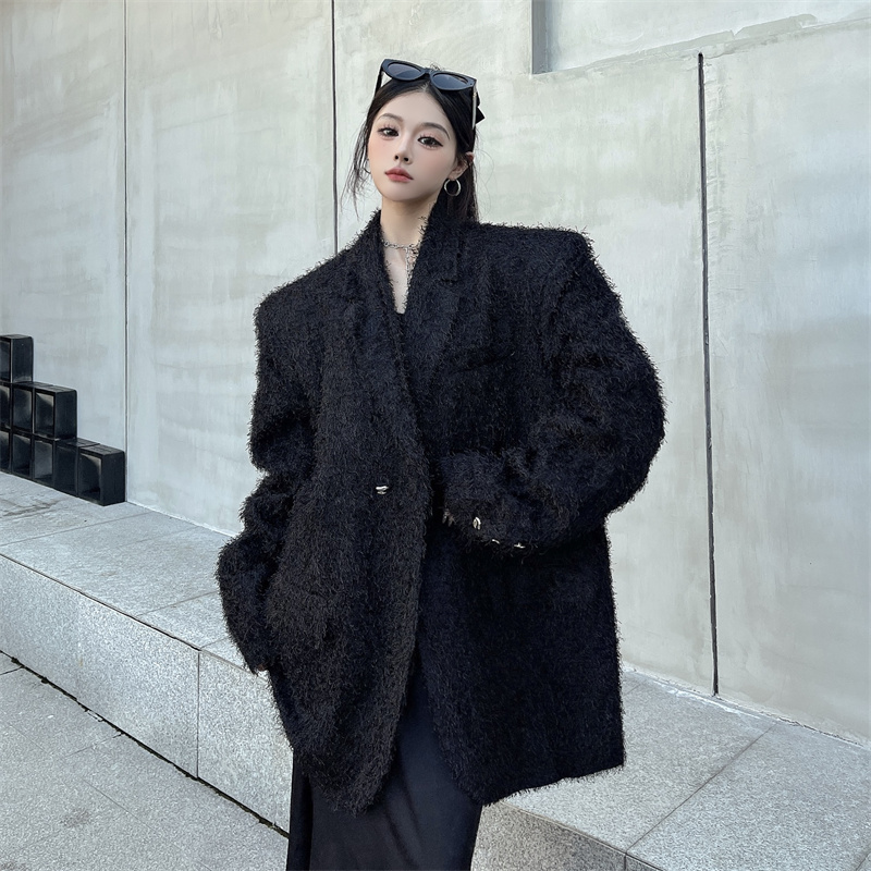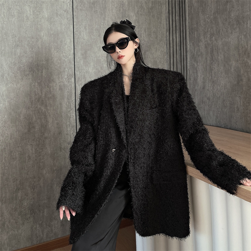 실사 Gypsophila 뿌리다 분말 디자인 센스 검정색 정장 여성 코트 다림질 금박 반짝임 고급 센스 정장 트렌디