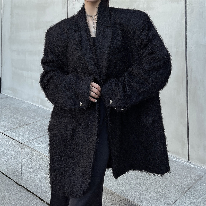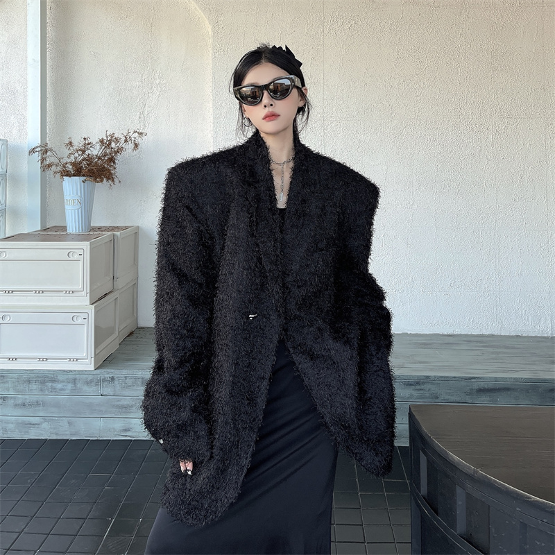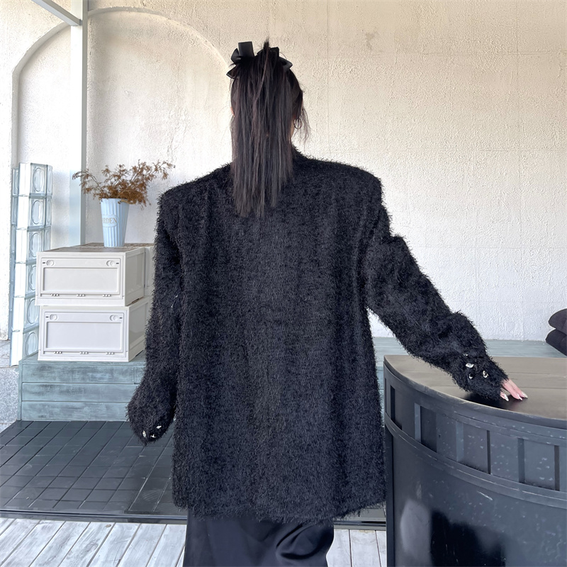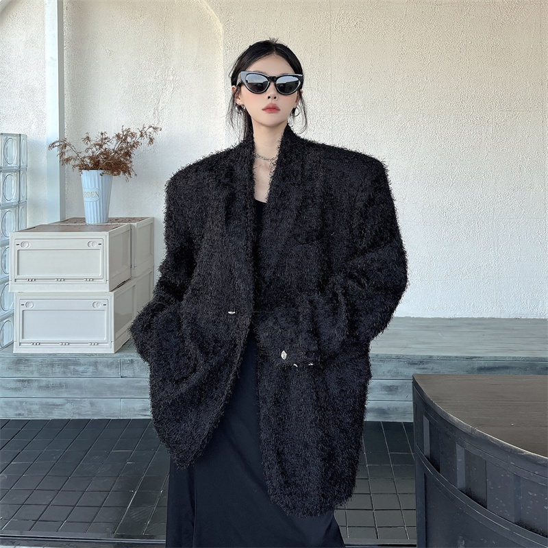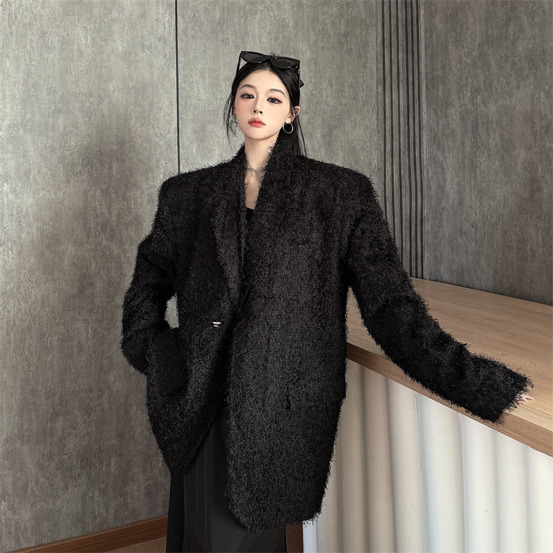 실사 말의 해 제한적 고급 센스 행운 머리 핫픽스 검정색 셰닐 블레이저