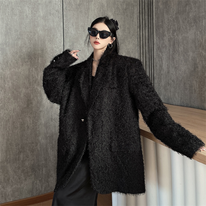 실사 디자인 센스 3 차원 장미 꽃 패치워크 루즈핏 정장 작은 대중 슬림해 보이는 고급 센스 재킷