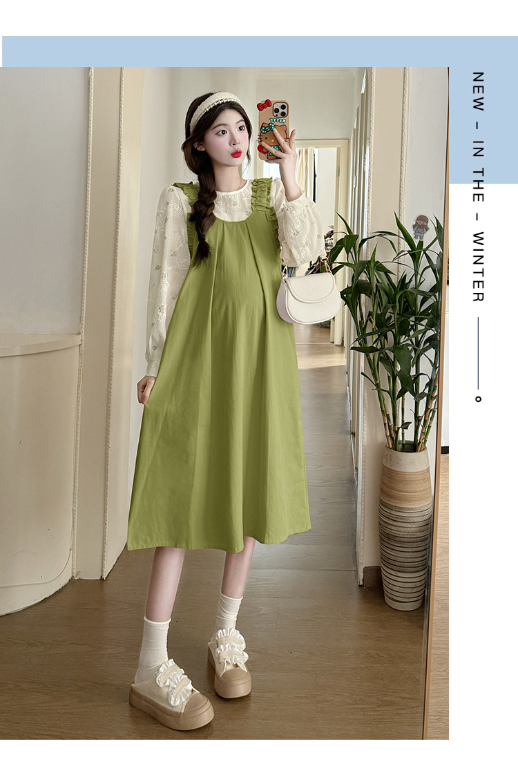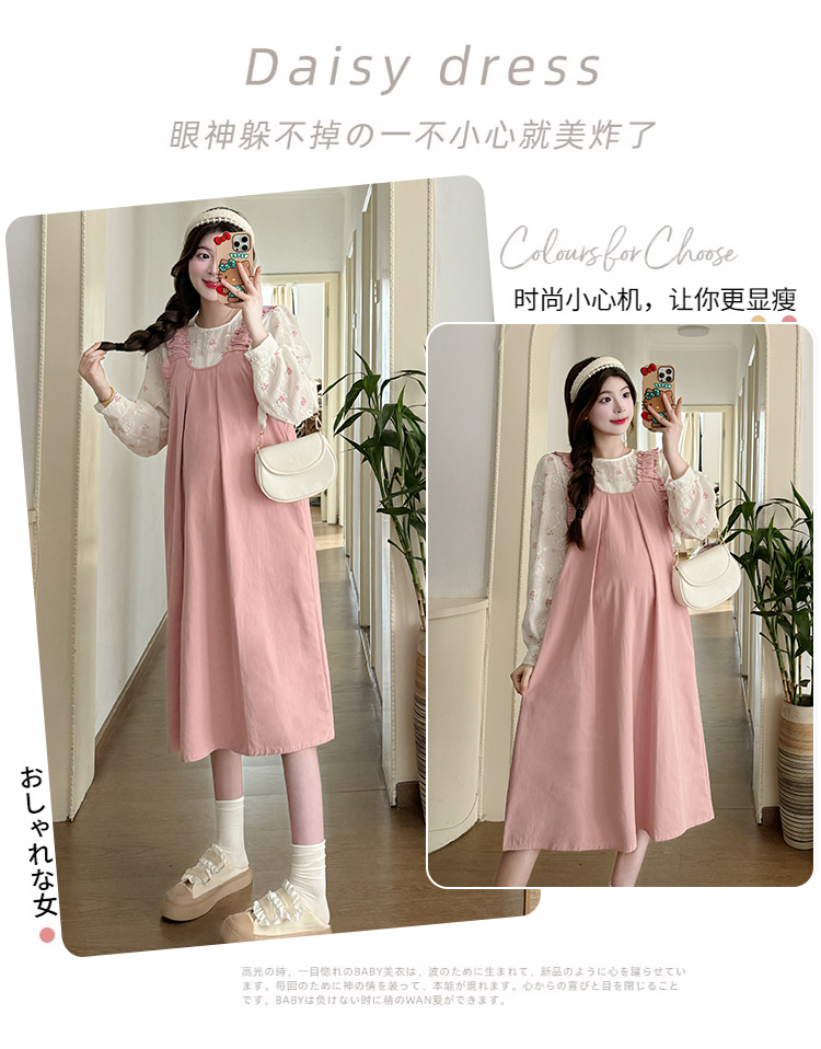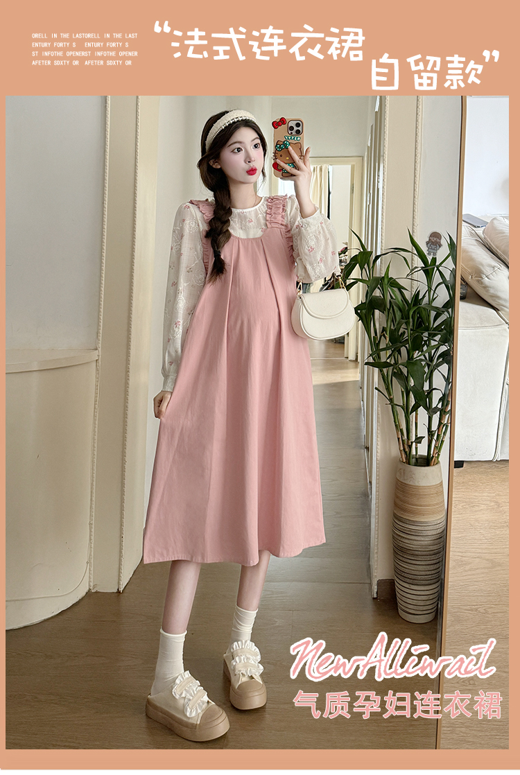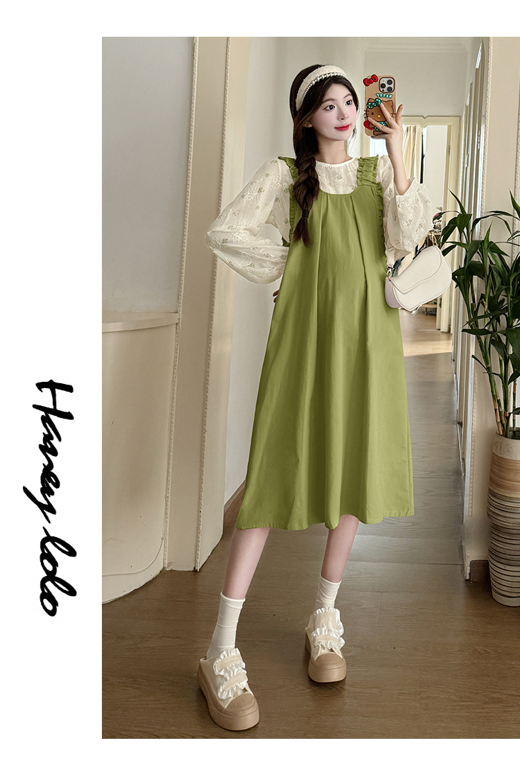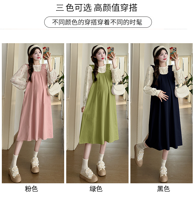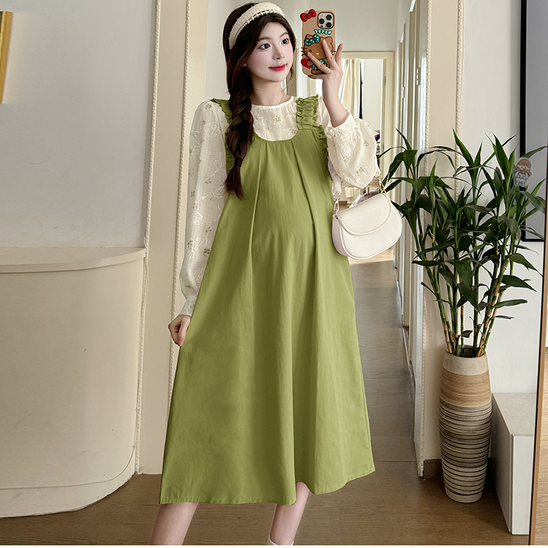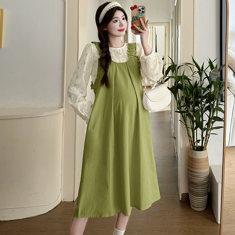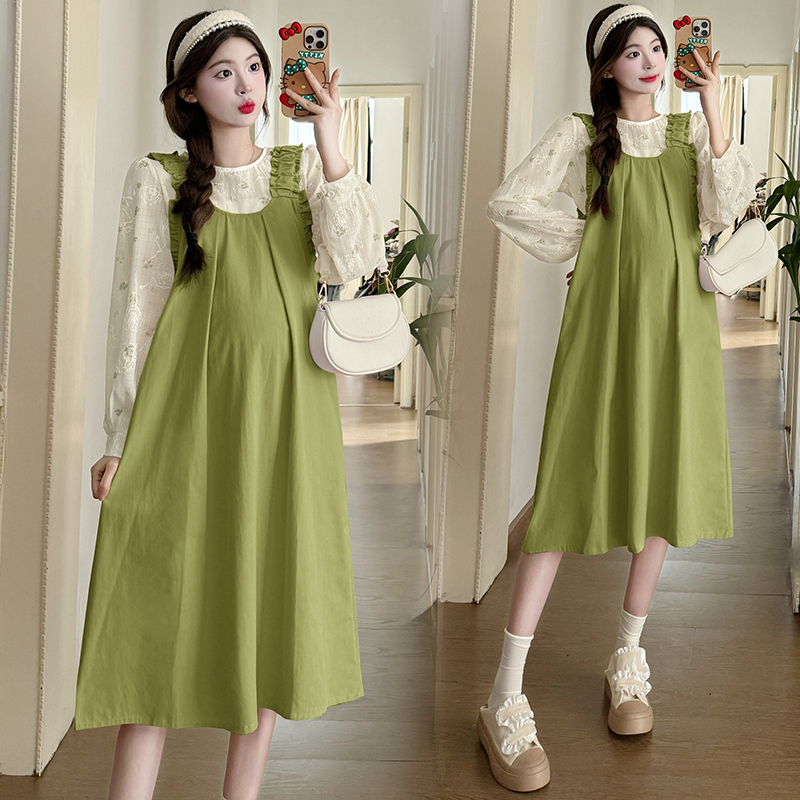 실사 한 부서 스택 착용 조끼 원피스 임산부 가을 새로운 디자인 센스 레이스업 루즈핏 슬림해 보이는 A라인 스커트