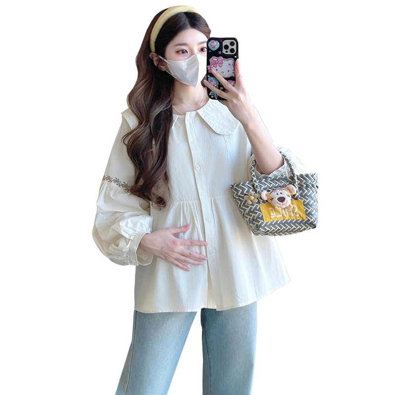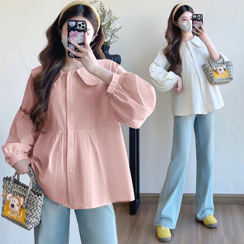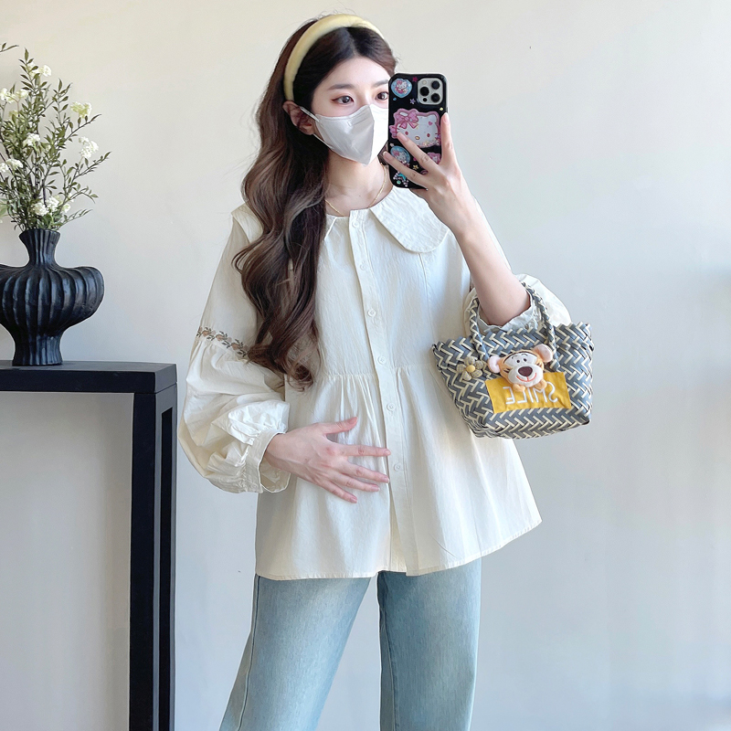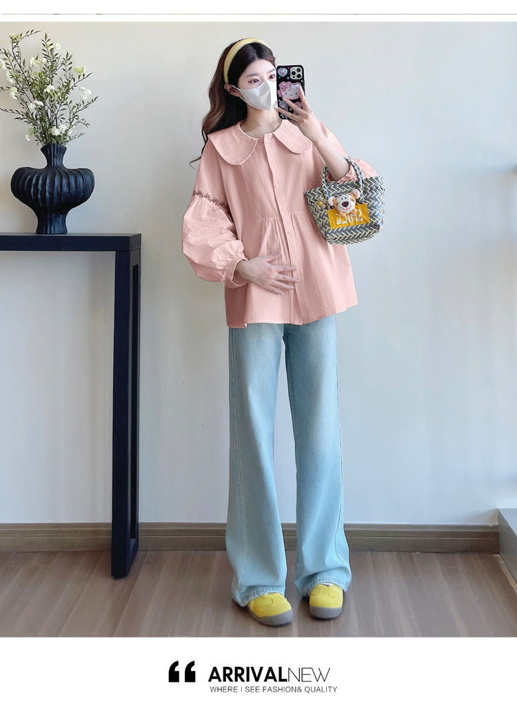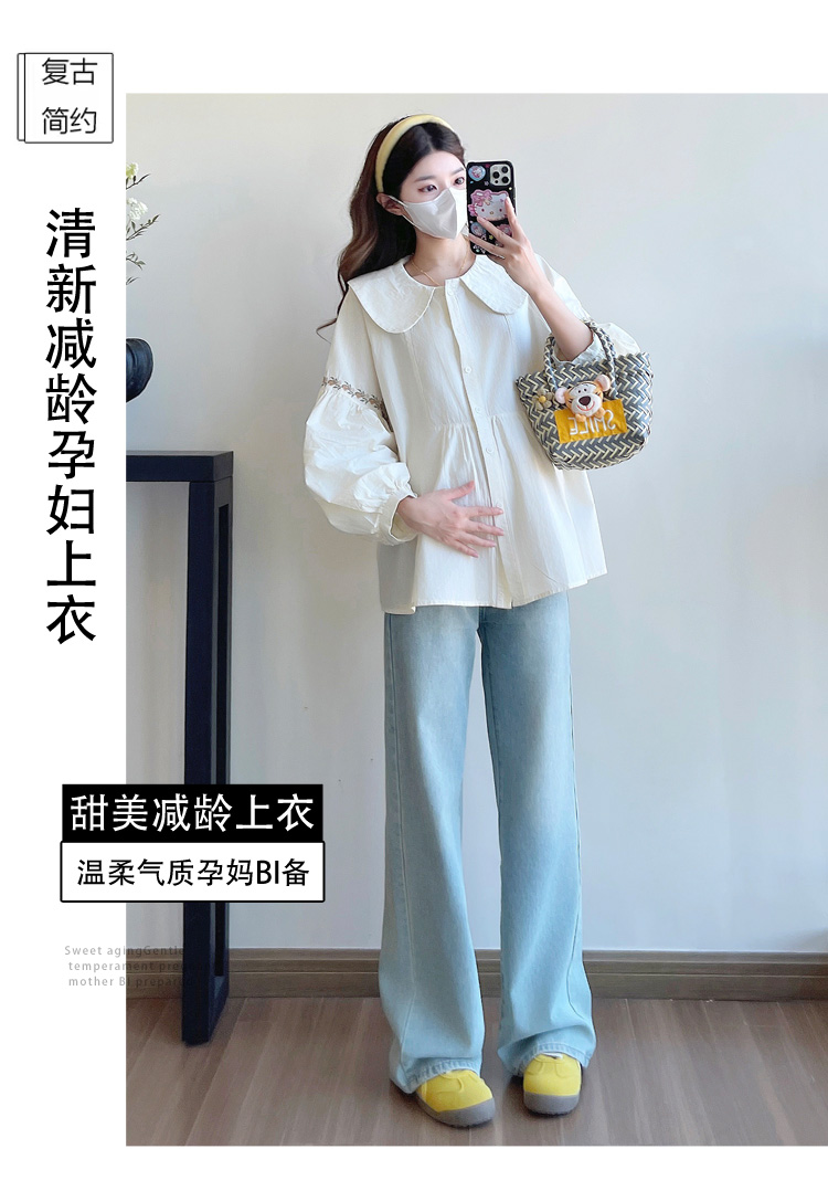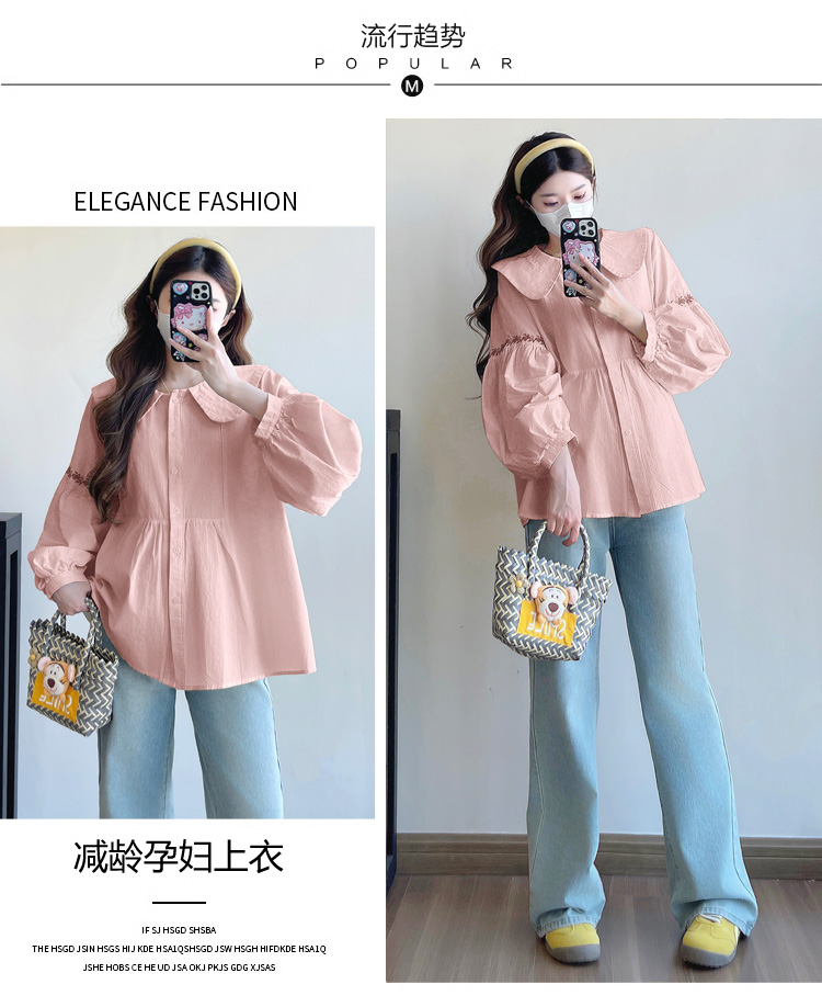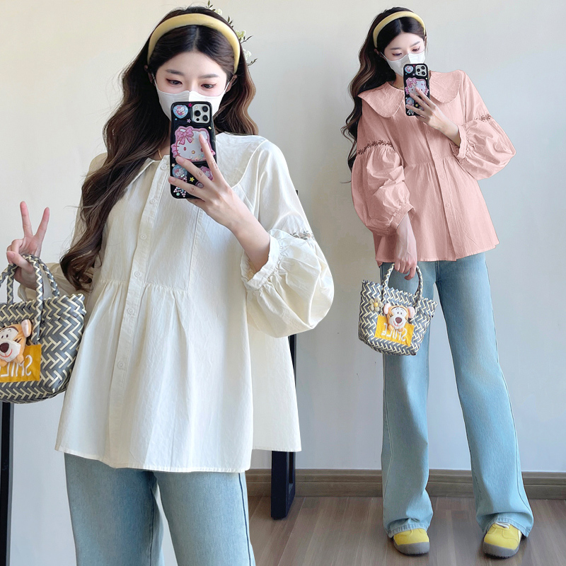 실사 2026 봄 새로운 임산부 한국 스타일 프랑스식 부드러운 베이비 칼라 작은 샤넬 스타일 인형 셔츠 맨위
