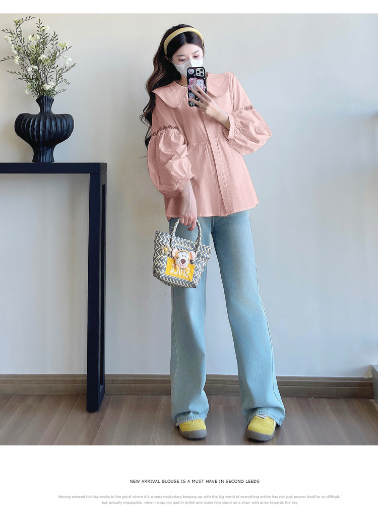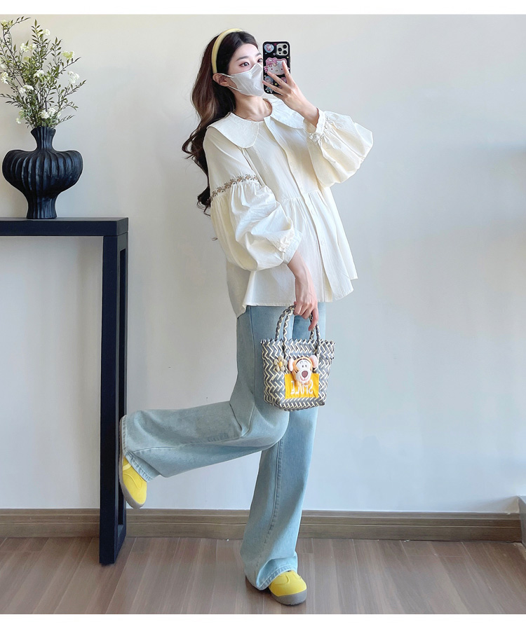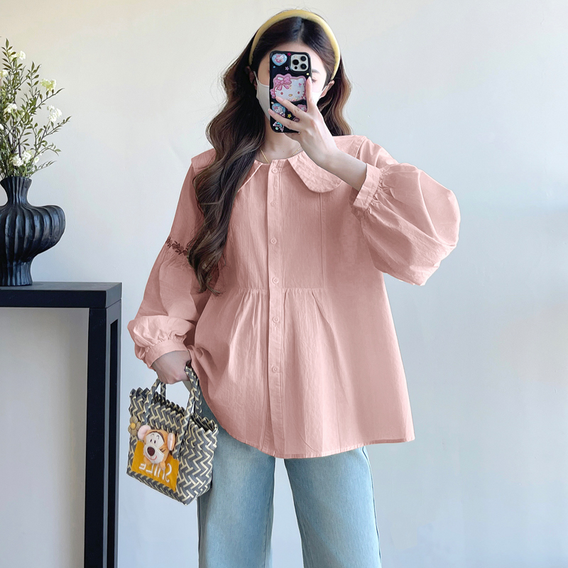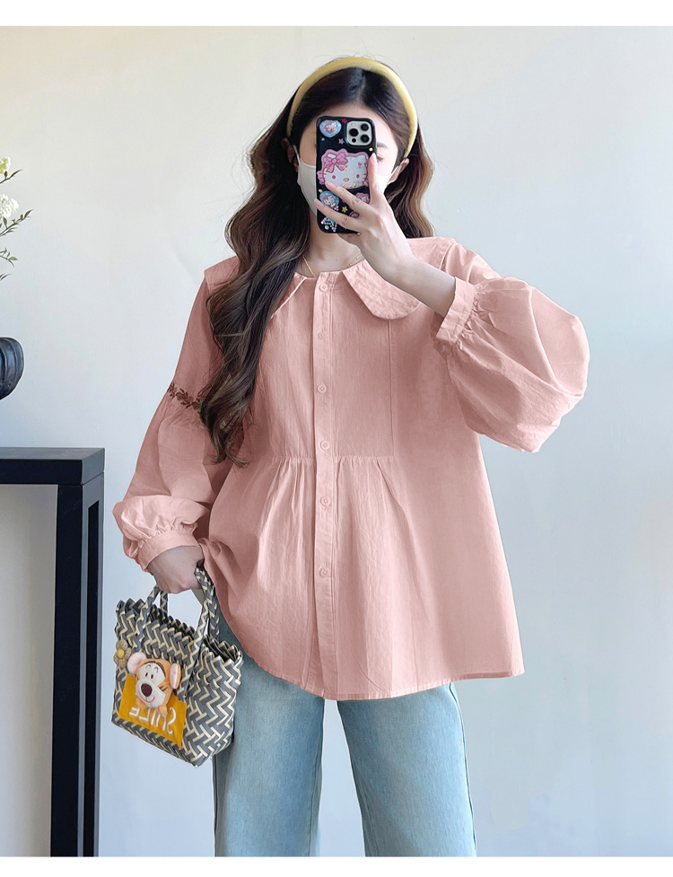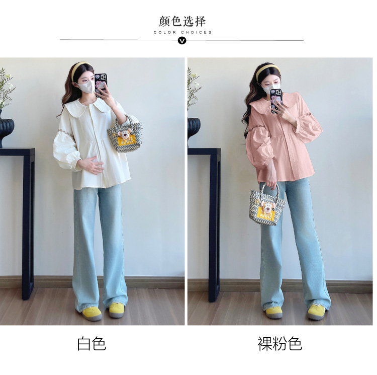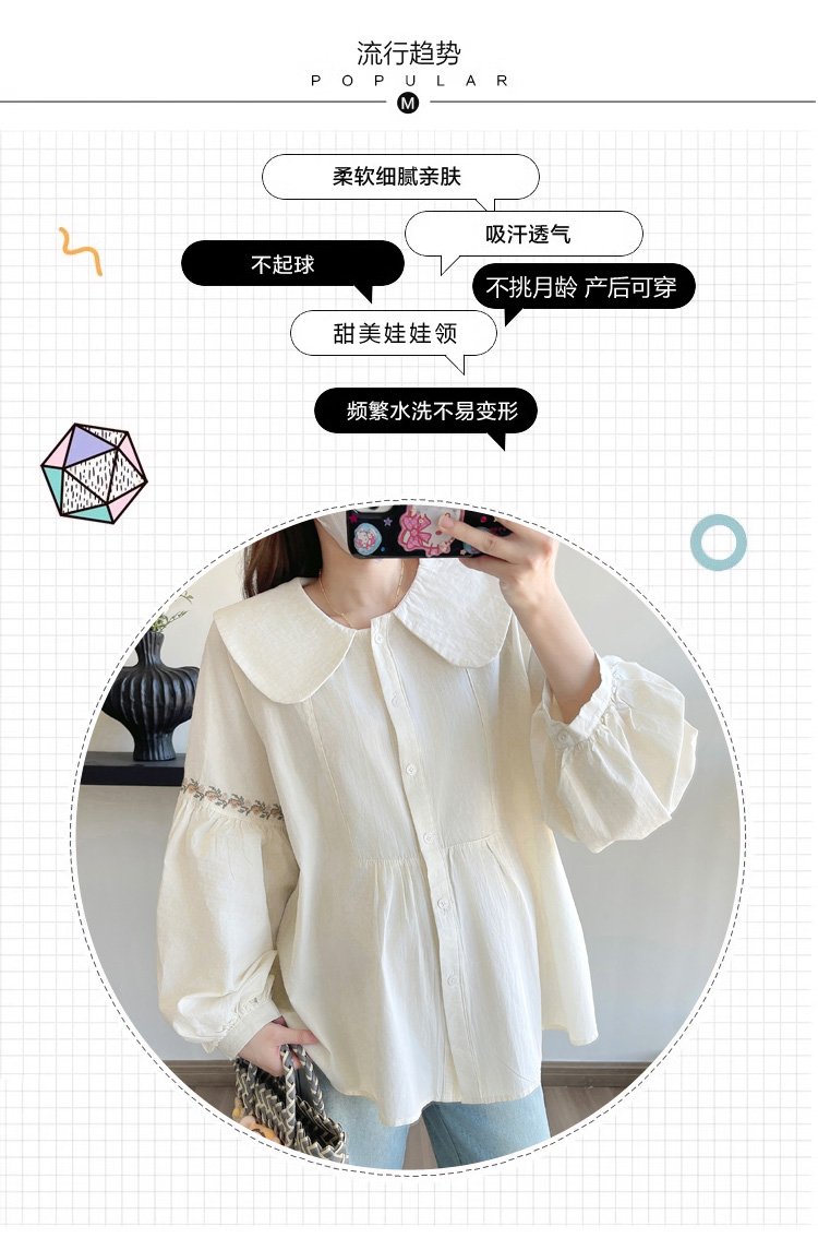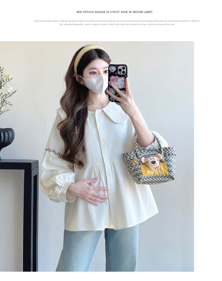 실사 2026 봄 새로운 임산부 한국 스타일 프랑스식 부드러운 베이비 칼라 작은 샤넬 스타일 인형 셔츠 맨위
