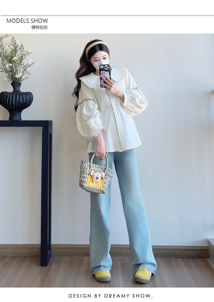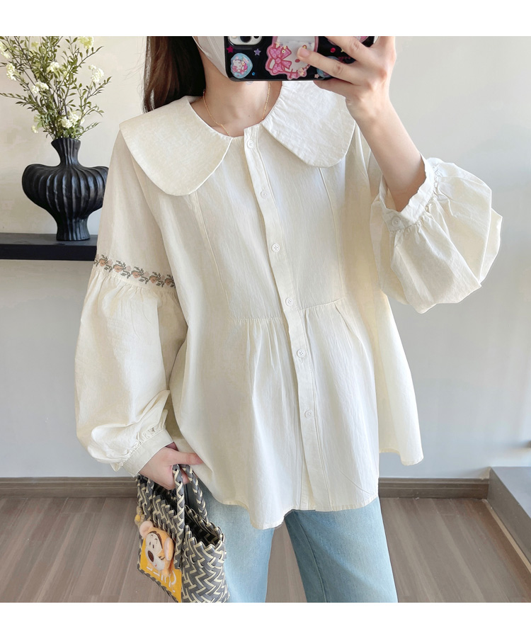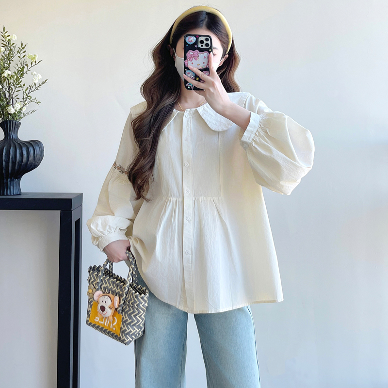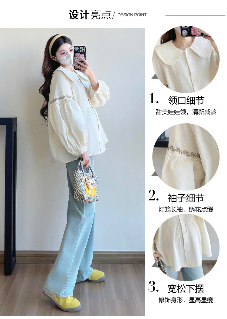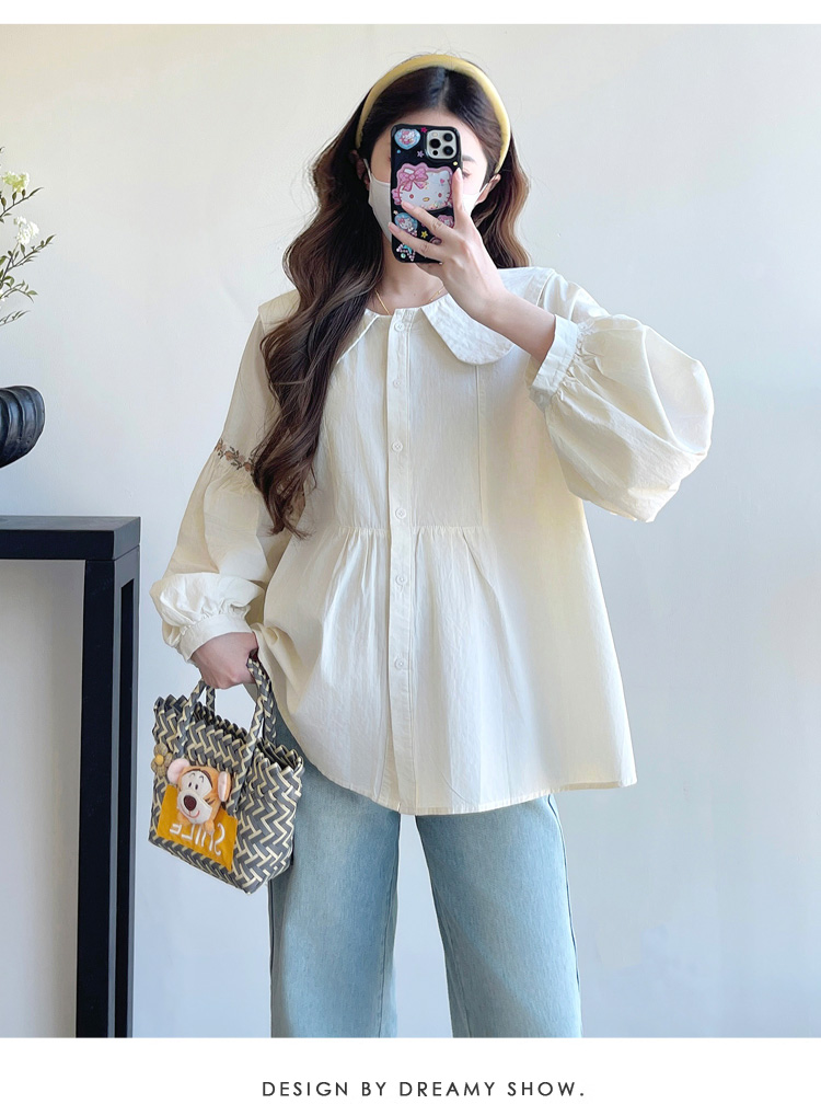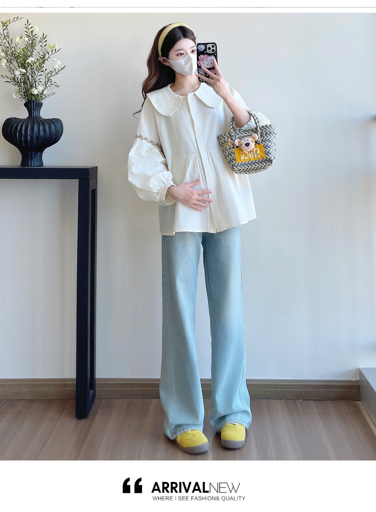 실사 2026 봄 새로운 임산부 한국 스타일 프랑스식 부드러운 베이비 칼라 작은 샤넬 스타일 인형 셔츠 맨위