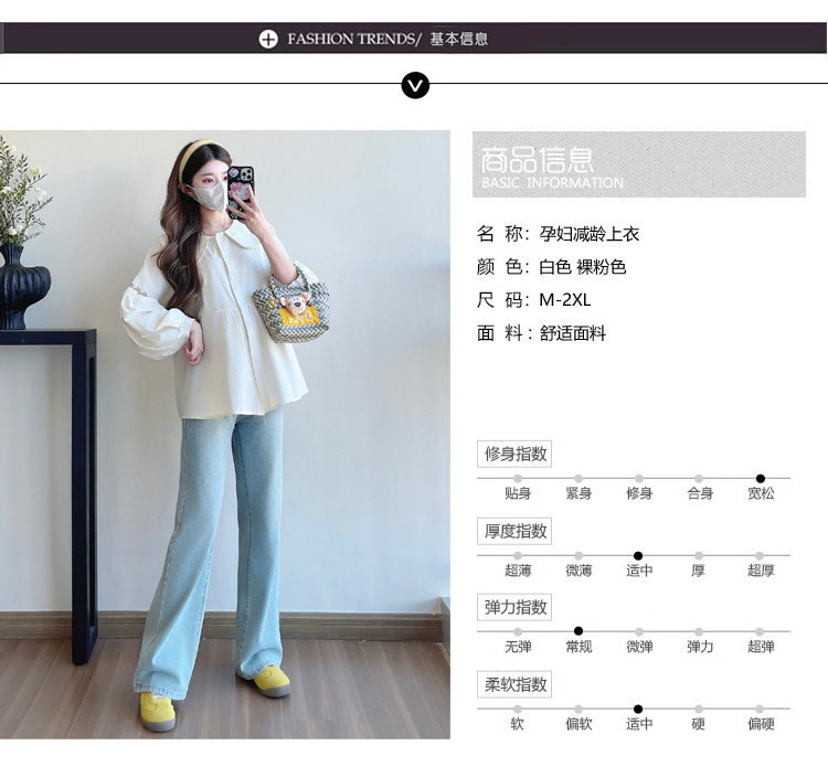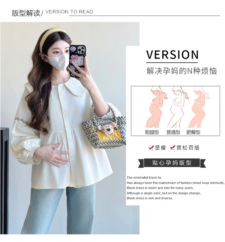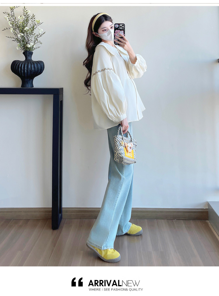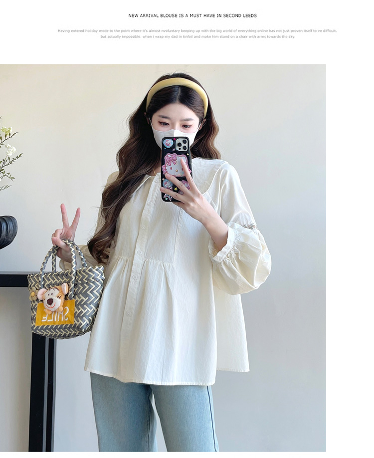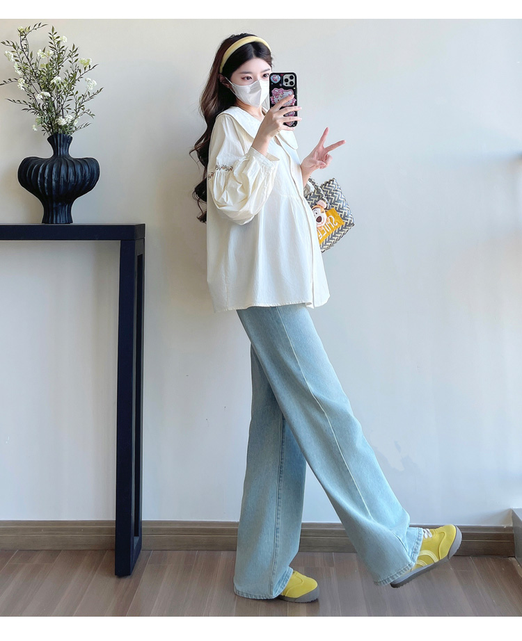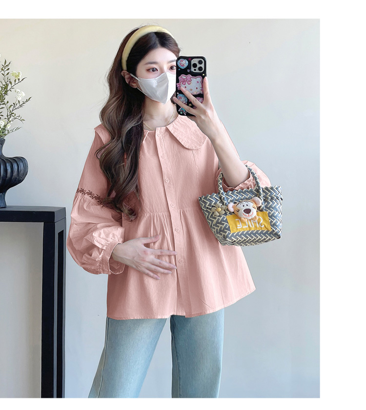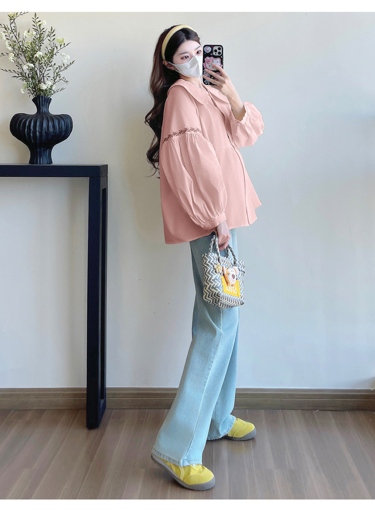 실사 2026 봄 새로운 임산부 한국 스타일 프랑스식 부드러운 스탠드 칼라 인형 셔츠 맨위
