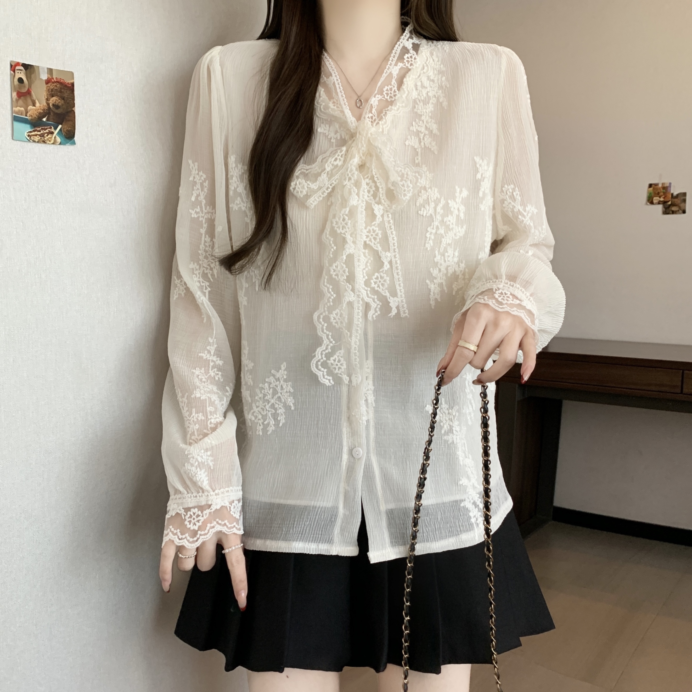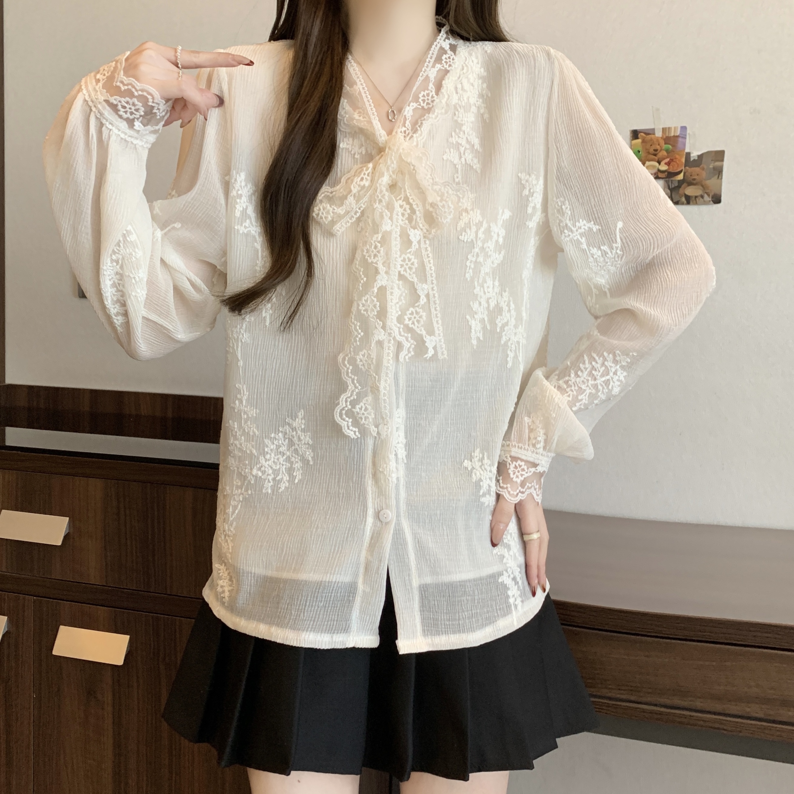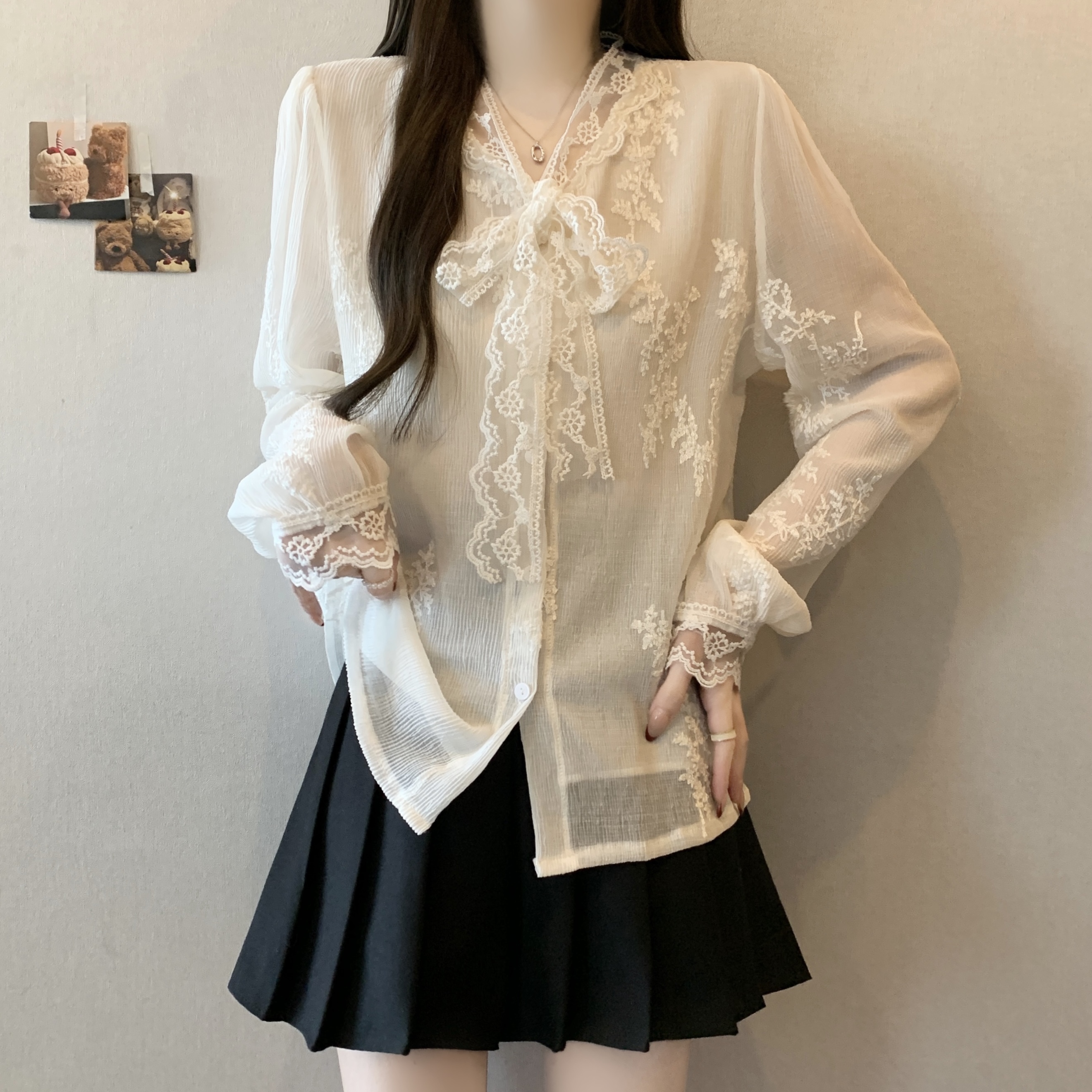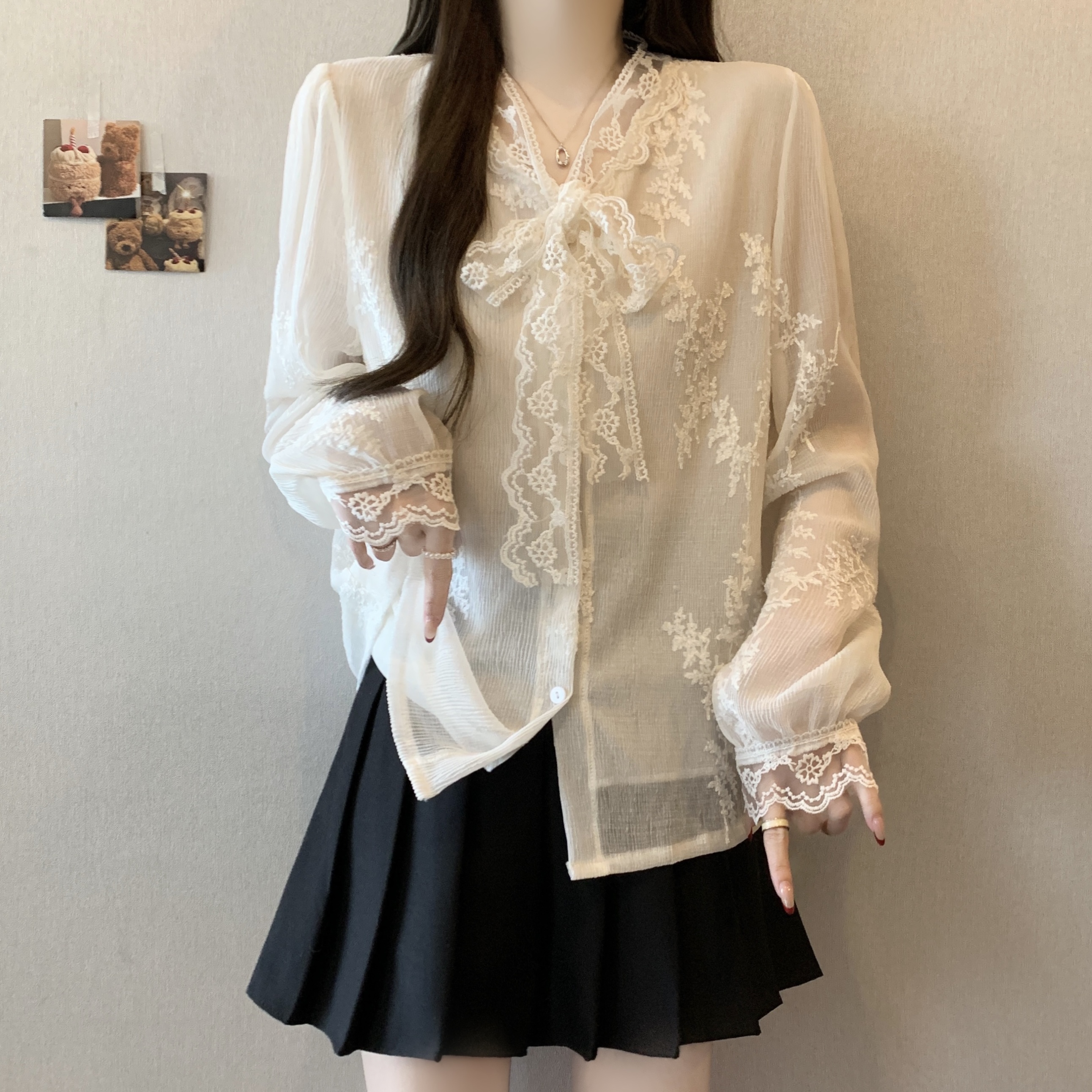 실사 빅 사이즈 프랑스식 프릴 나팔 긴팔 셔츠 V넥 작은 셔츠 여성 2026 이른 봄 새로운 Chic 맨위
