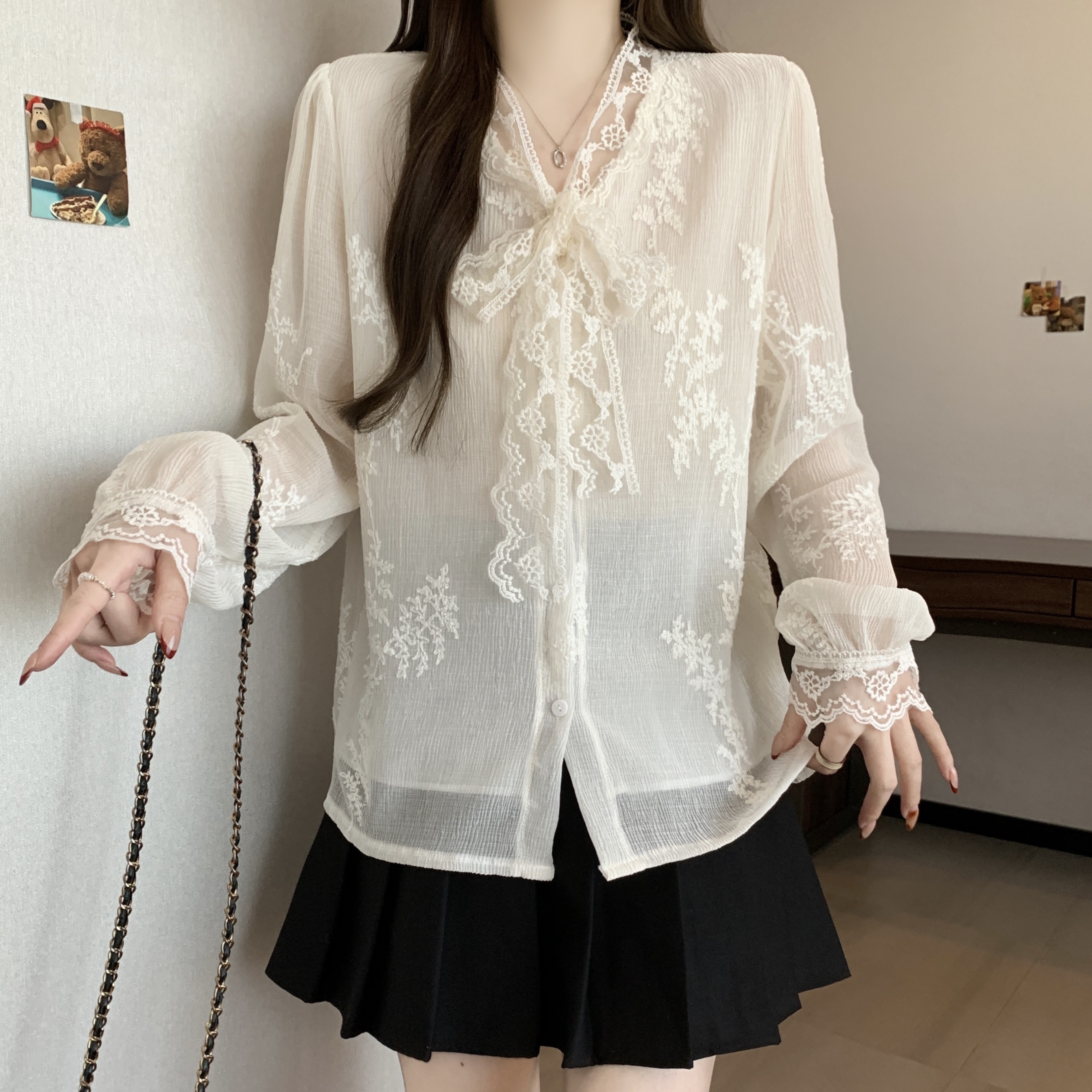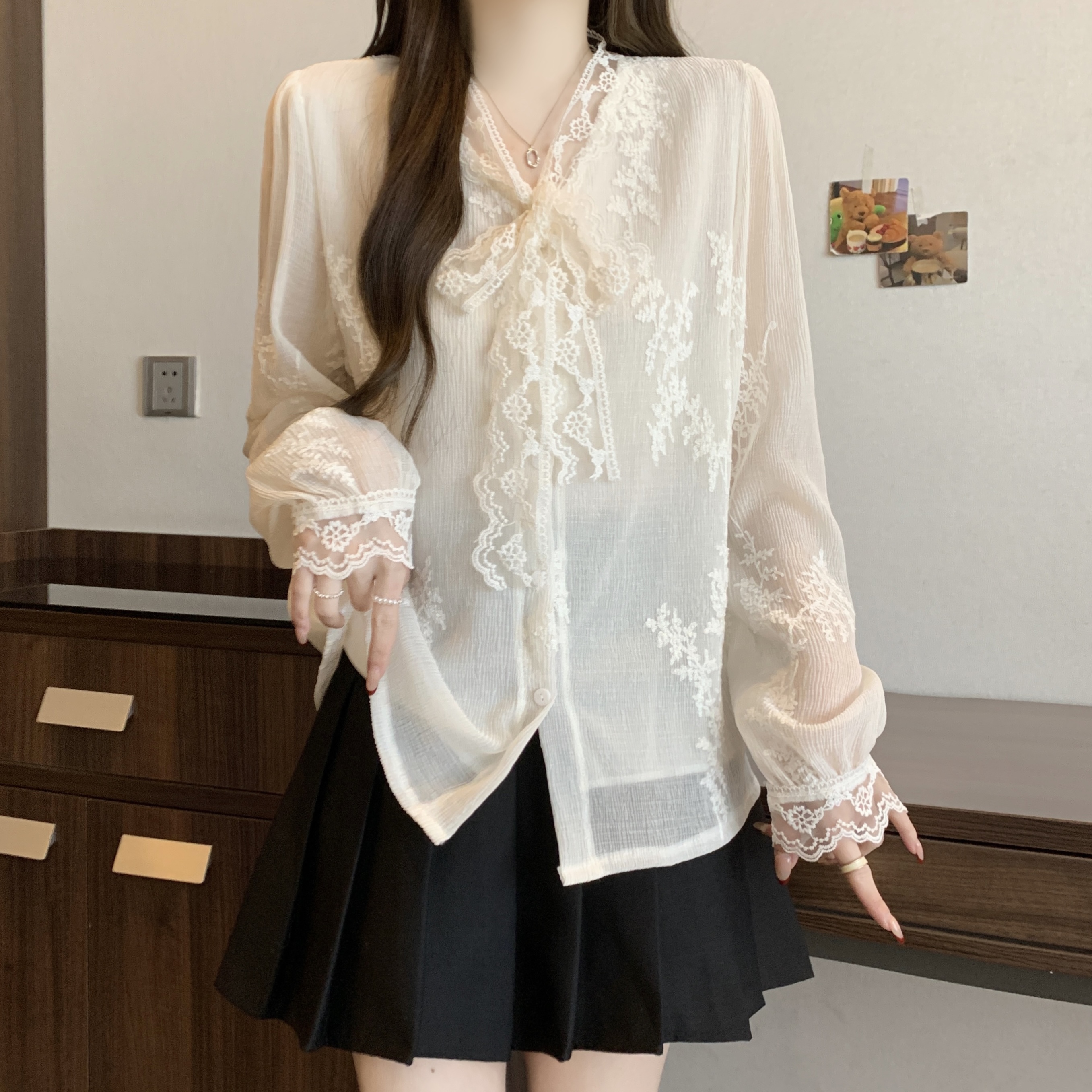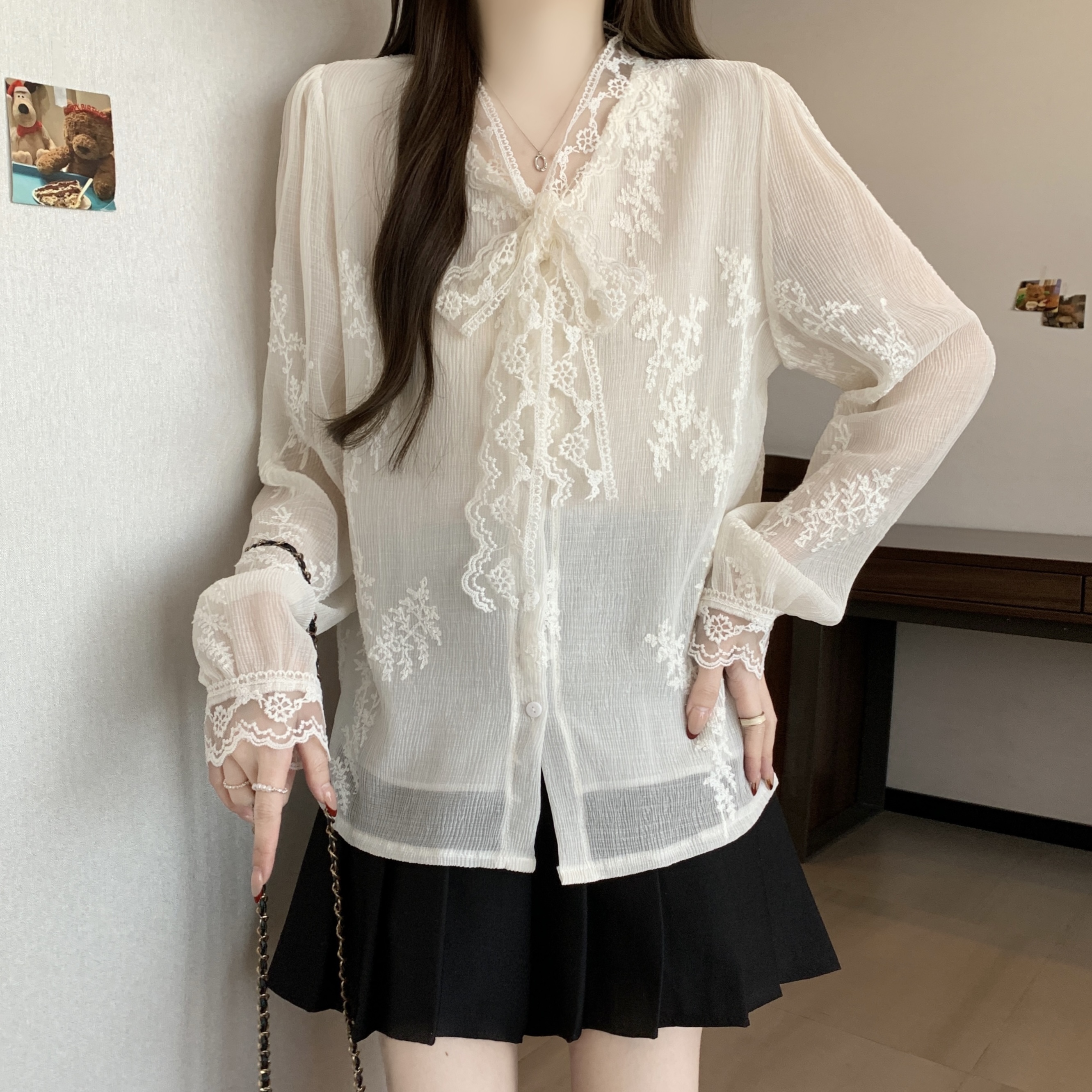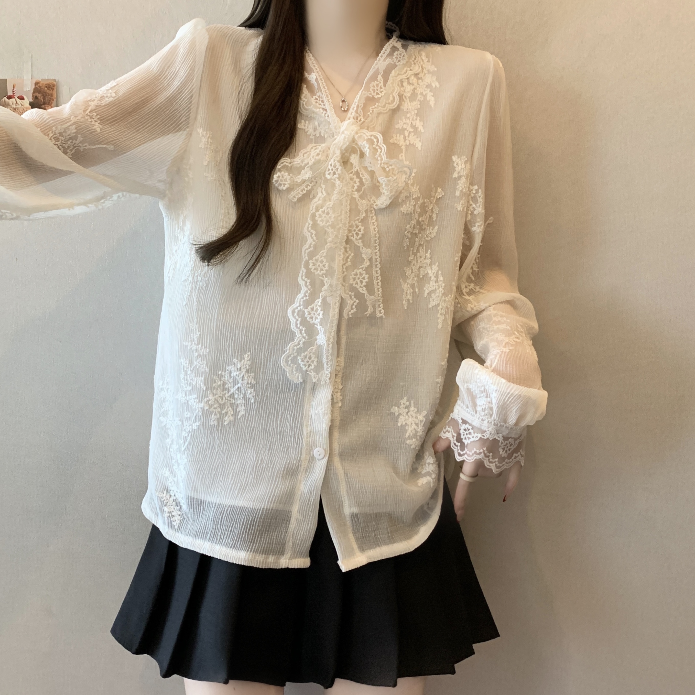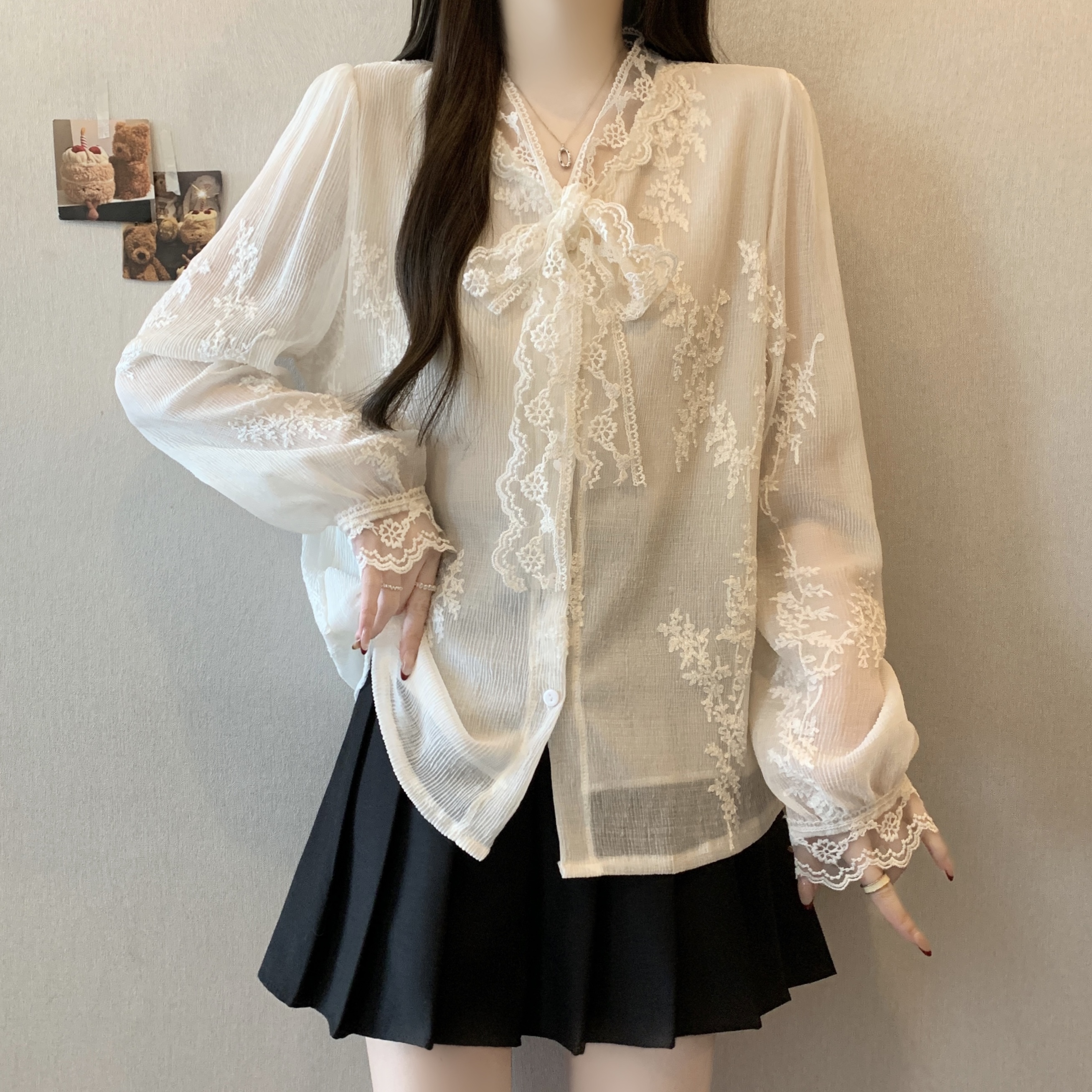 실사 빅 사이즈 프랑스식 프릴 나팔 긴팔 셔츠 V넥 작은 셔츠 여성 2026 이른 봄 새로운 Chic 맨위
