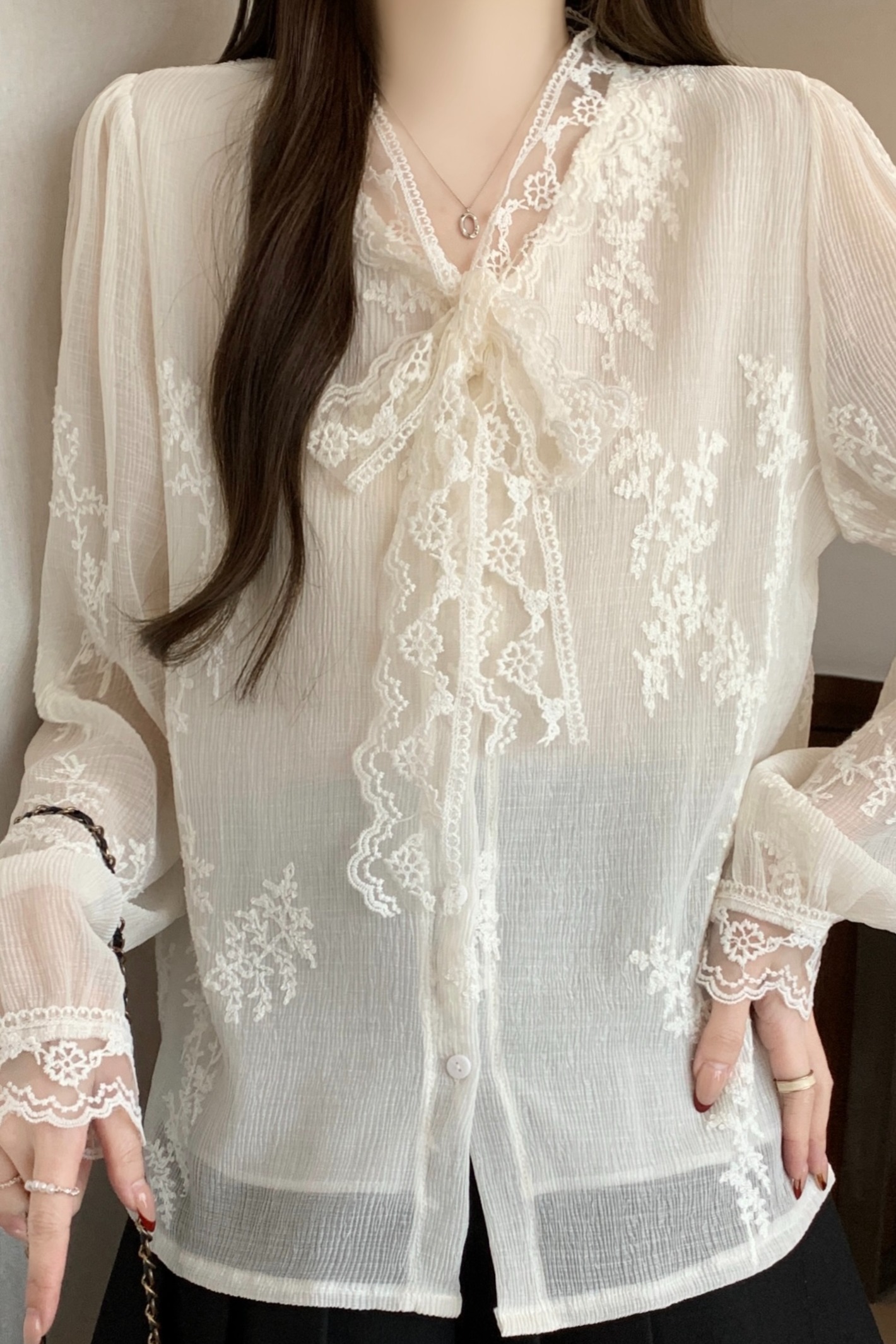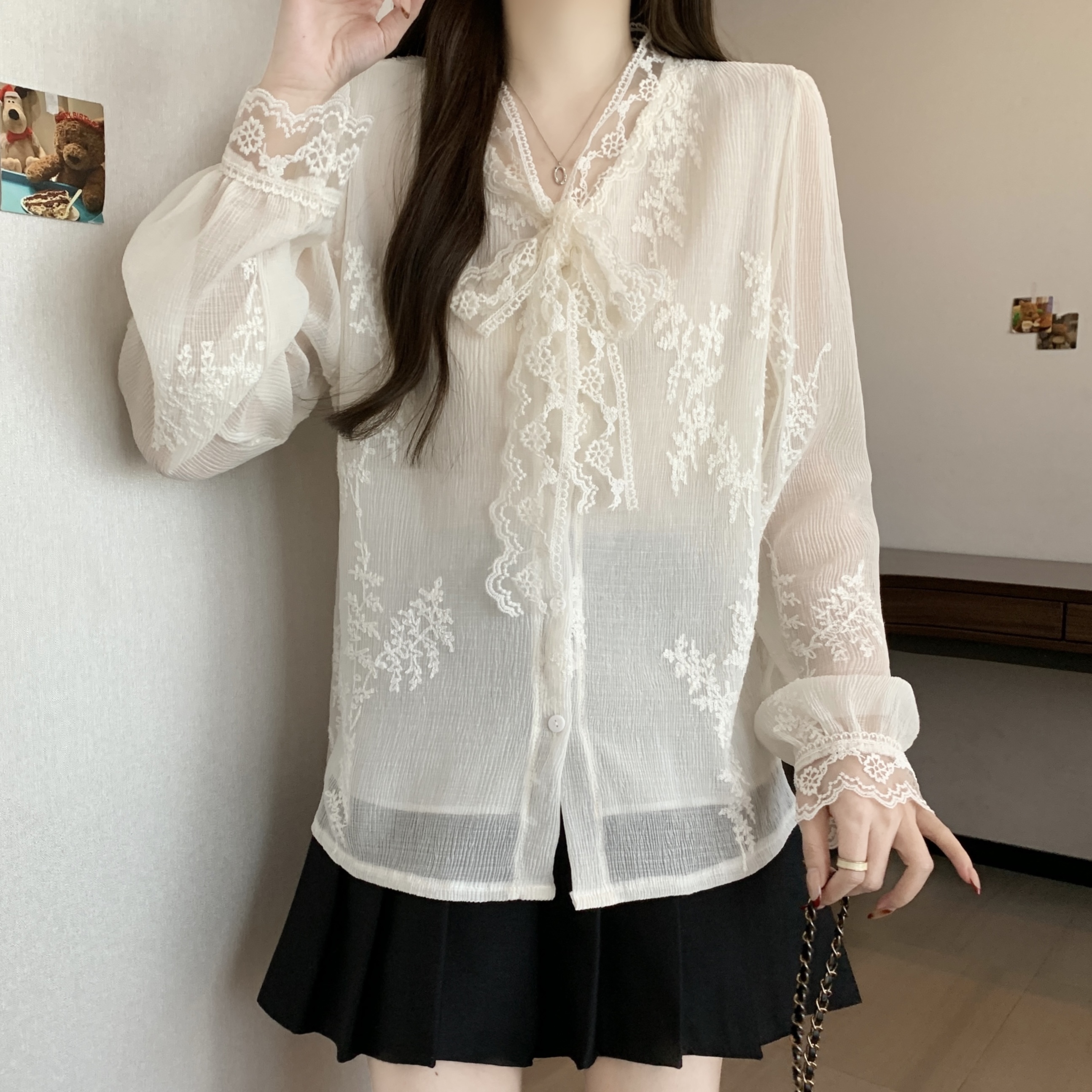 실사 빅 사이즈 2026 봄 가을 새로운 한국 스타일 품격 부드러운 프릴 폴로 칼라 루즈핏 슬림해 보이는 긴팔 셔츠