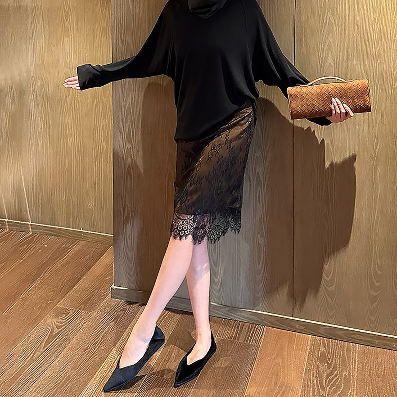 실사 겨울 켜기 새로운 두꺼운 부드러운 작은 꽃무늬 프릴 한 마디 디스플레이 다리 길이 2025 겨울 분위기 센스 반신 스커트