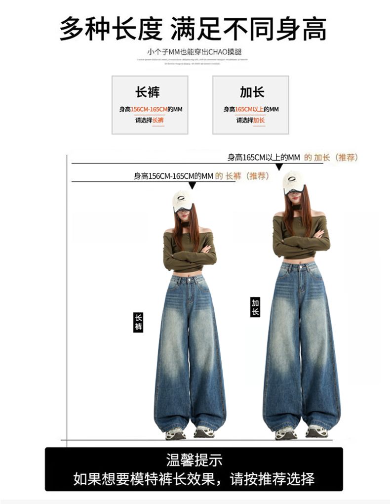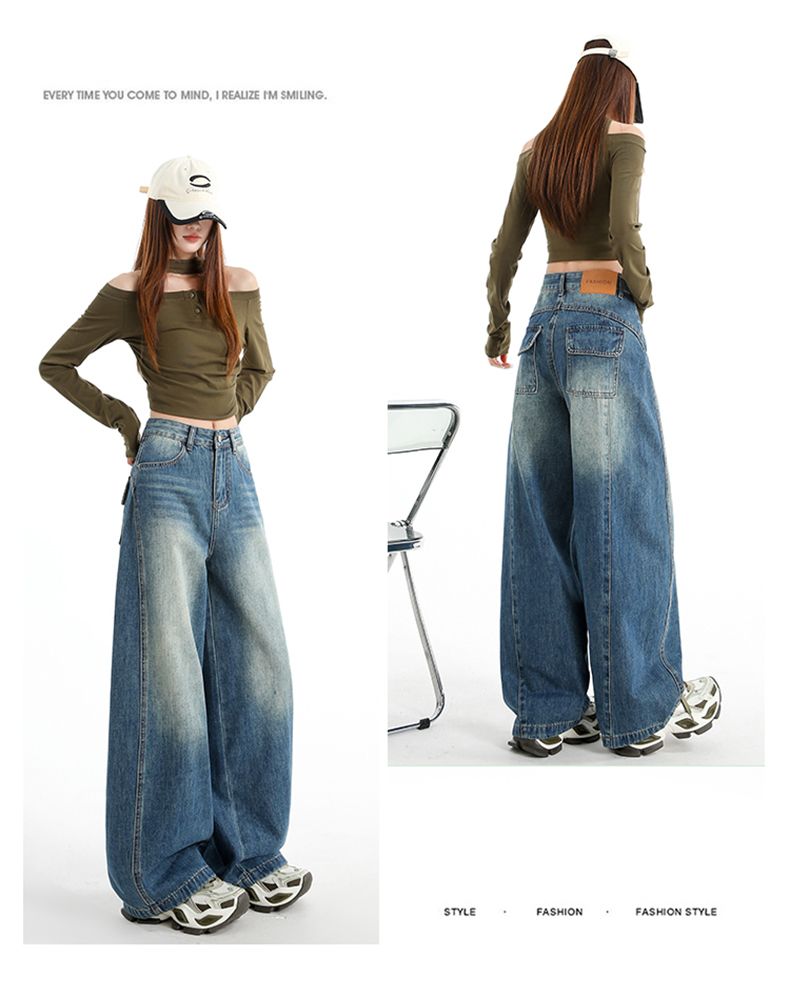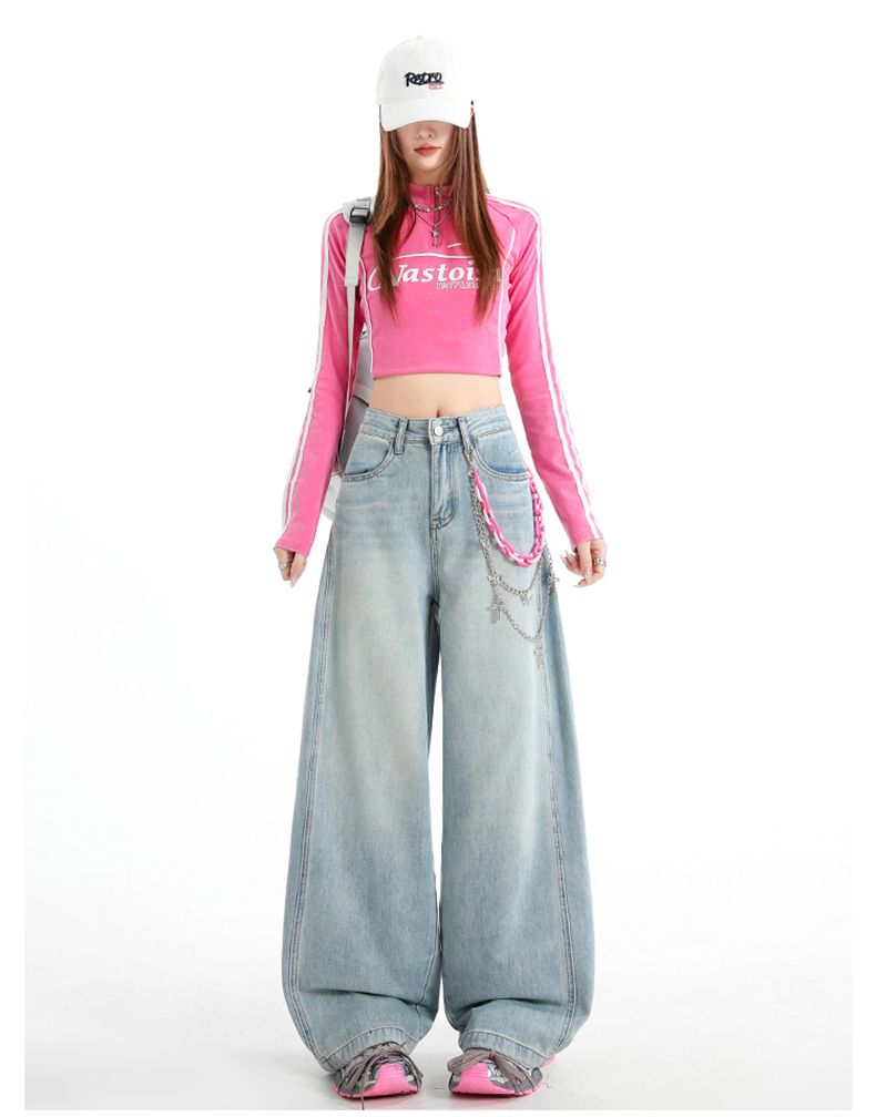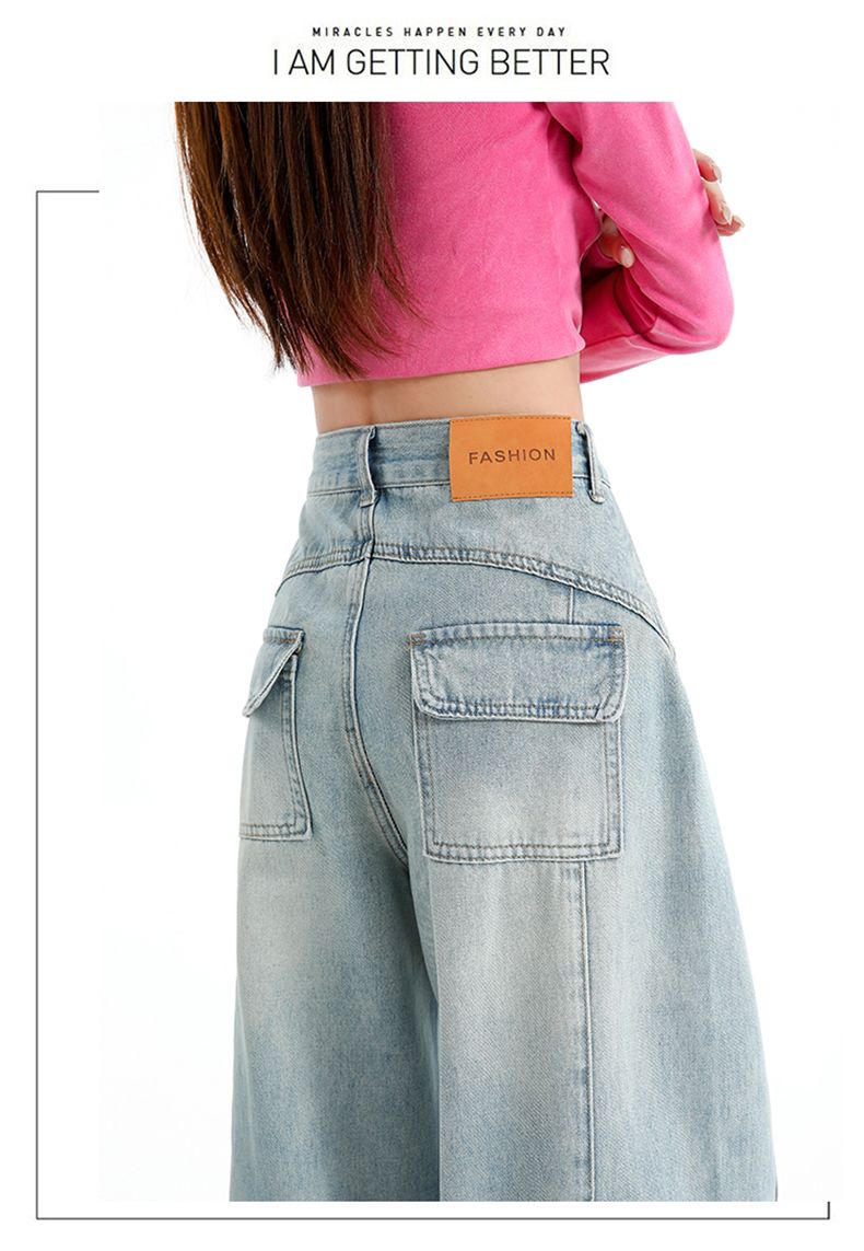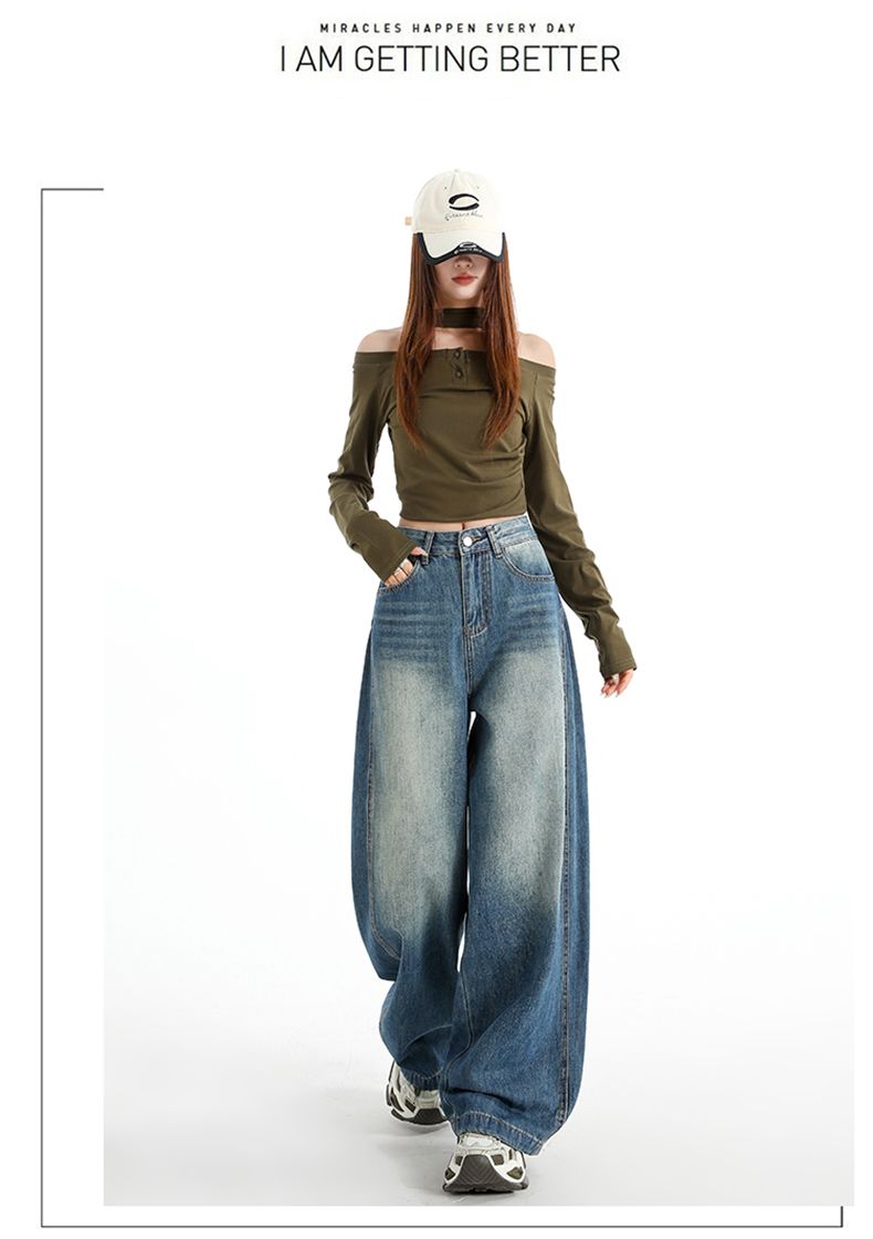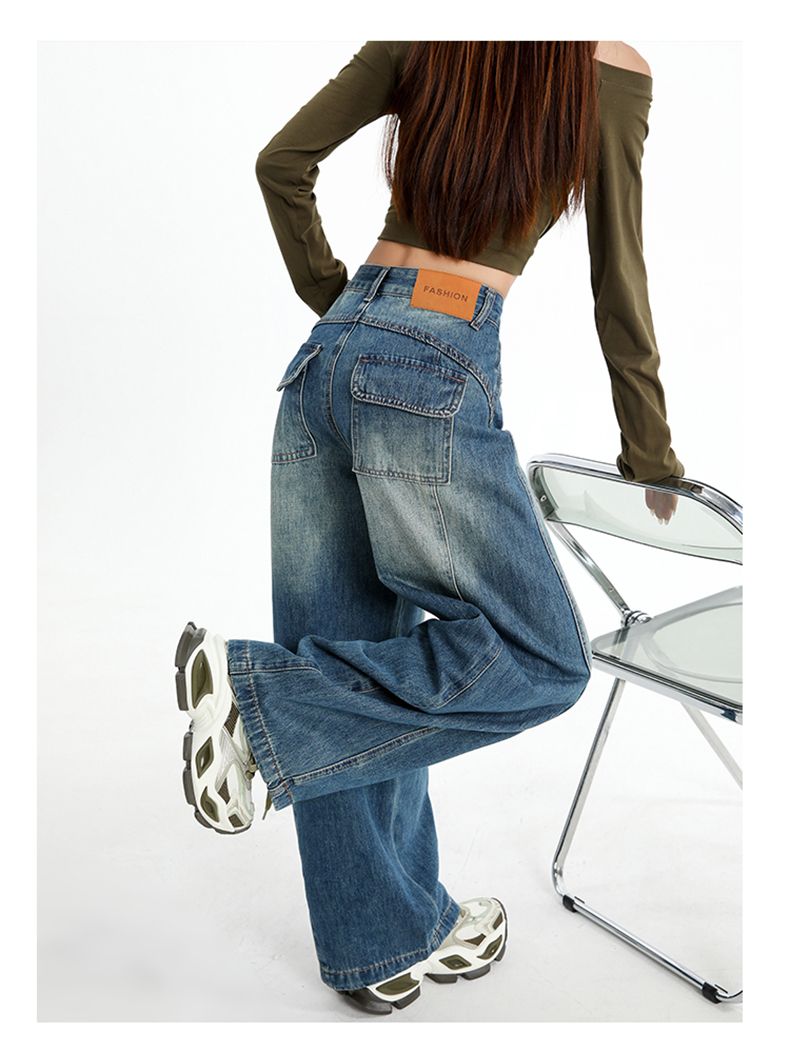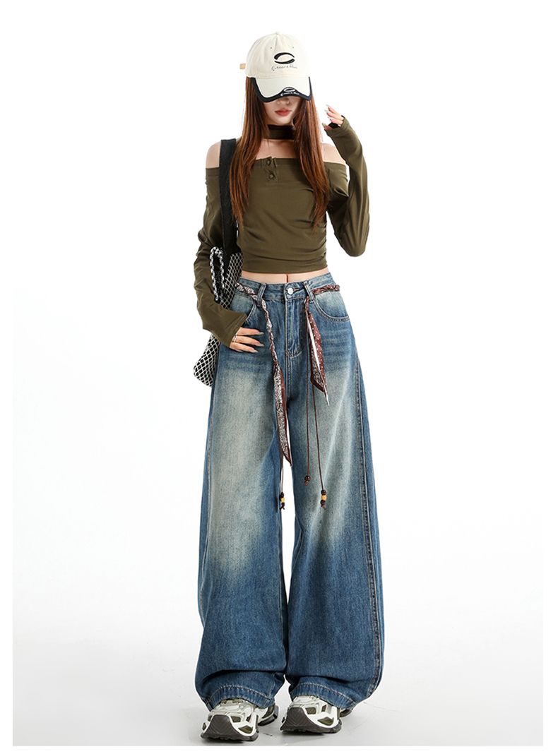실사 Gypsophila 플래시 훈련 봄 새로운 하이웨이스트 아메리칸 좁은 에디션 스트레이트 넓은 다리 청바지 여성 루즈핏 바닥 청소 바지