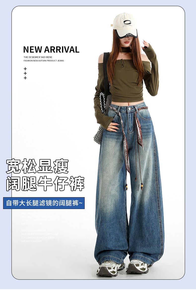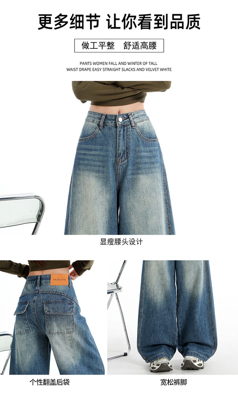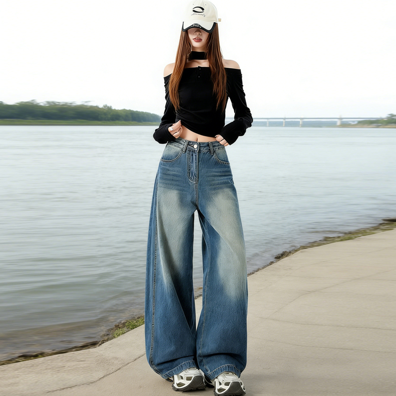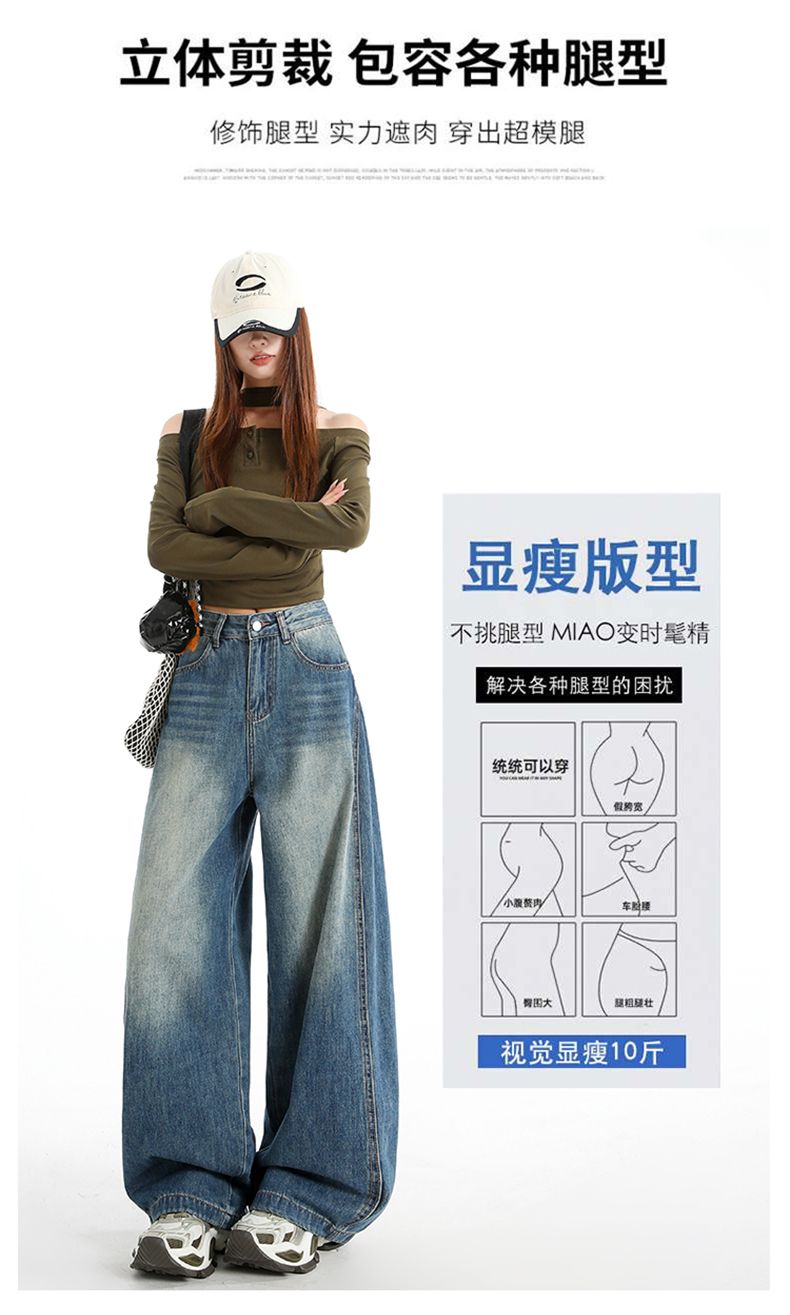 실사 2026 봄 뜨거운 판매 새로운 아메리칸 레트로 새로운 와이드 레그 팬츠 청바지 하이웨이스트 슬림해 보이는 루즈핏 바닥 청소 바지