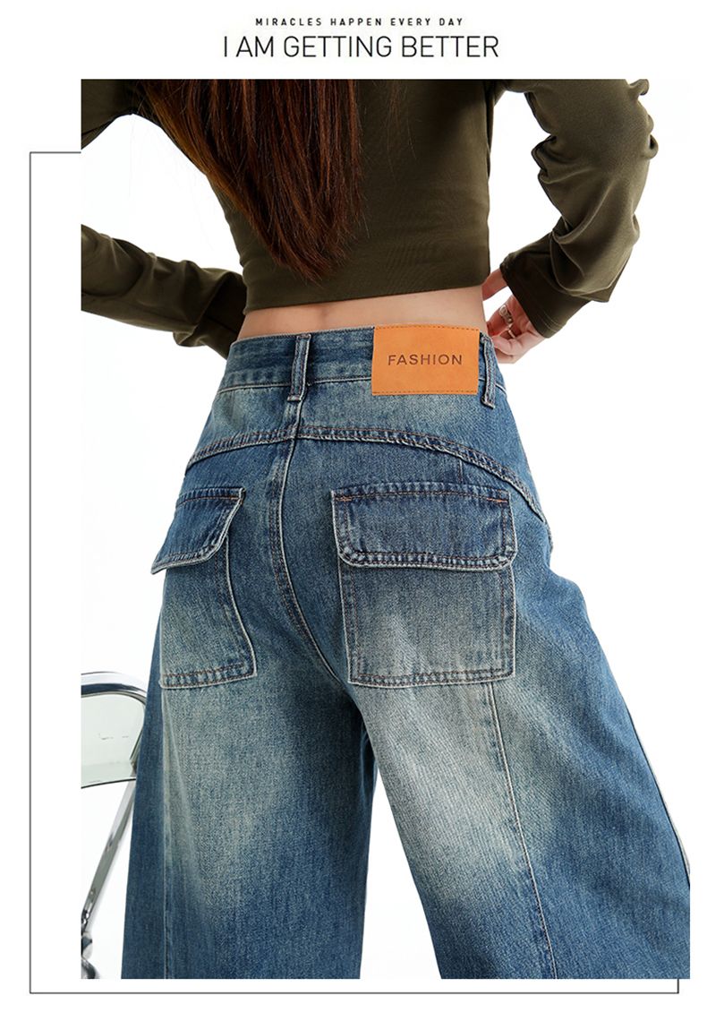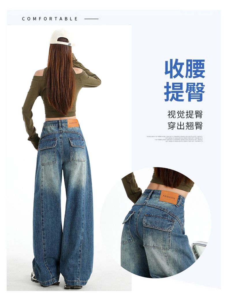 실사 2026 봄 디자이너 수정 디자인 다용도 넓은 다리 워싱 루즈핏 아메리칸 레트로 청바지 스트레이트 팬츠