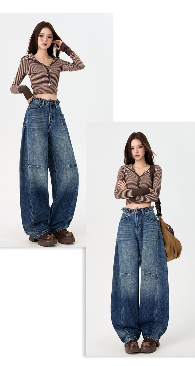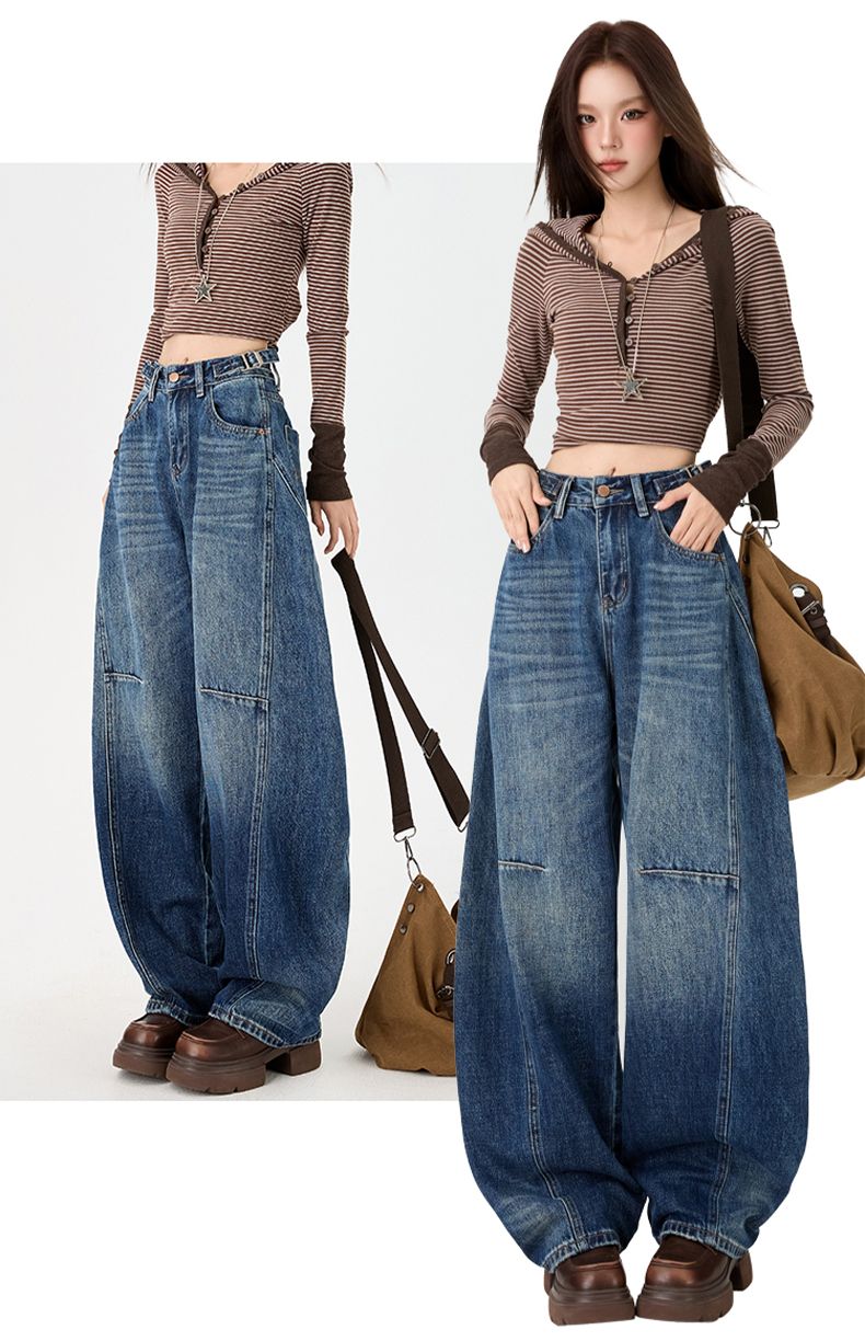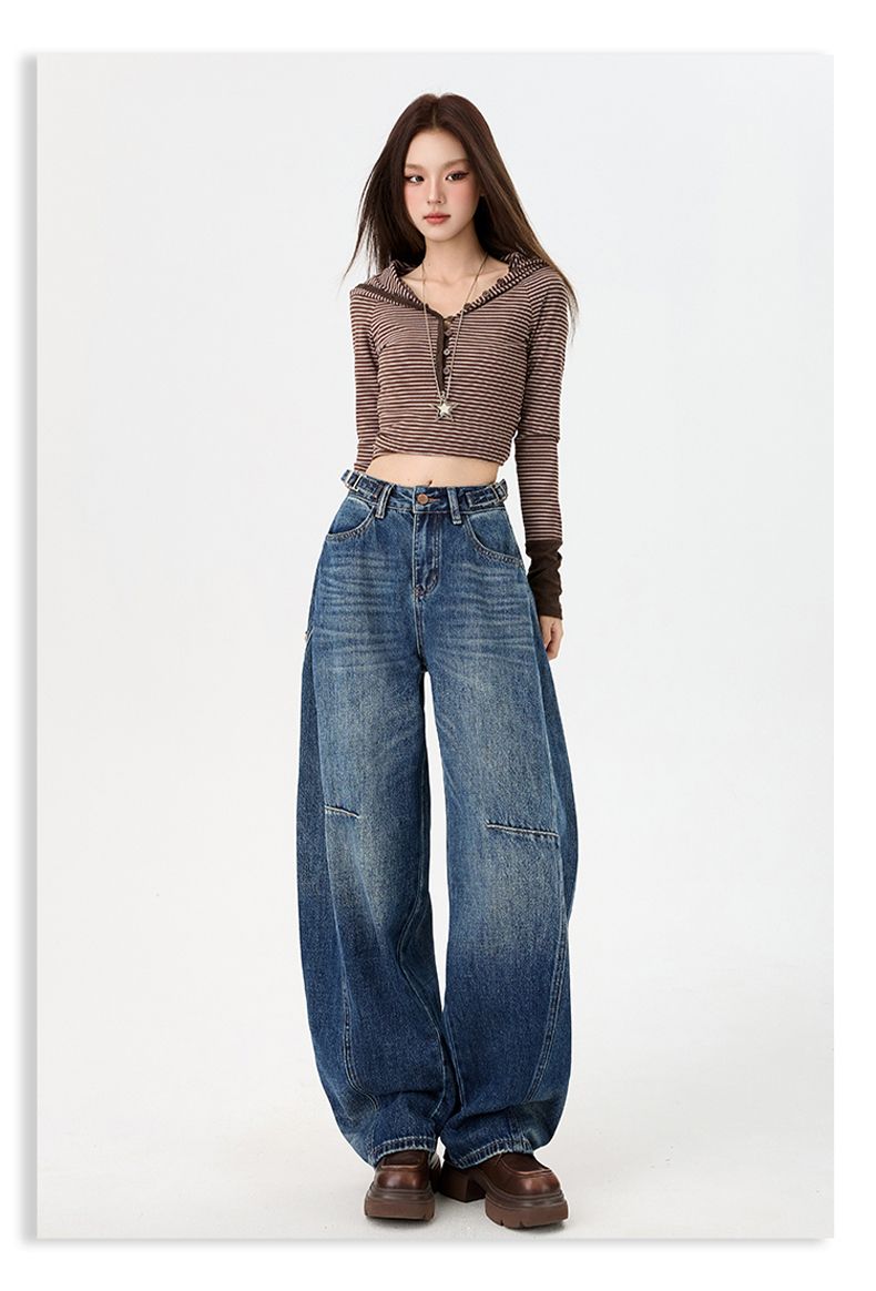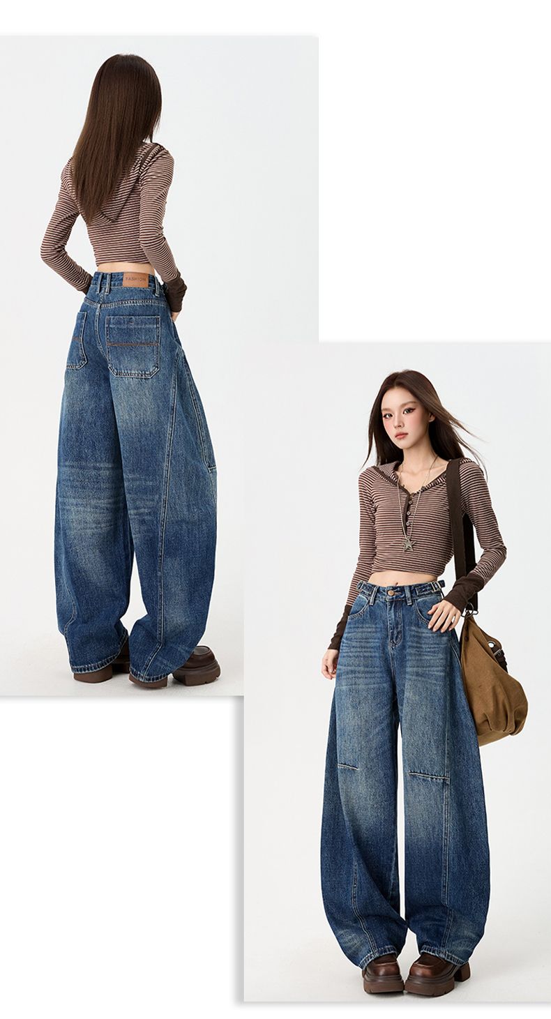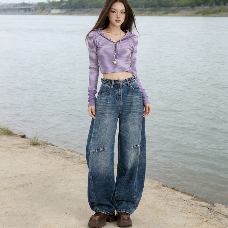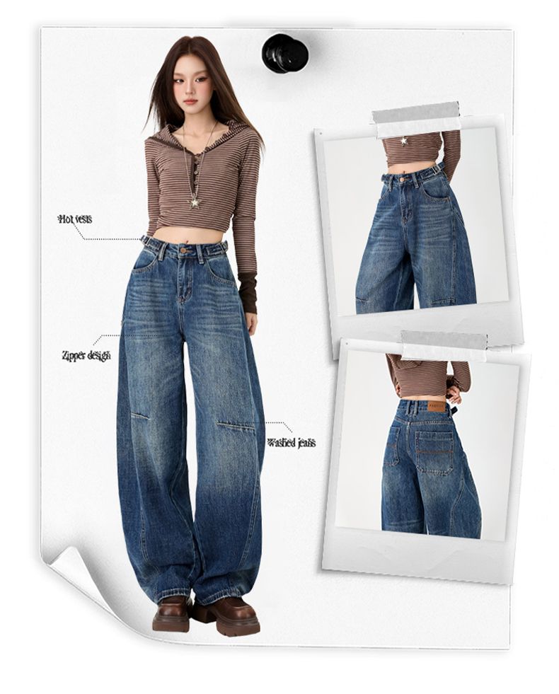 실사 Gypsophila 플래시 훈련 봄 새로운 하이웨이스트 아메리칸 좁은 에디션 스트레이트 넓은 다리 청바지 여성 루즈핏 바닥 청소 바지