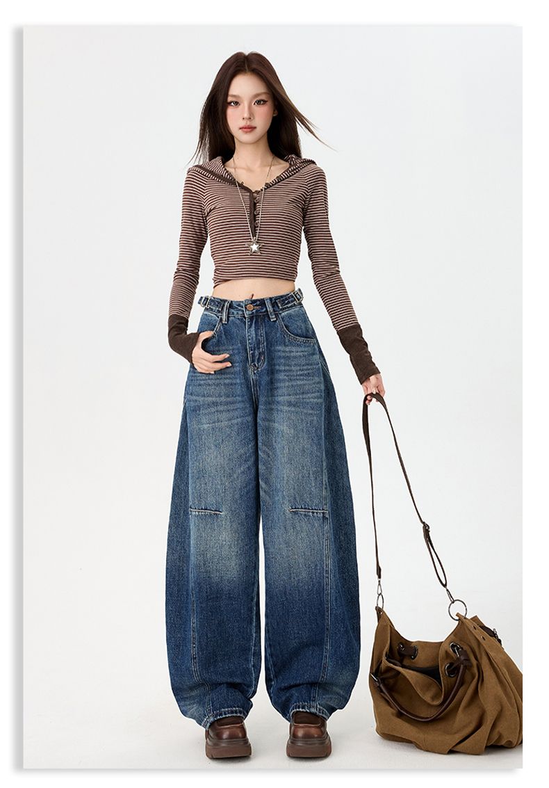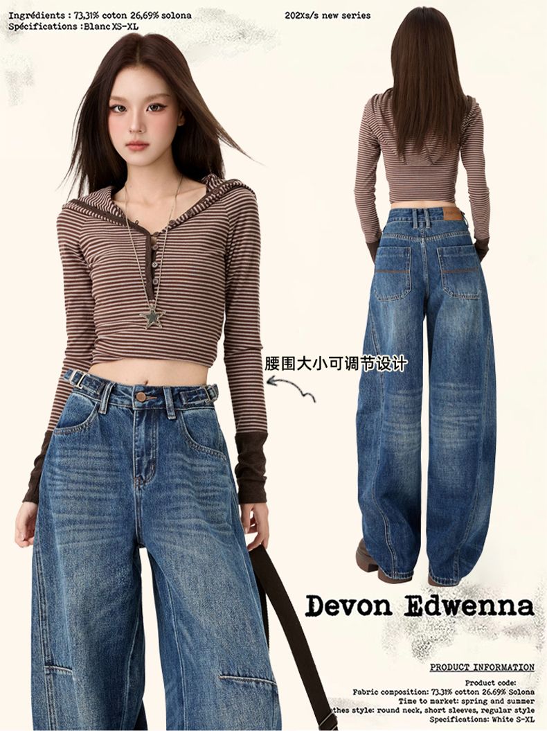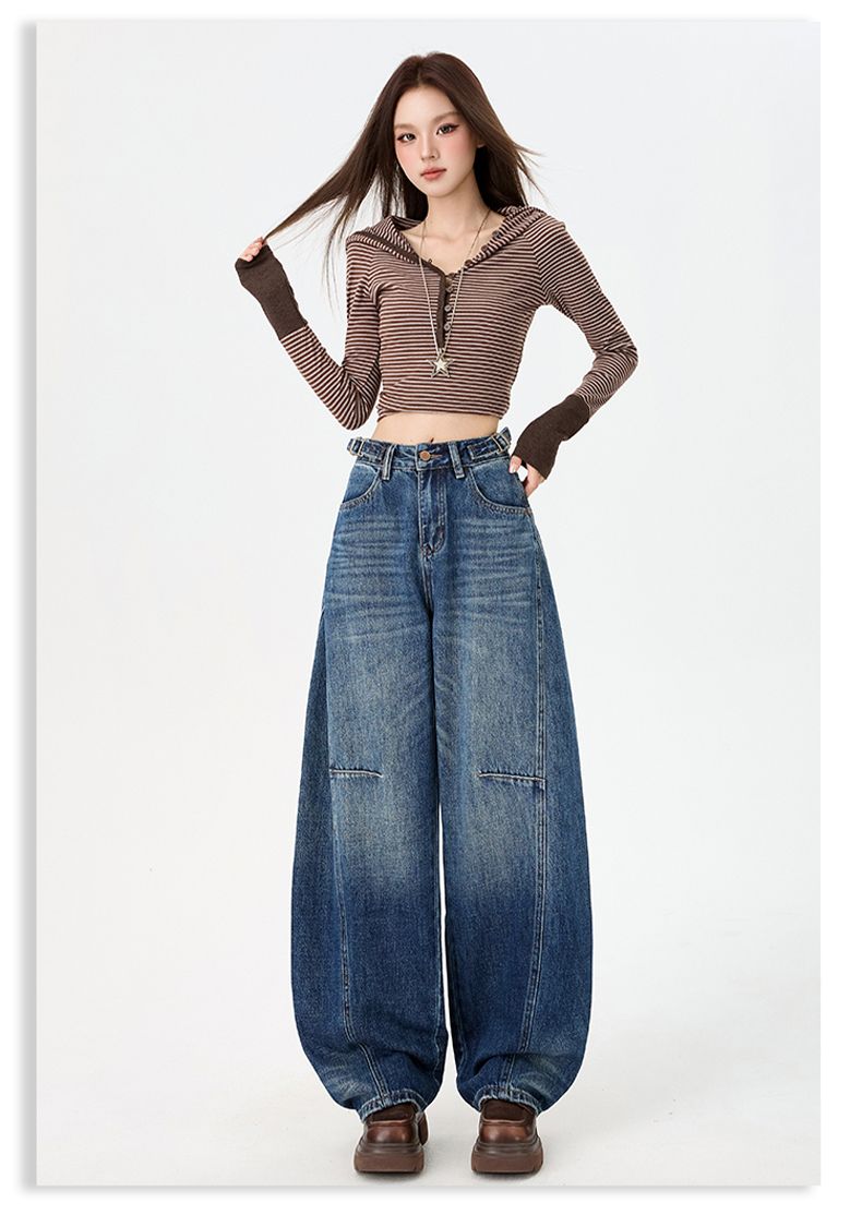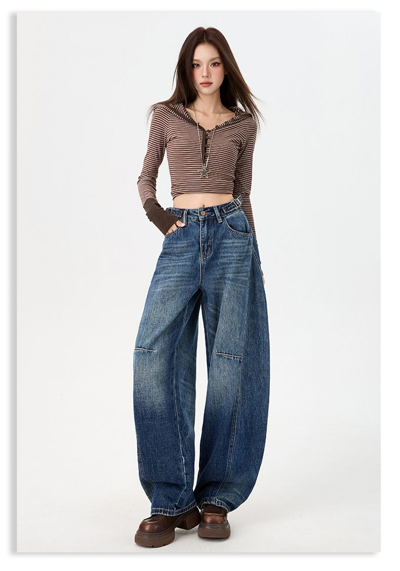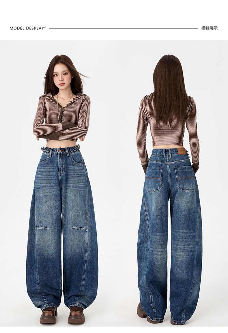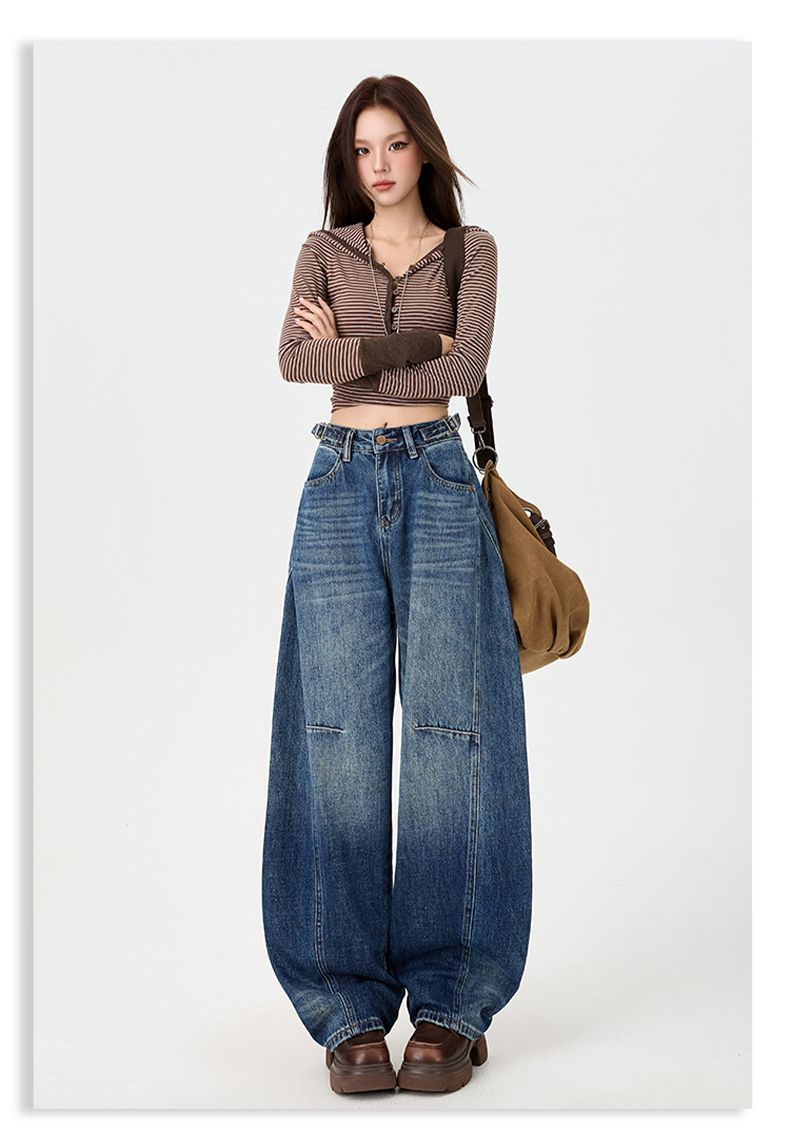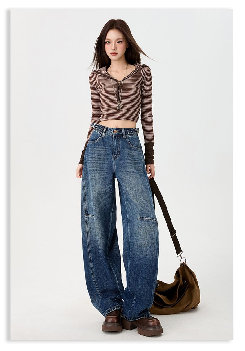 실사 Gypsophila 플래시 훈련 봄 새로운 하이웨이스트 아메리칸 좁은 에디션 스트레이트 넓은 다리 청바지 여성 루즈핏 바닥 청소 바지