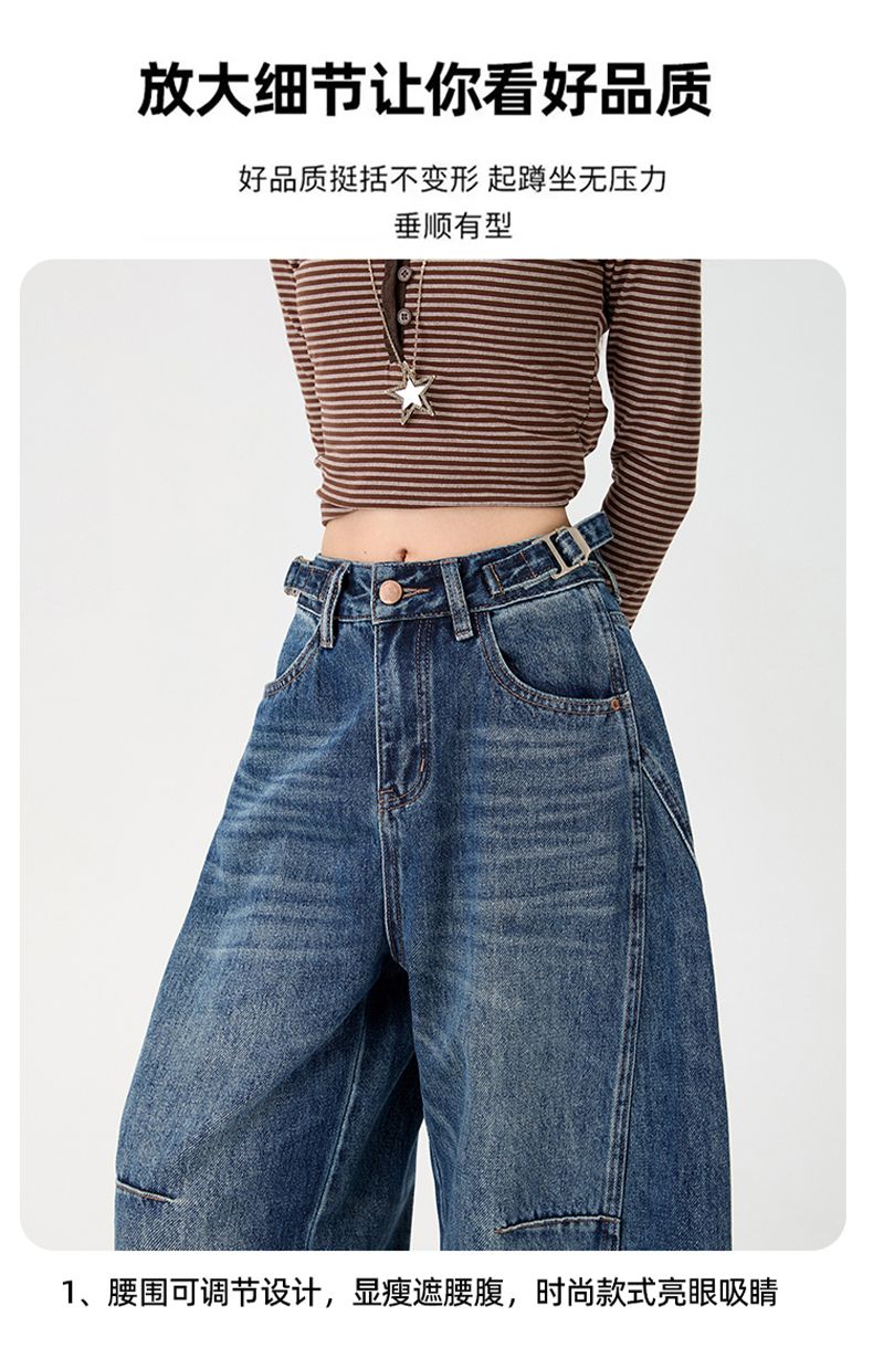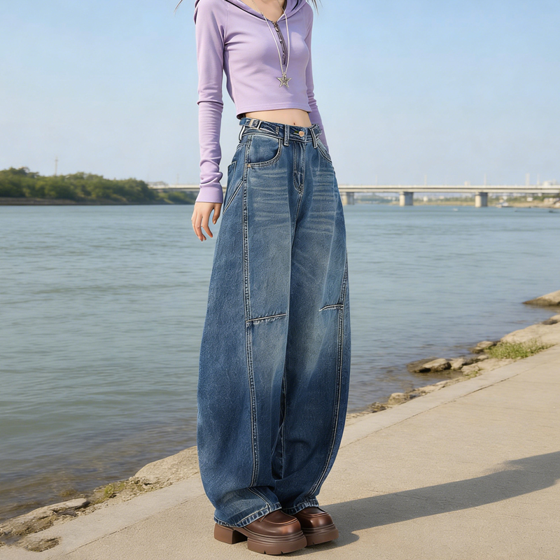 실사 2026 봄 디자이너 수정 디자인 다용도 넓은 다리 워싱 루즈핏 아메리칸 레트로 청바지 스트레이트 팬츠