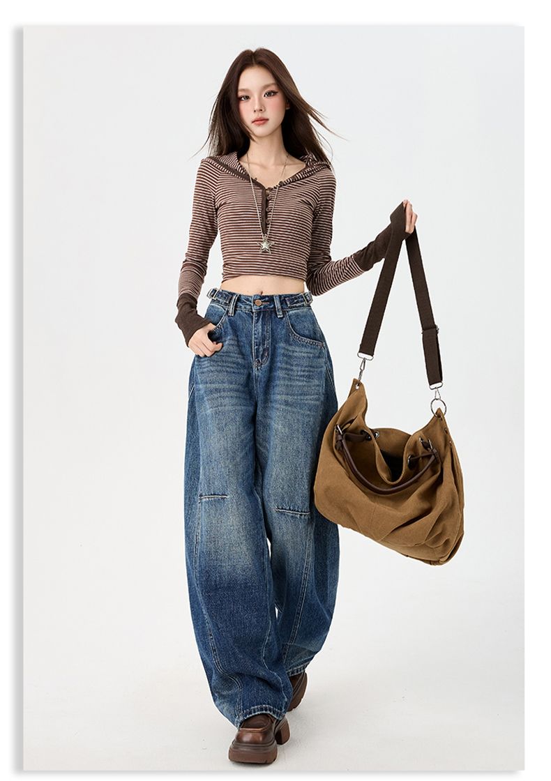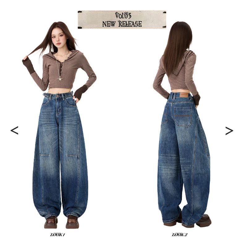 실사 2026 봄 새로운 가방 표지 세트 발생액 엉덩이 하이웨이스트 루즈핏 청바지 스트레이트 넓은 다리 바닥 청소 청바지 여성
