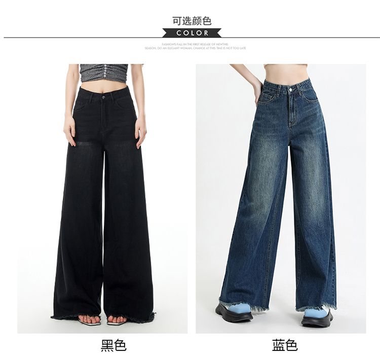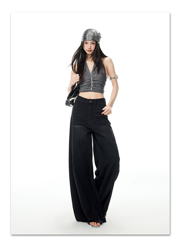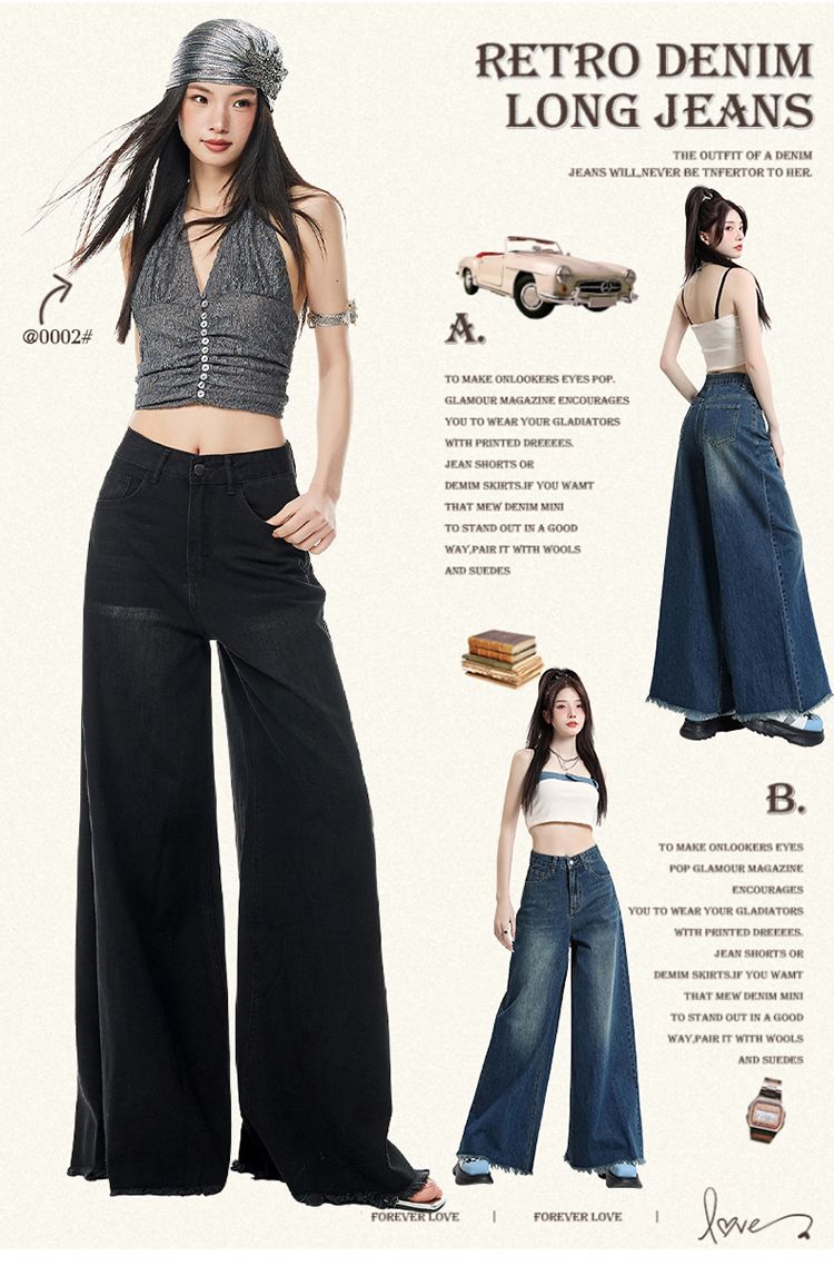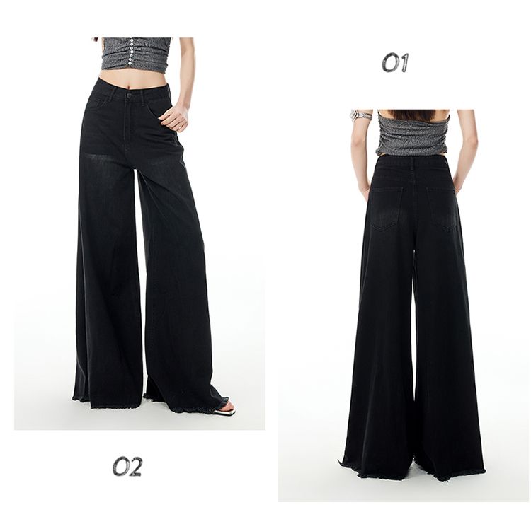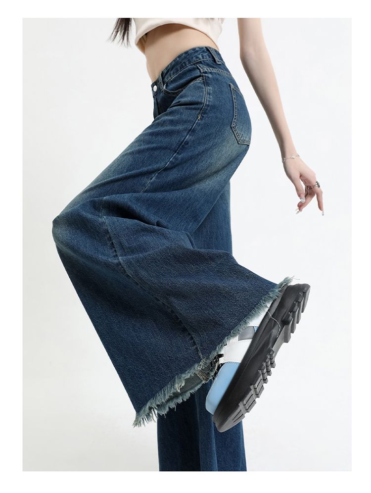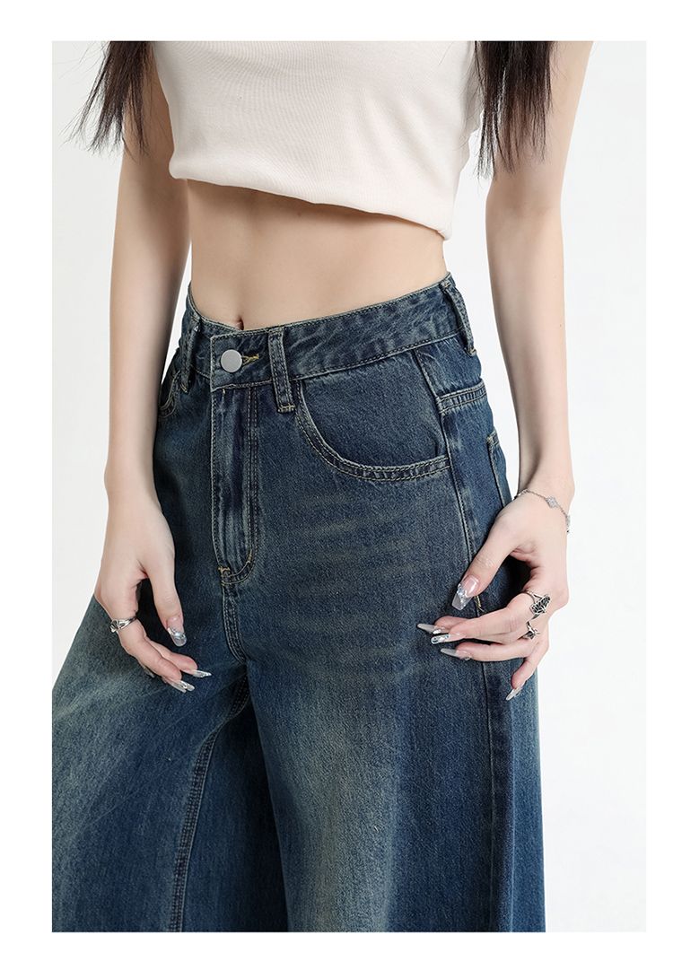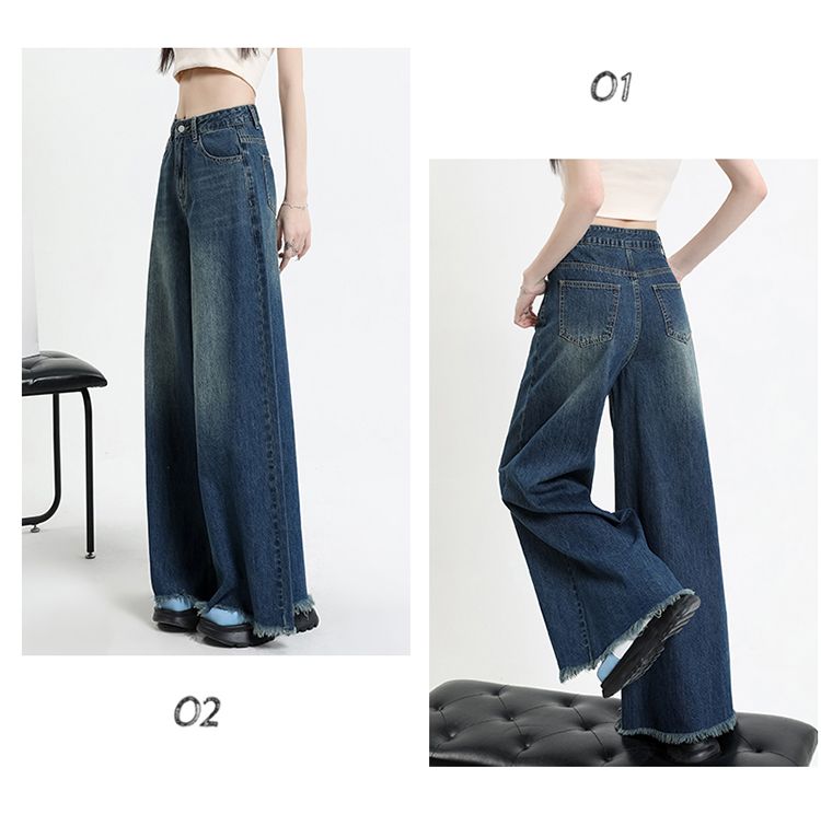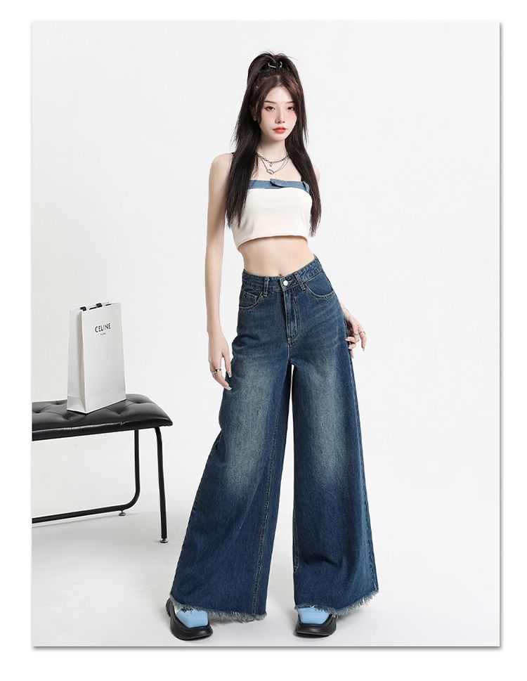 실사 Gypsophila 플래시 훈련 봄 새로운 하이웨이스트 아메리칸 좁은 에디션 스트레이트 넓은 다리 청바지 여성 루즈핏 바닥 청소 바지