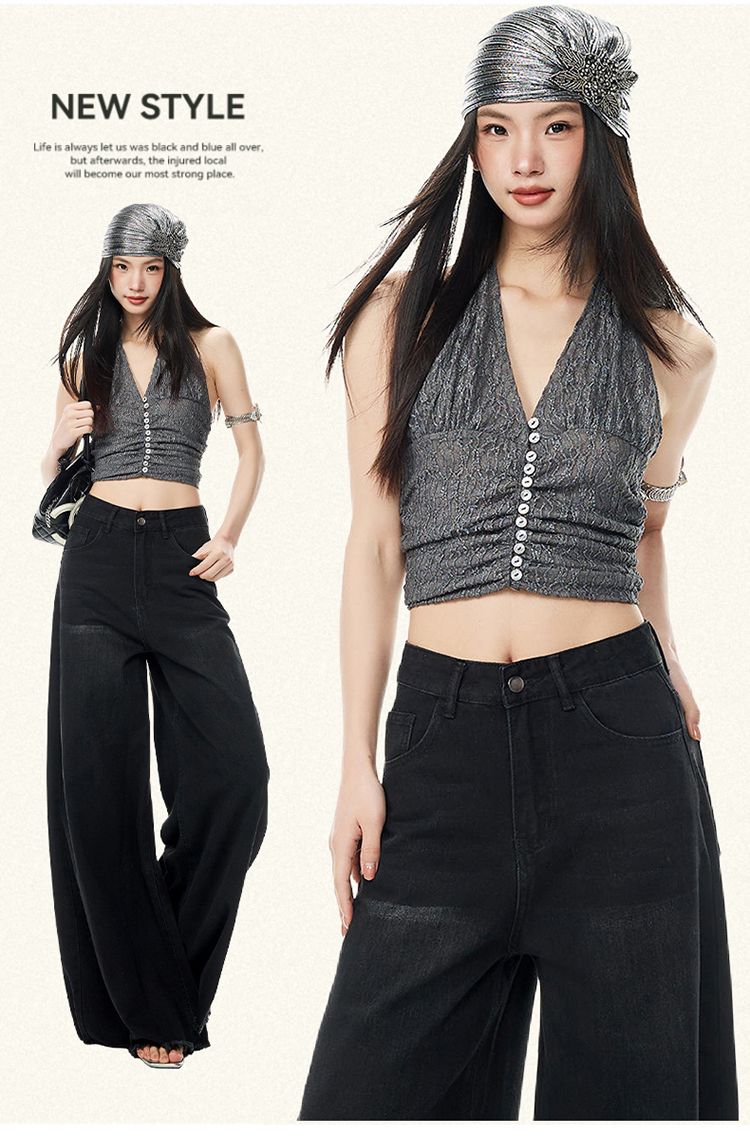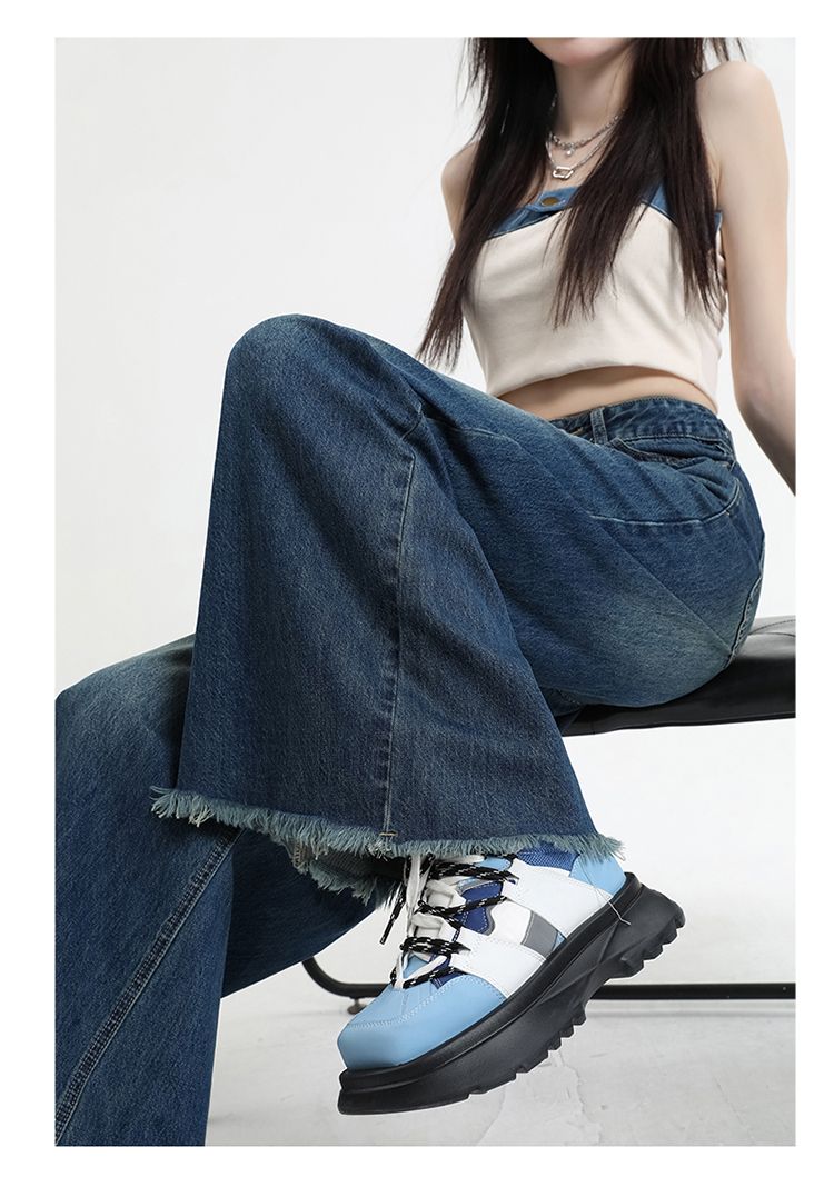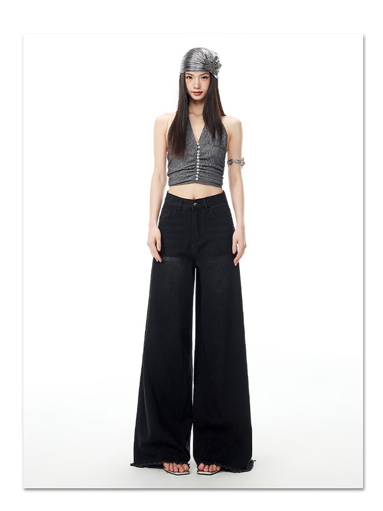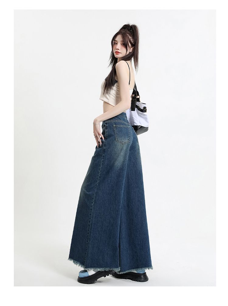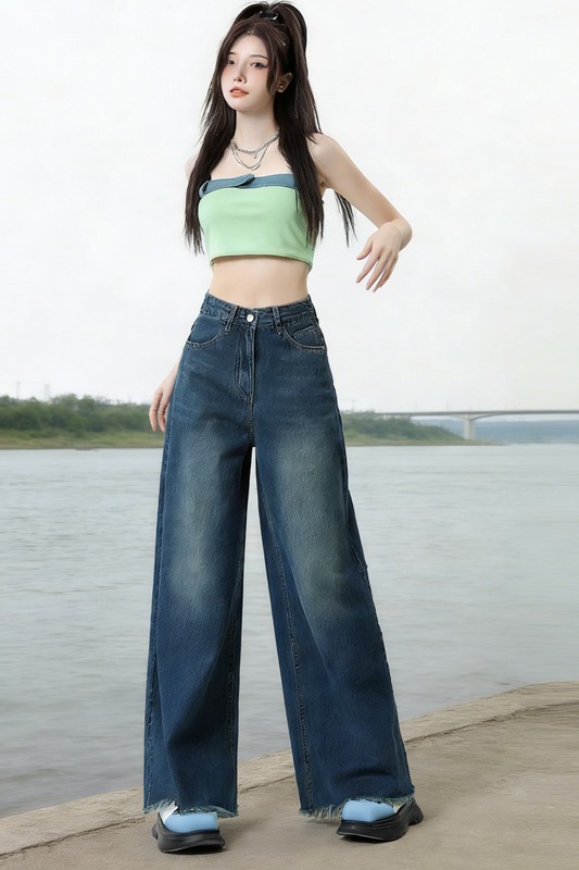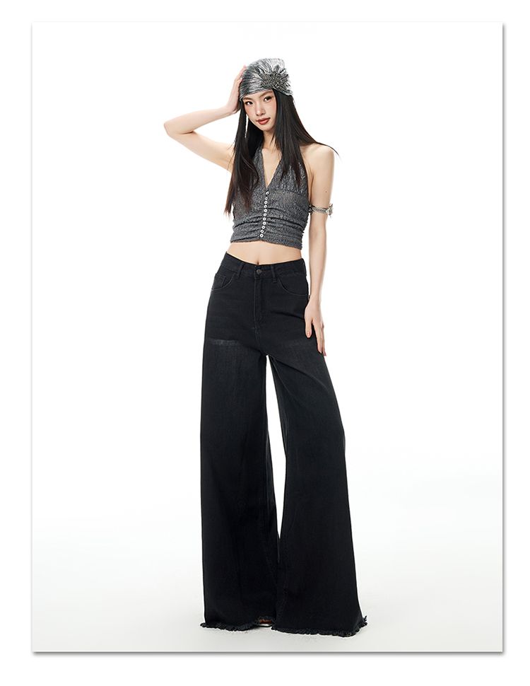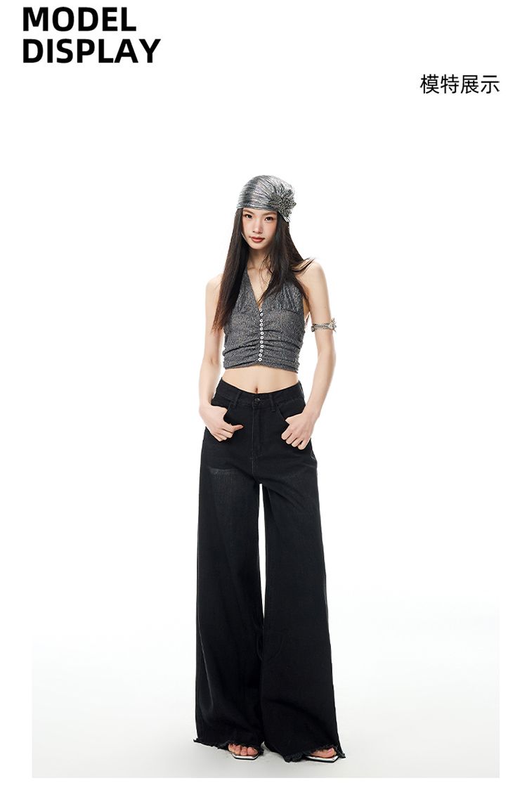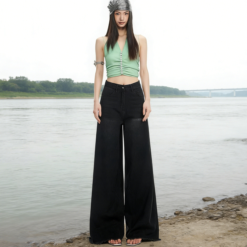 실사 Gypsophila 플래시 훈련 봄 새로운 하이웨이스트 아메리칸 좁은 에디션 스트레이트 넓은 다리 청바지 여성 루즈핏 바닥 청소 바지