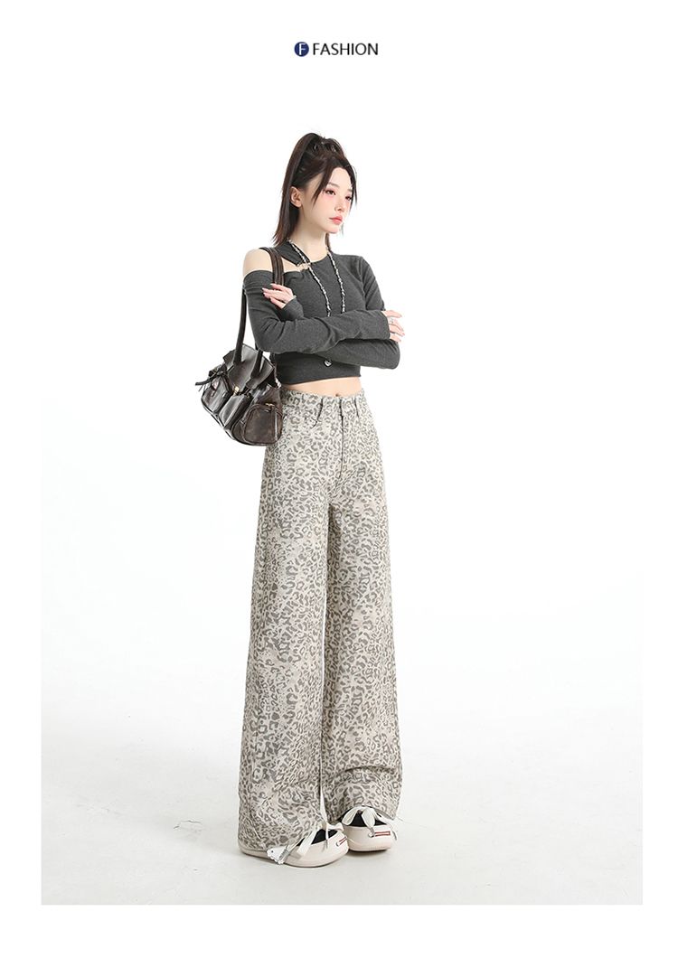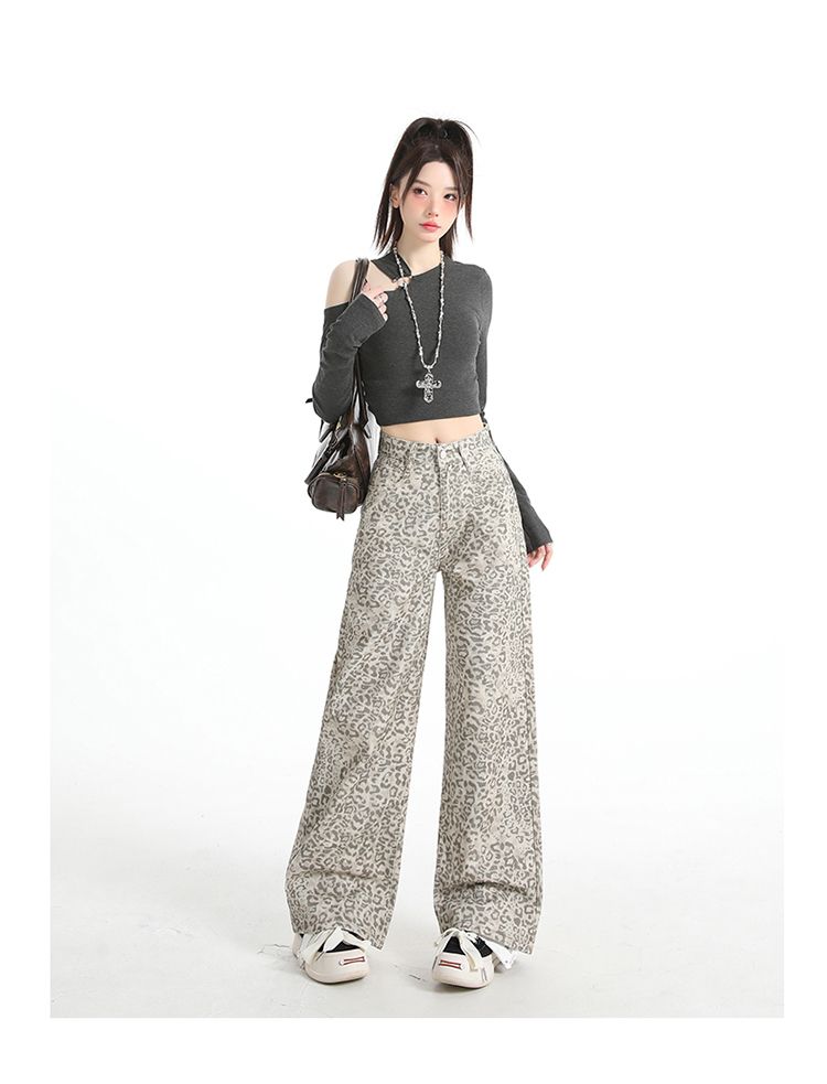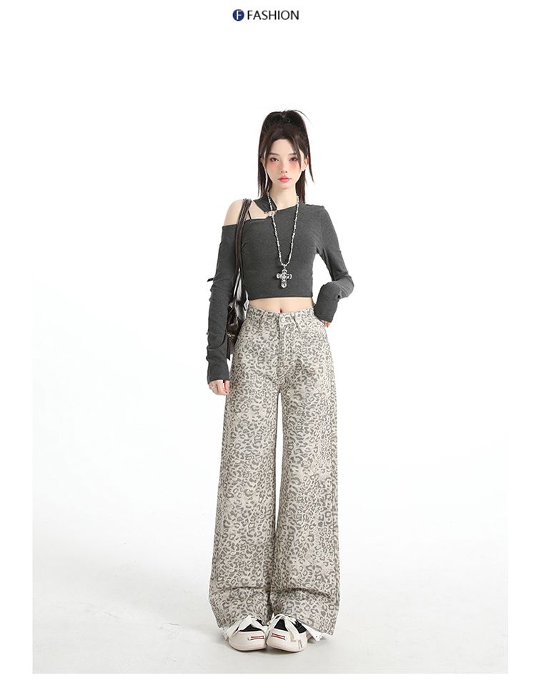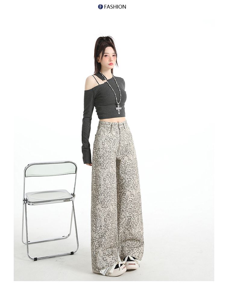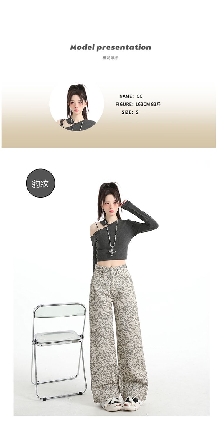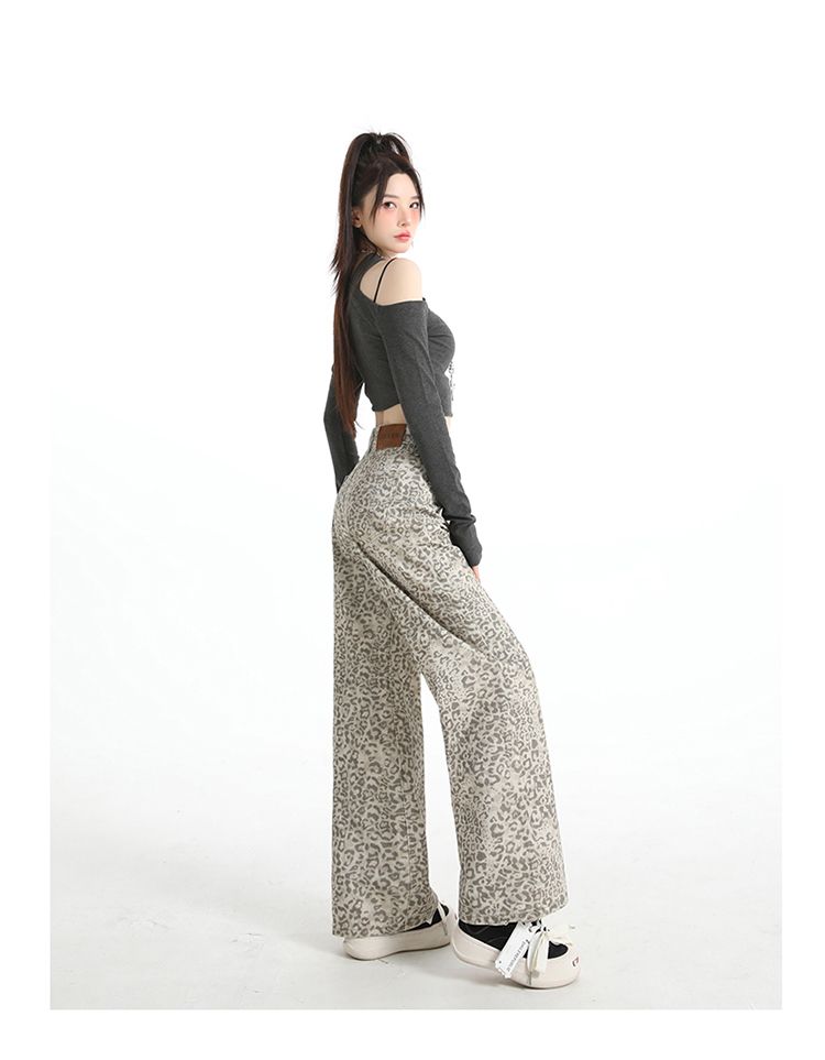 실사 2026 아메리칸 새로운 레트로 레오파드 무늬 청바지 여성 디자인 센스 높음 거리 도루 센스 스트레이트 바지 트렌디