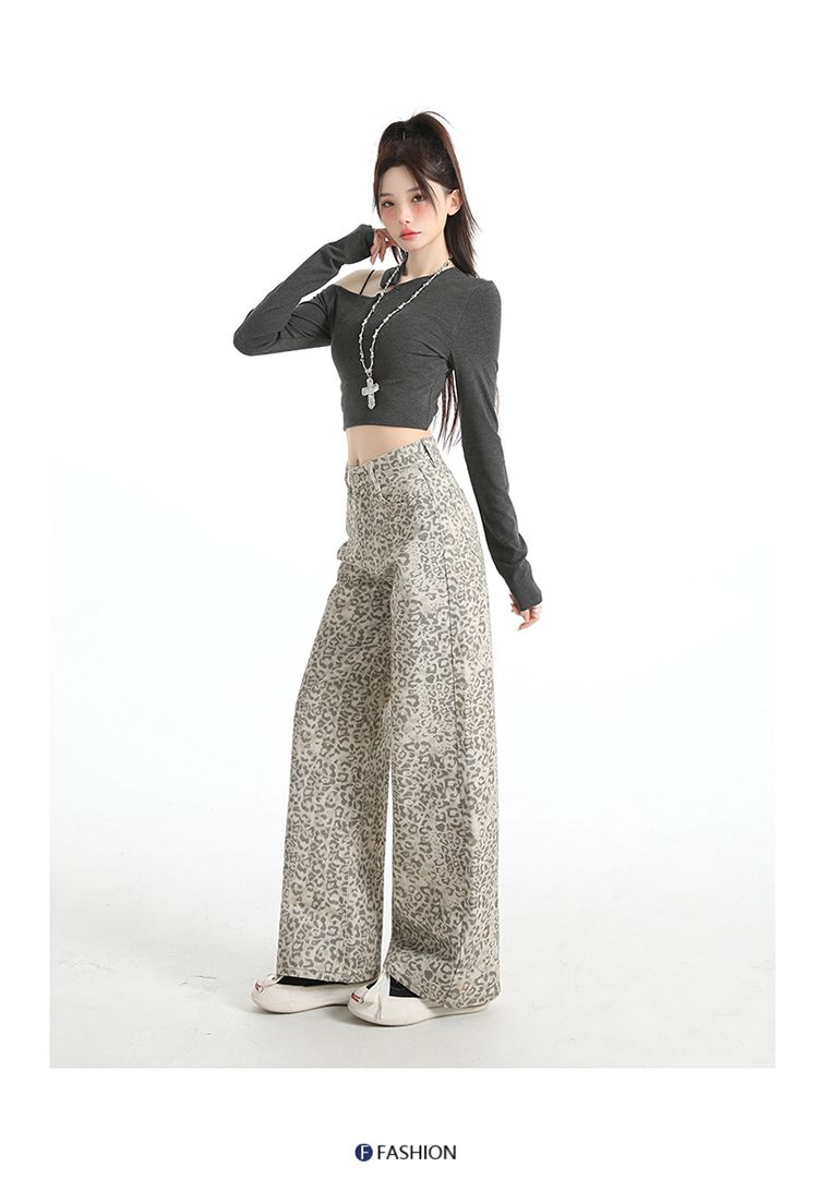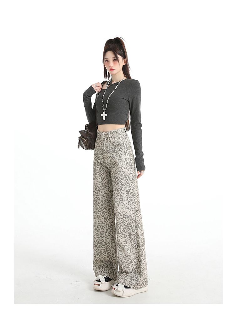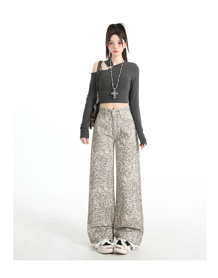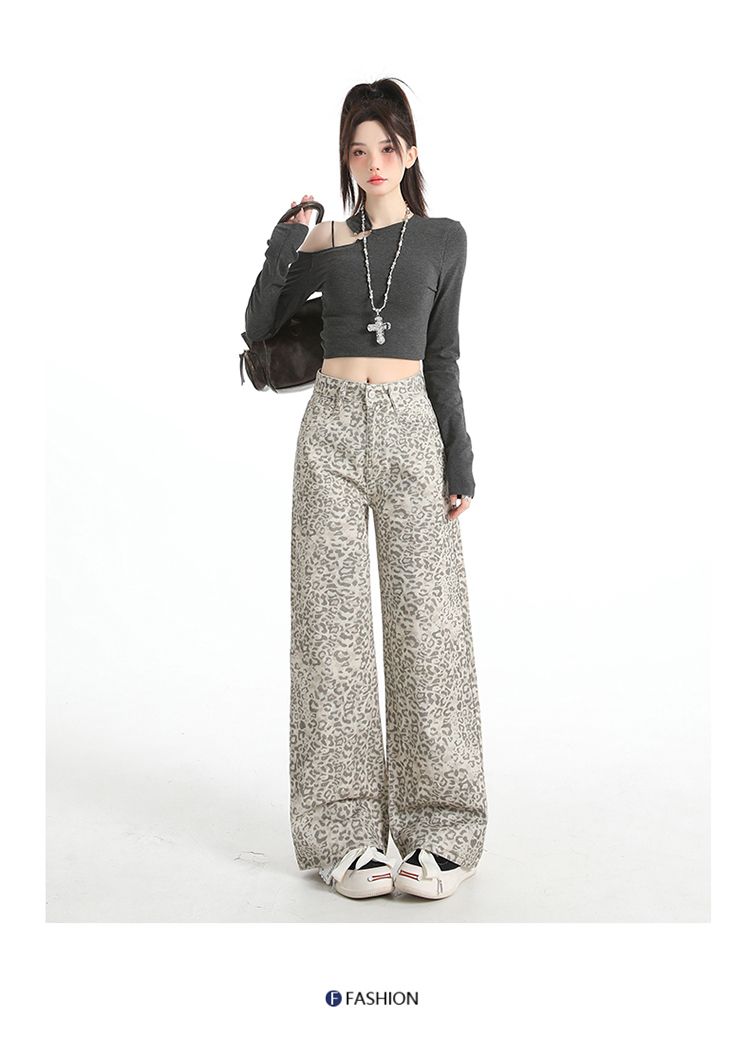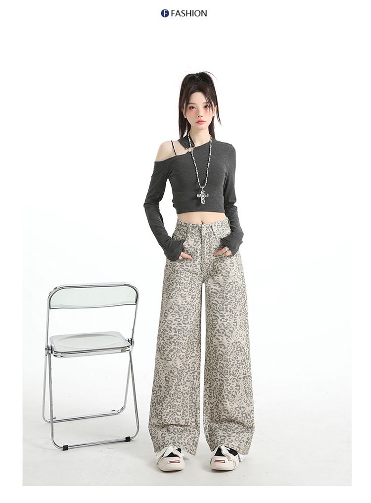 실사 2026 아메리칸 새로운 레트로 레오파드 무늬 청바지 여성 디자인 센스 높음 거리 도루 센스 스트레이트 바지 트렌디