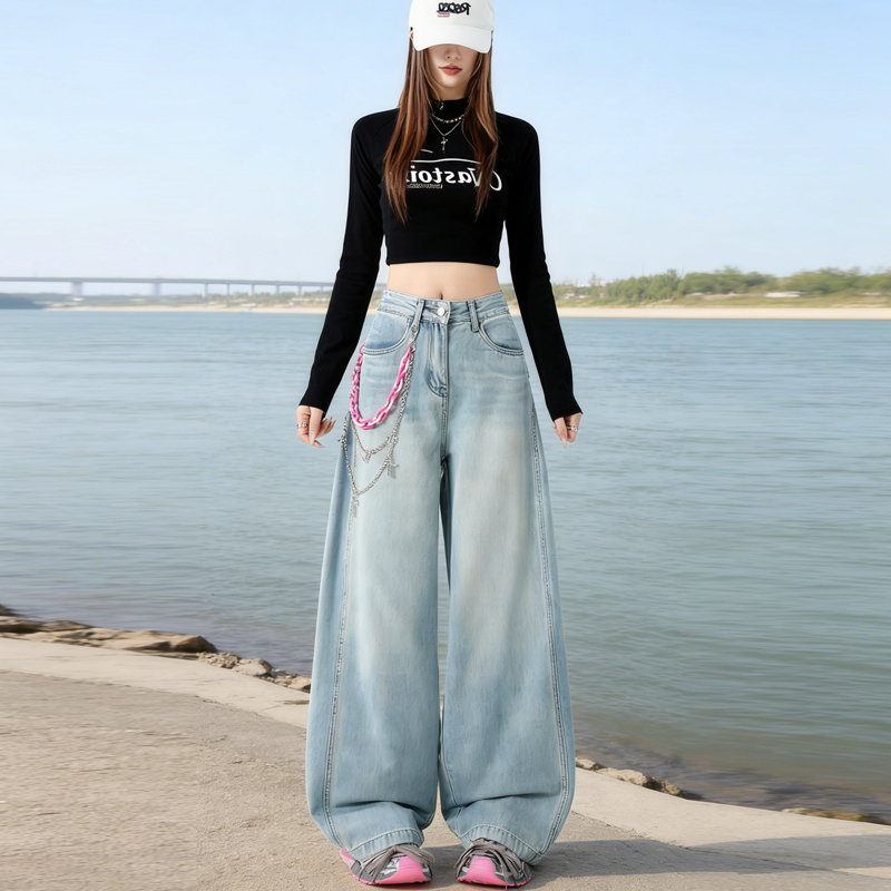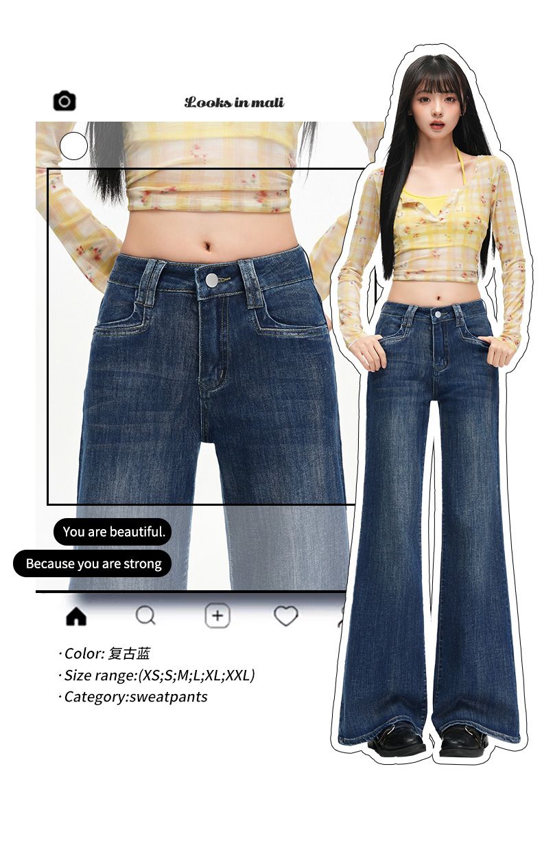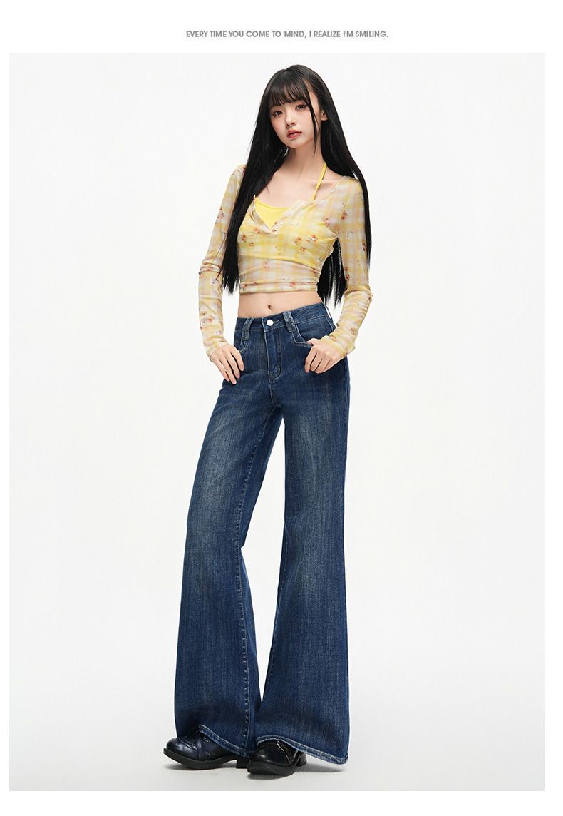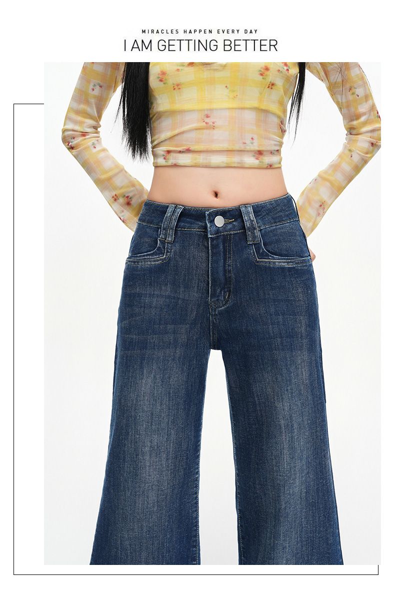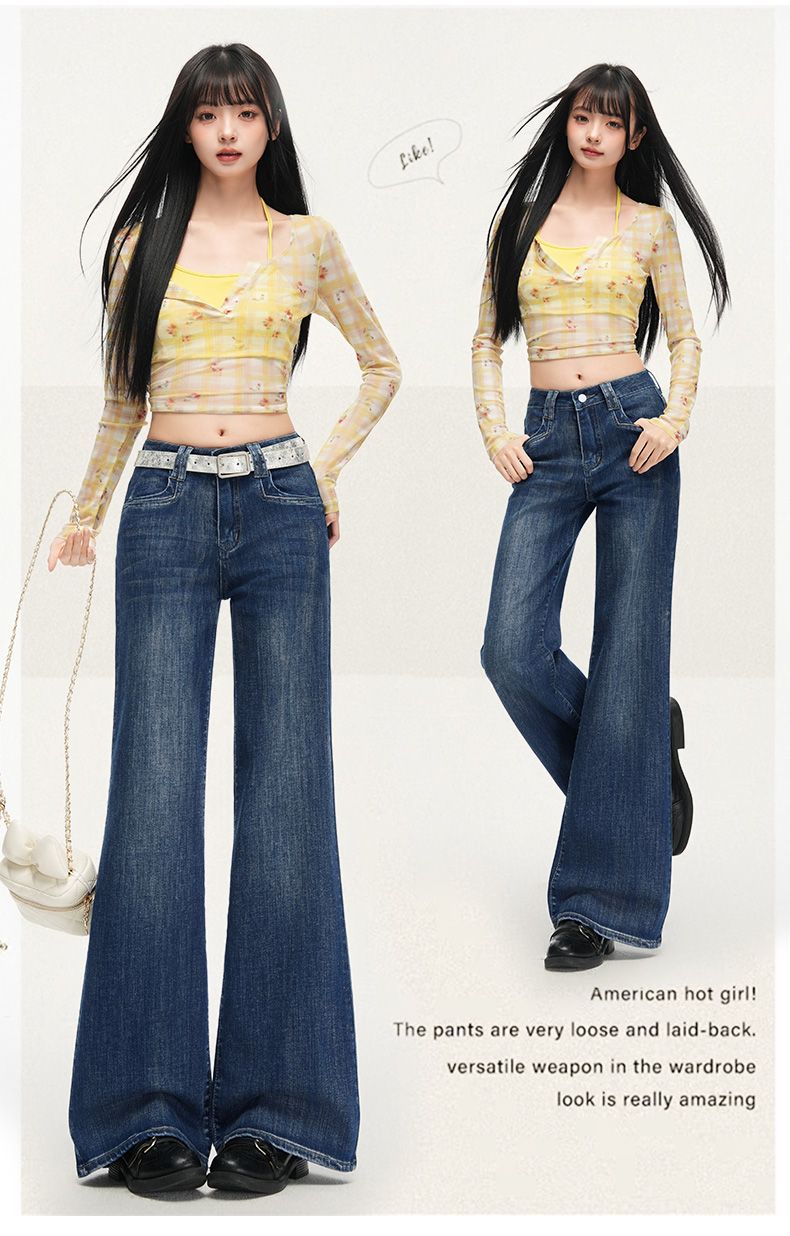 실사 Gypsophila 플래시 훈련 봄 새로운 하이웨이스트 아메리칸 좁은 에디션 스트레이트 넓은 다리 청바지 여성 루즈핏 바닥 청소 바지
