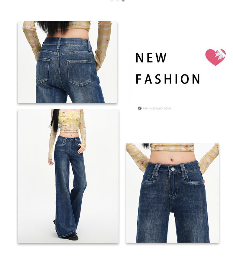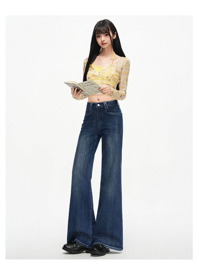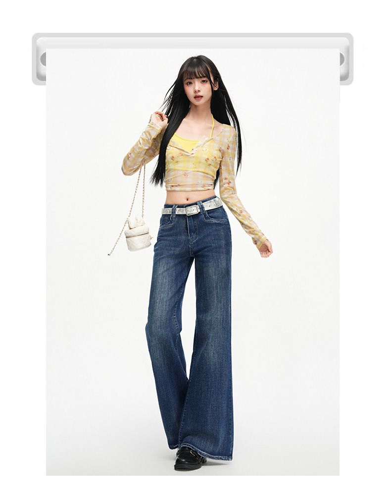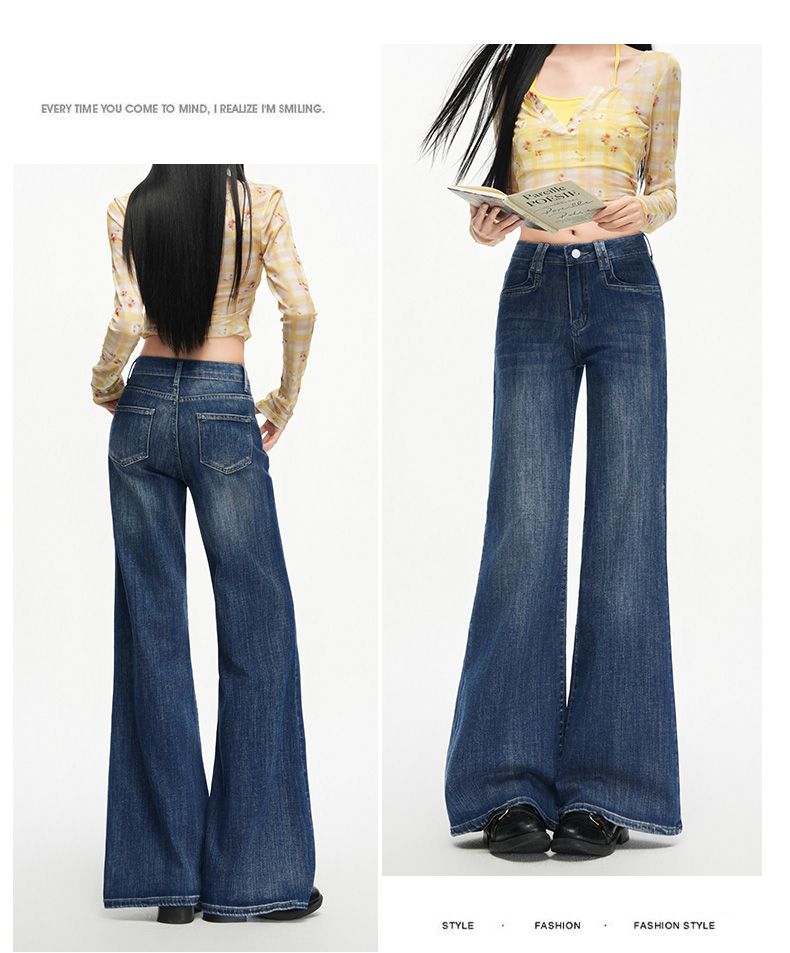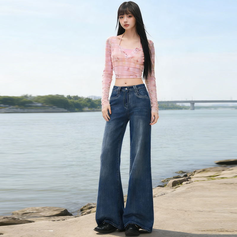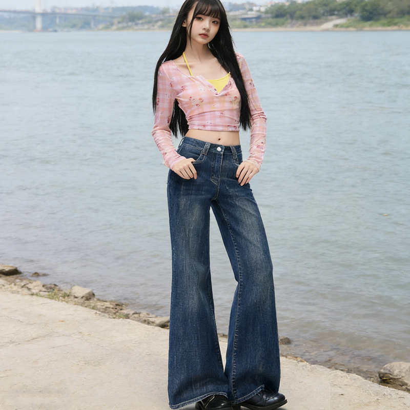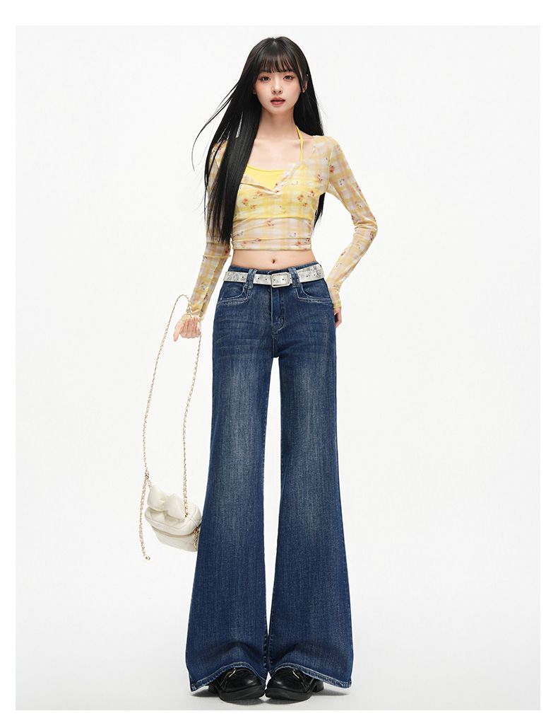 실사 Gypsophila 플래시 훈련 봄 새로운 하이웨이스트 아메리칸 좁은 에디션 스트레이트 넓은 다리 청바지 여성 루즈핏 바닥 청소 바지