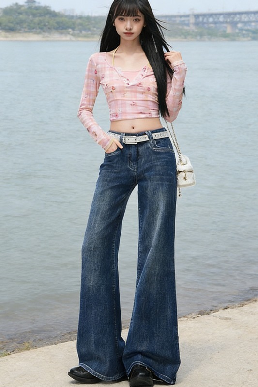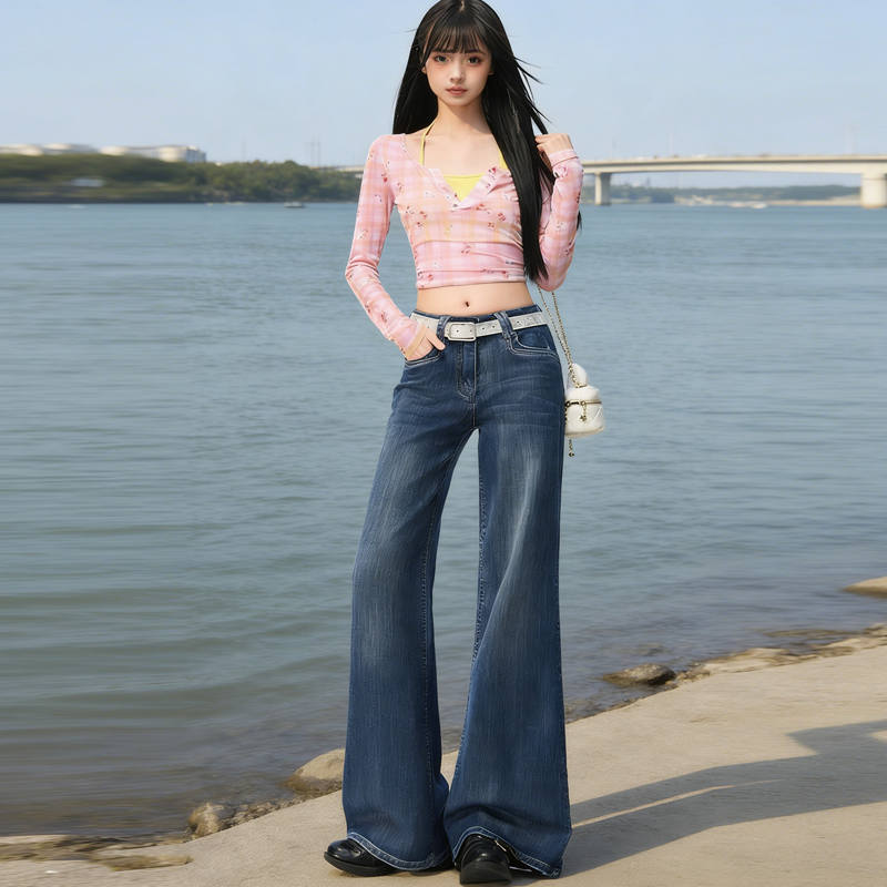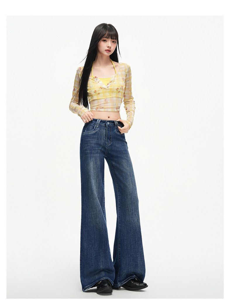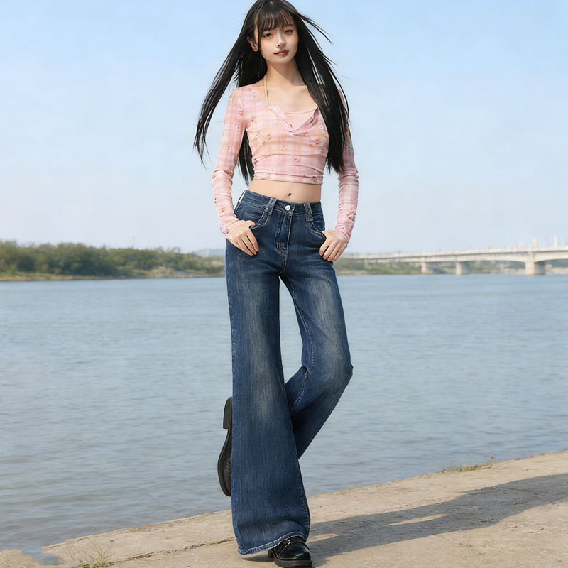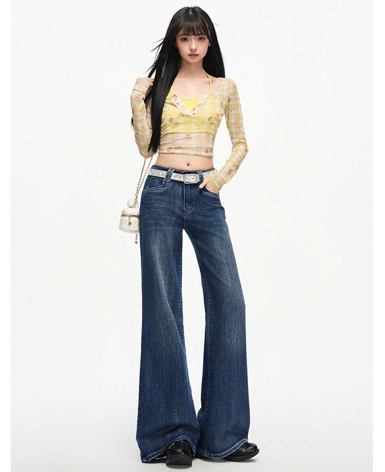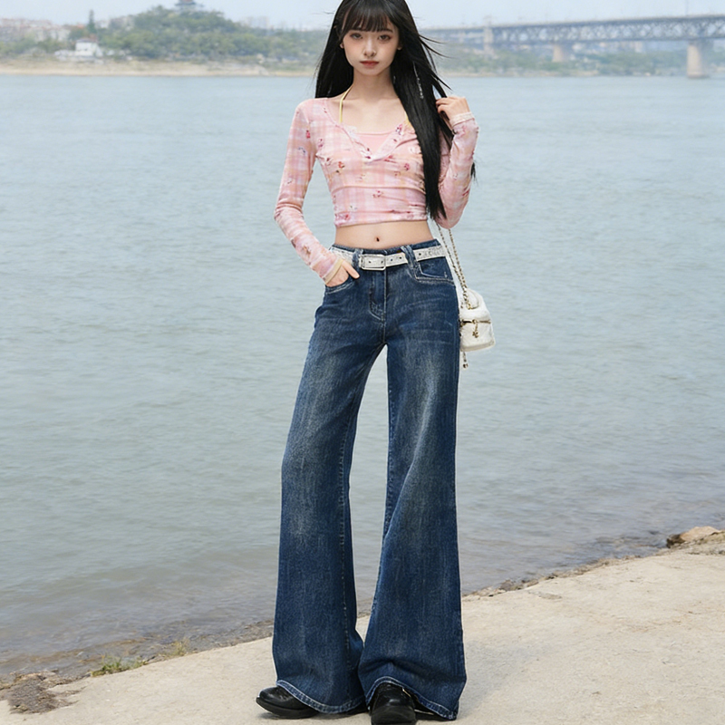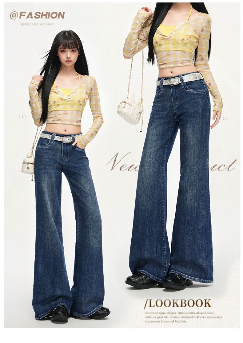 실사 Gypsophila 플래시 훈련 봄 새로운 하이웨이스트 아메리칸 좁은 에디션 스트레이트 넓은 다리 청바지 여성 루즈핏 바닥 청소 바지