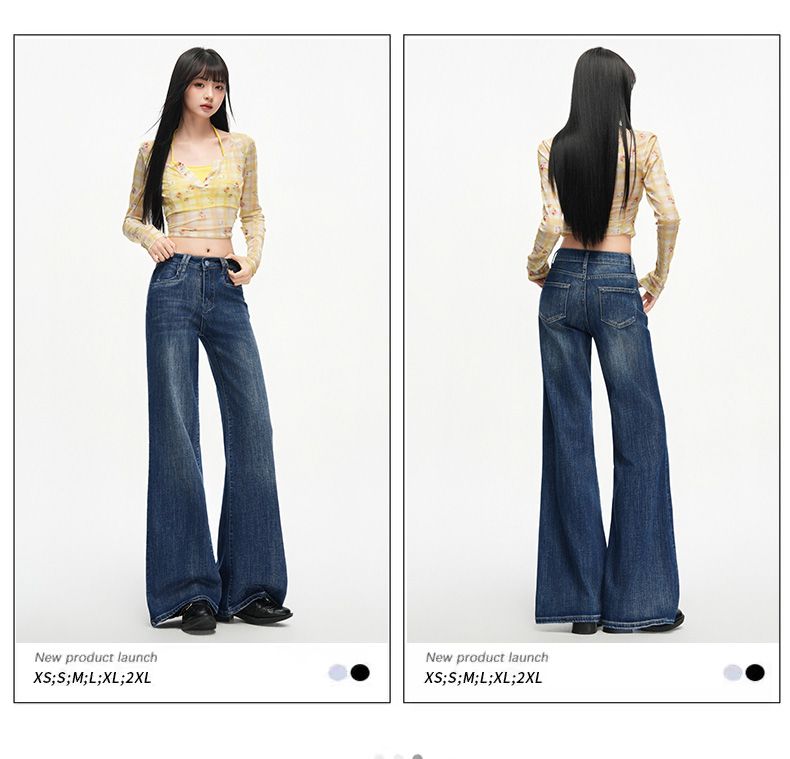 실사 2026 아메리칸 진한 파란색 세단 닝 블루 아니요 막대기 다리 부츠컷 청바지 루즈핏 슬림해 보이는 다용도 바닥 청소 바지 여성
