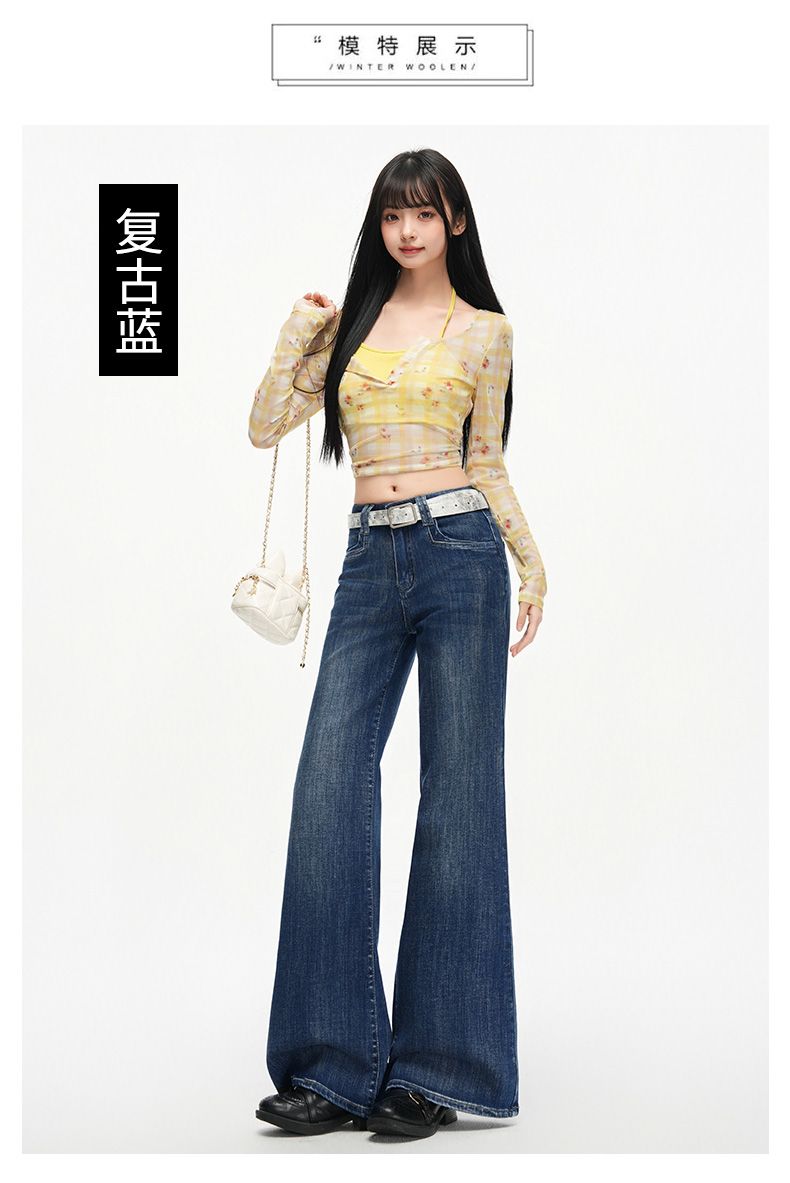 실사 2026 봄 뜨거운 판매 새로운 레트로 노스탤지어 부츠컷 청바지 여성 몸매 가꾸기 슬림해 보이는 호스 슈 나팔 바지 트렌디