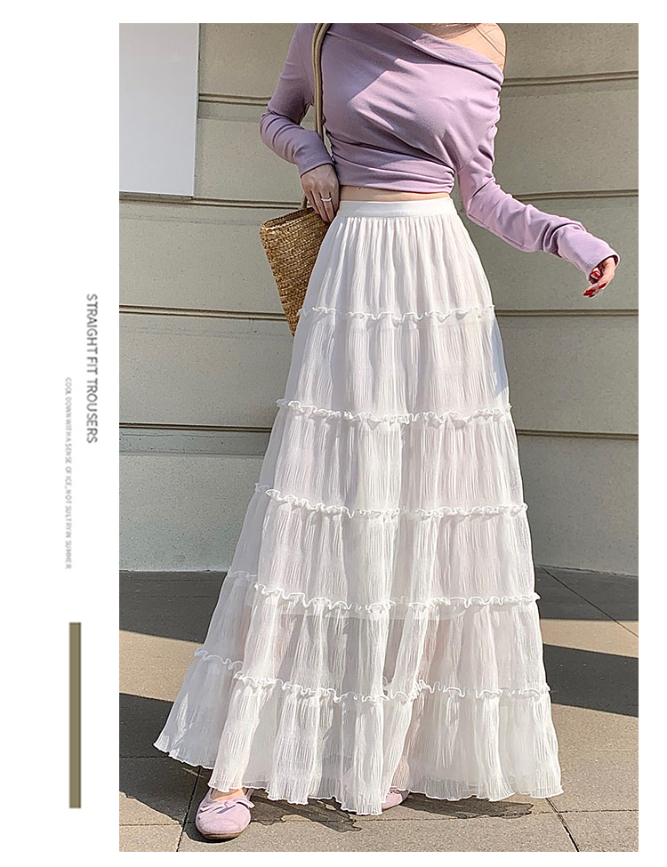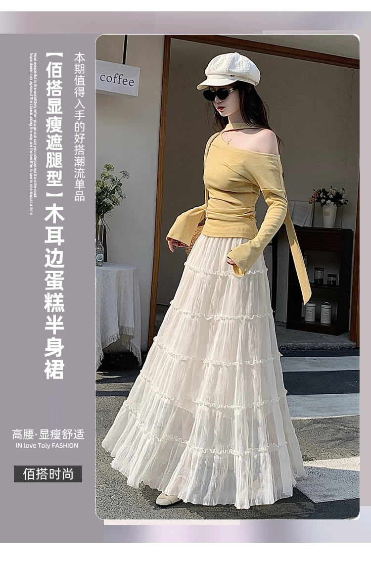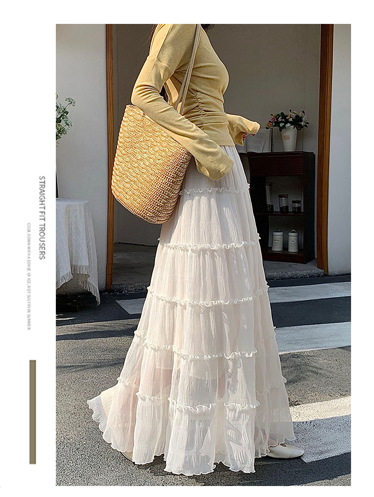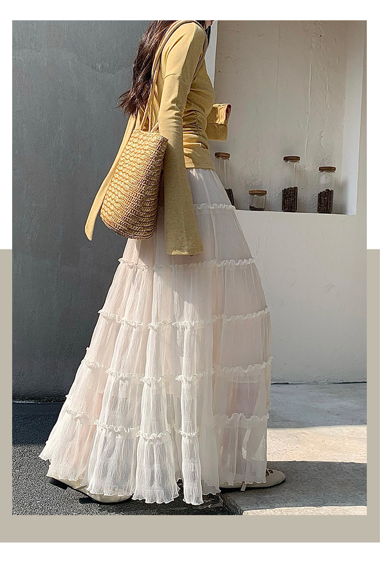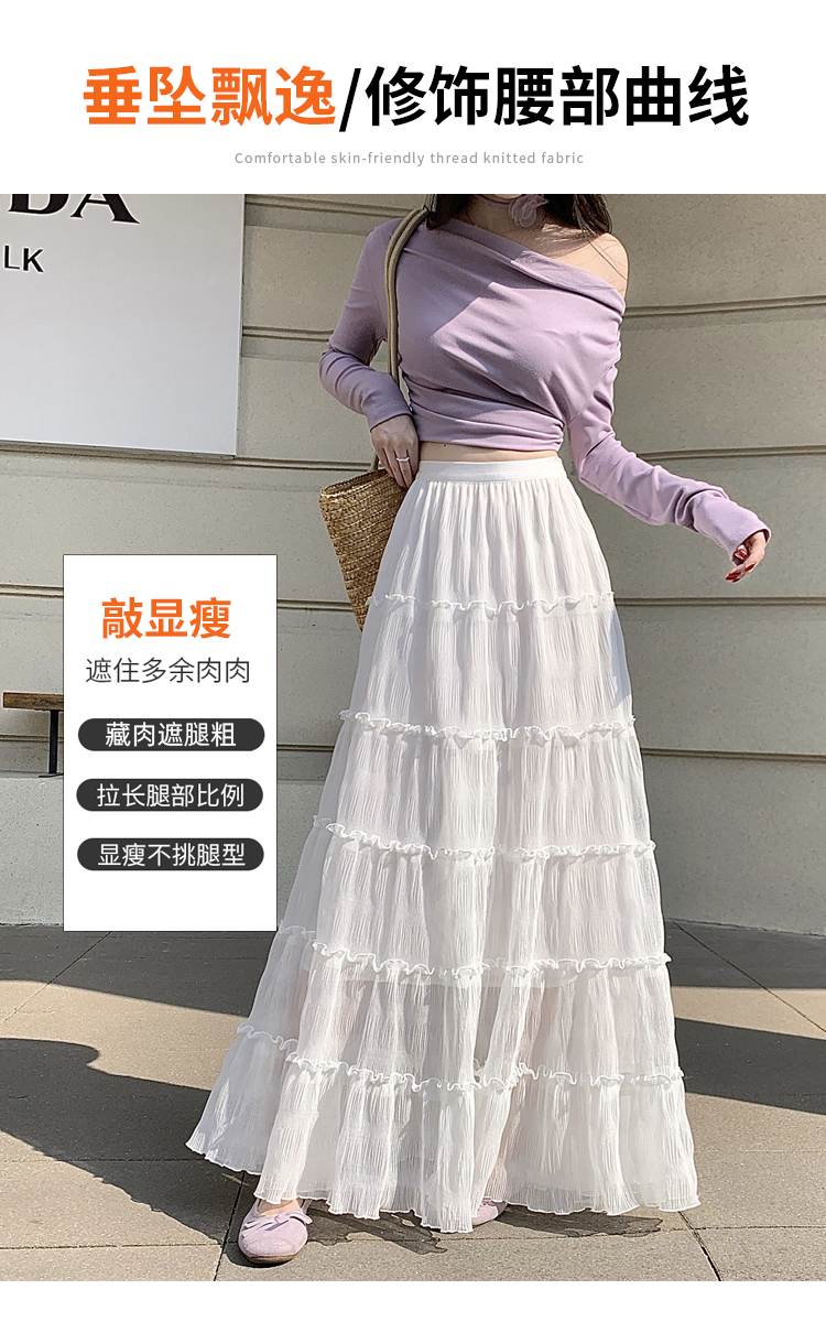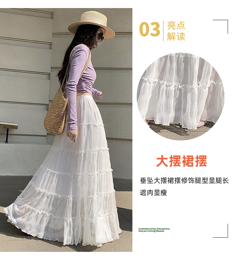 한 부서 프릴 주름 달콤함 반신 스커트 휴가 사진 찍기 롱 스커트 분위기 센스 봄 여름 부서 치마