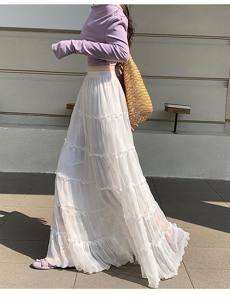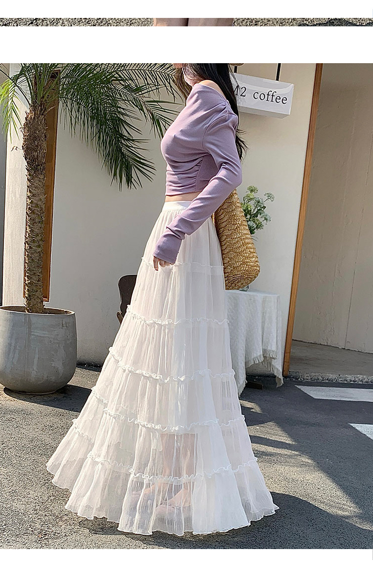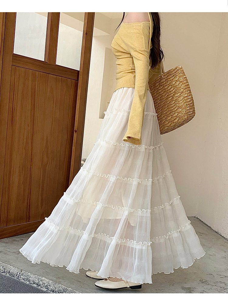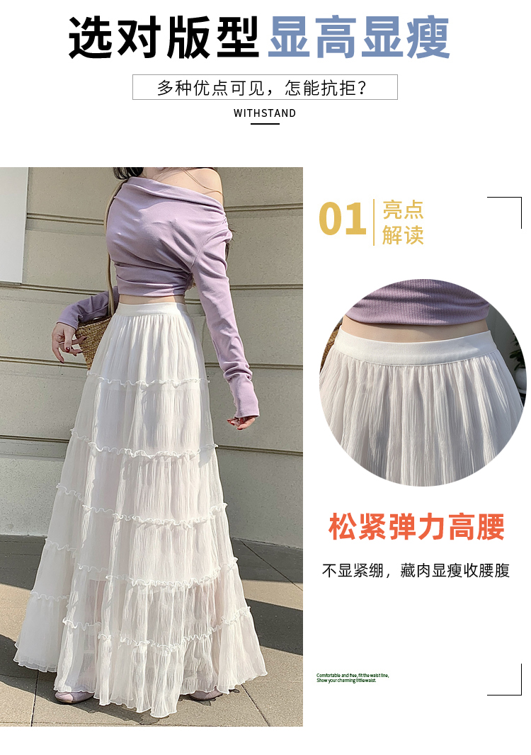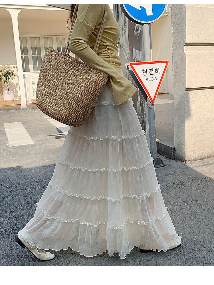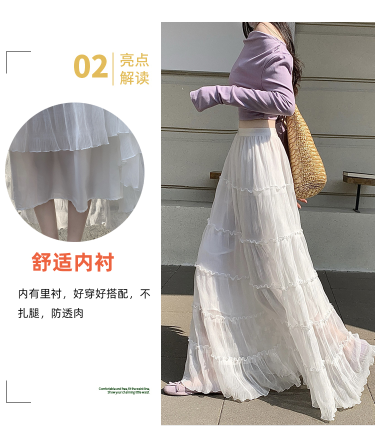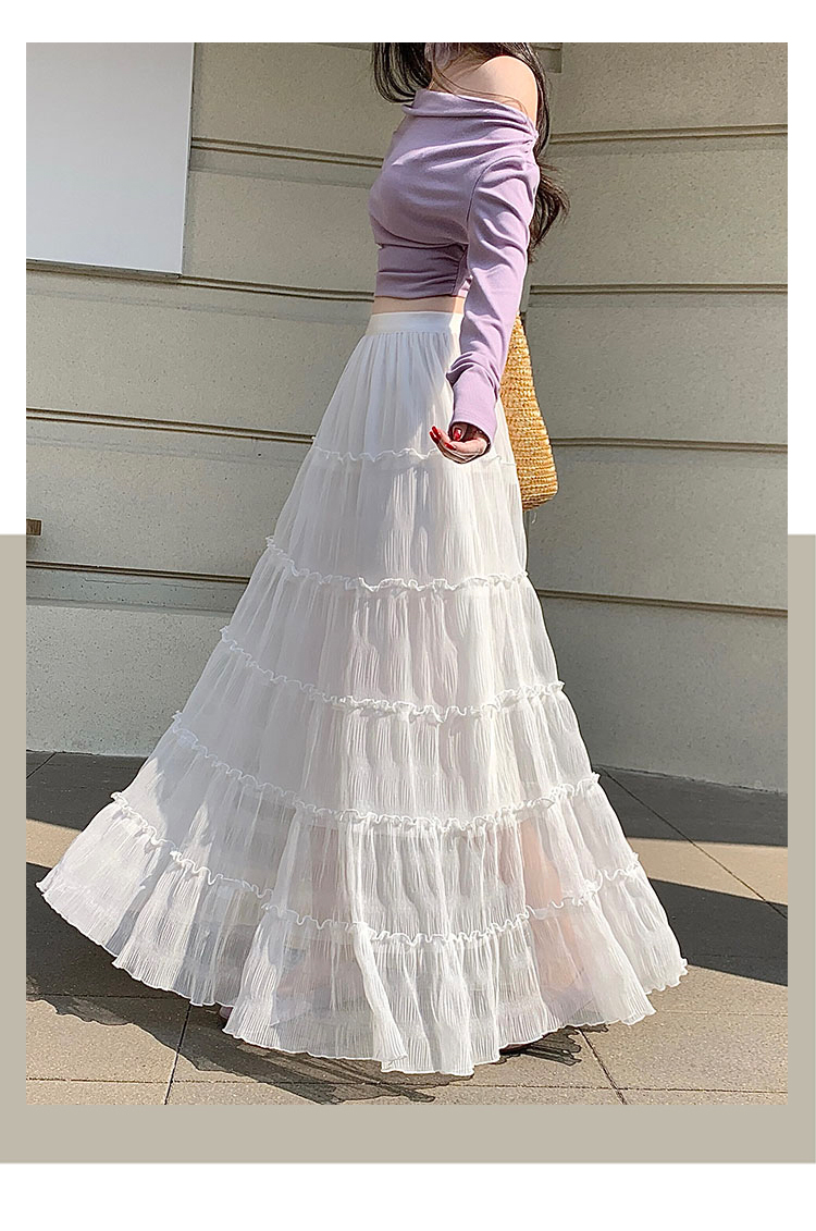 한 부서 프릴 주름 달콤함 반신 스커트 휴가 사진 찍기 롱 스커트 분위기 센스 봄 여름 부서 치마