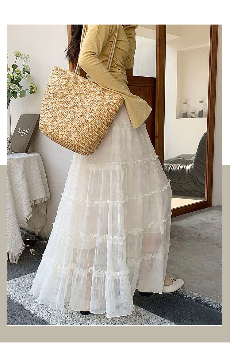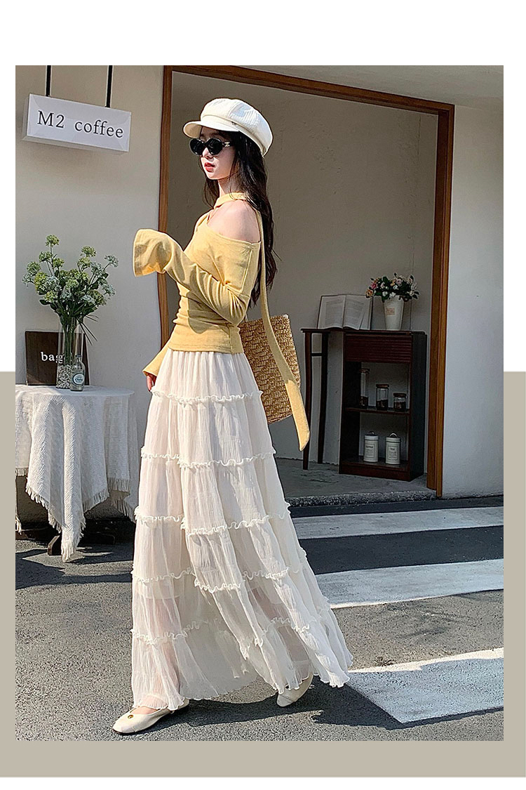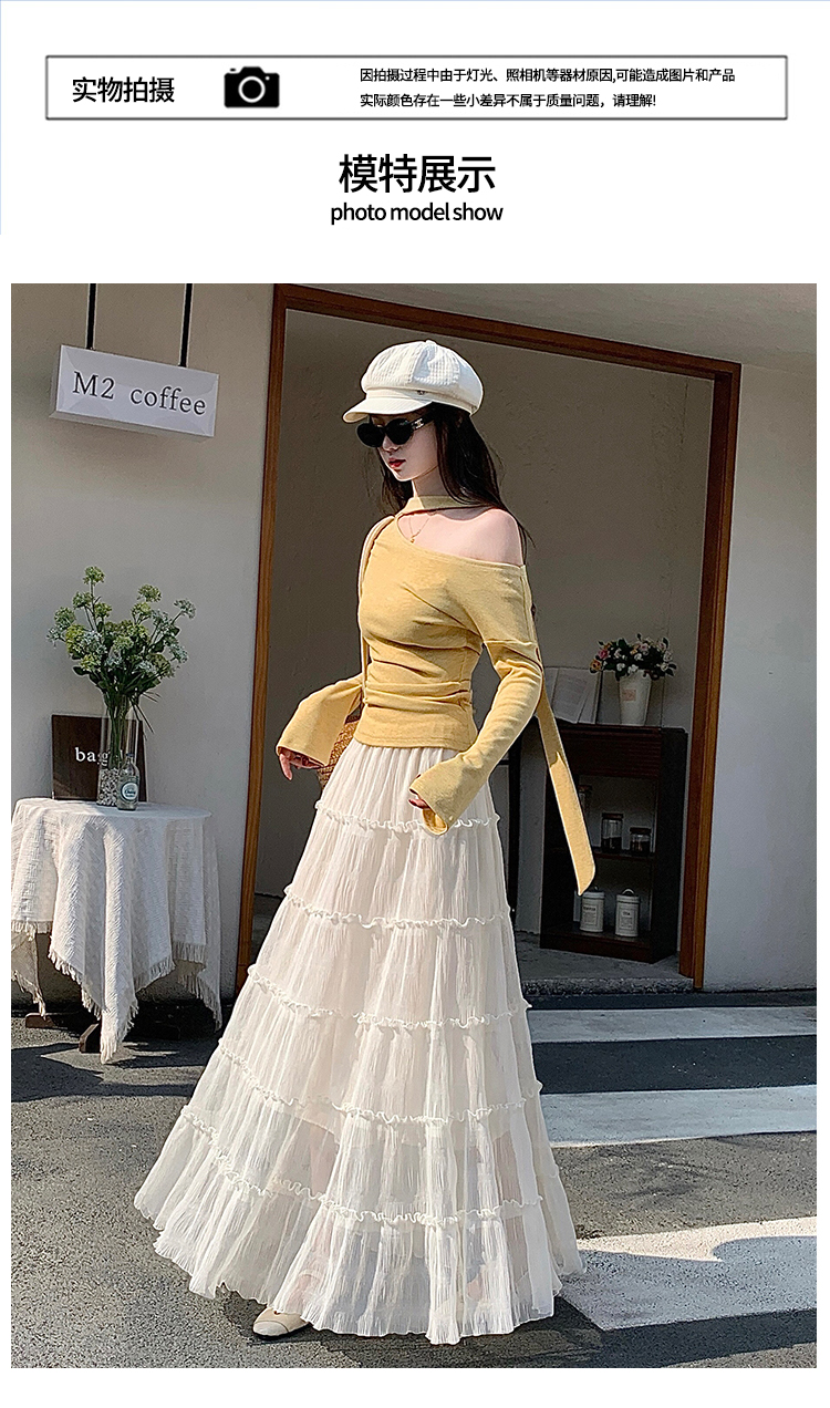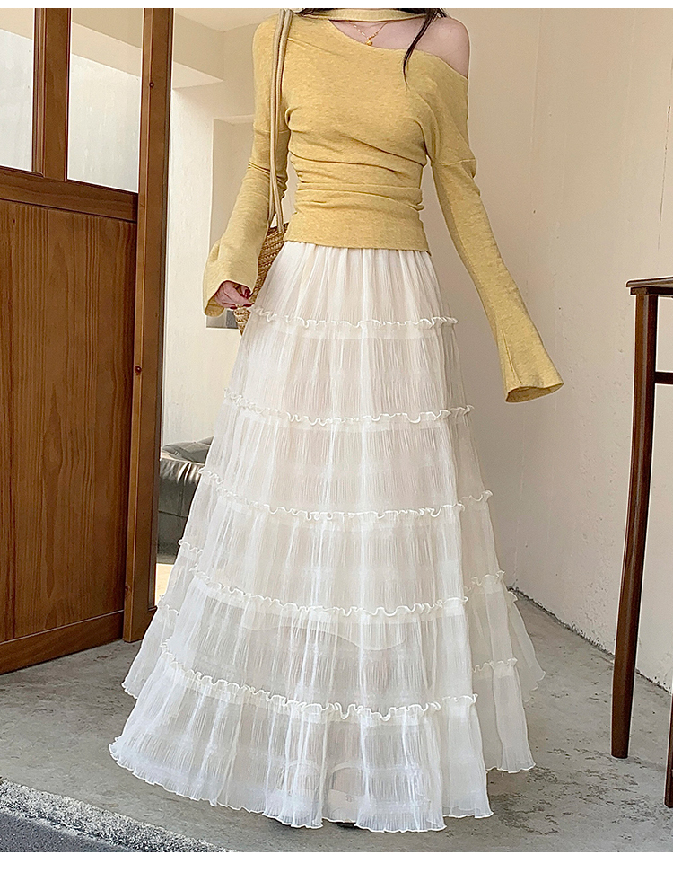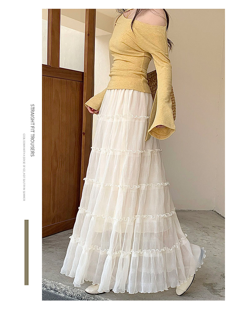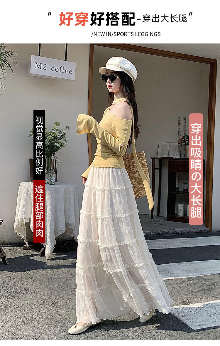 한 부서 프릴 주름 달콤함 반신 스커트 휴가 사진 찍기 롱 스커트 분위기 센스 봄 여름 부서 치마