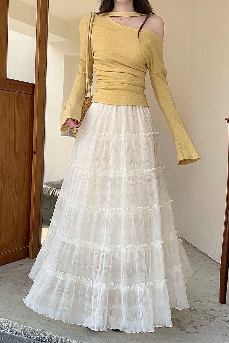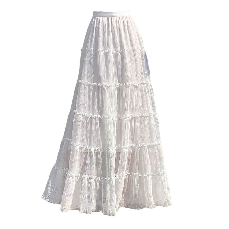 화이트 반신 스커트 여성 2026 봄 여름 새로운 달콤한 스타일 층 케이크 드레스 캐주얼 도루 센스 한 마디 큰 진자 롱 스커트