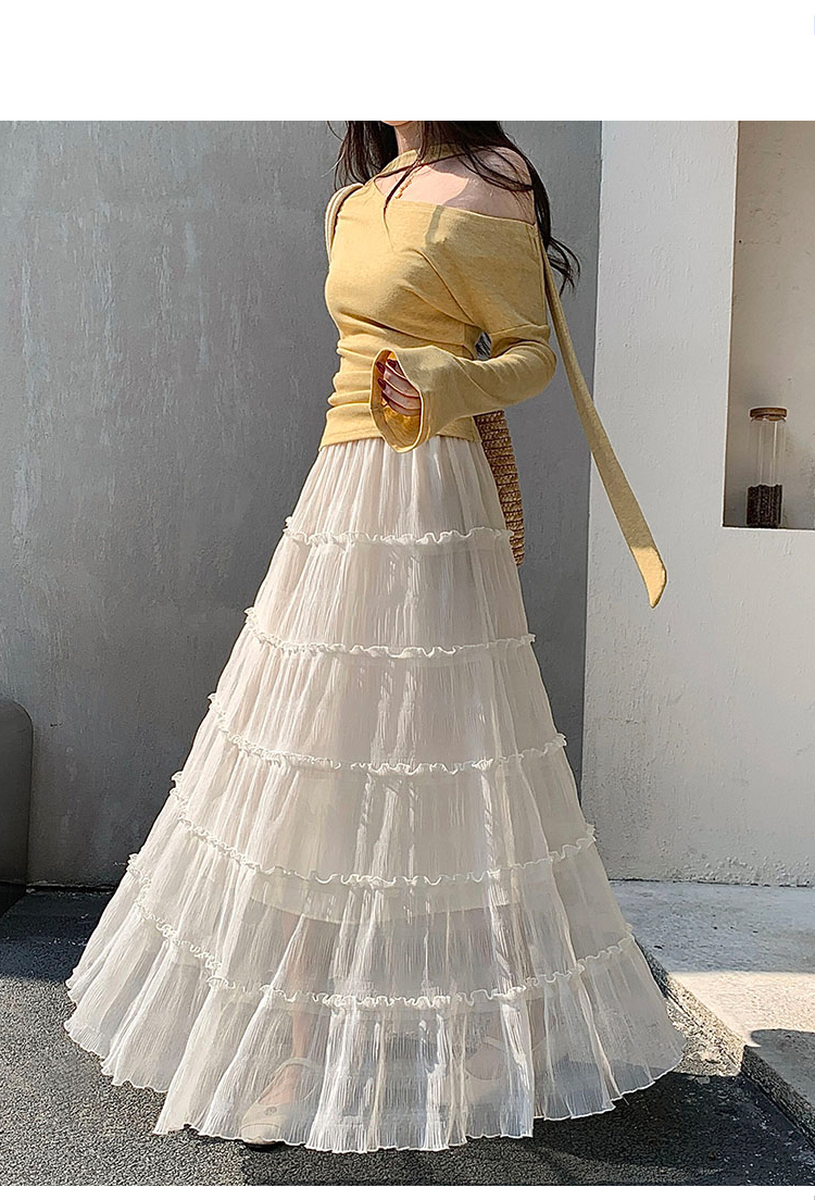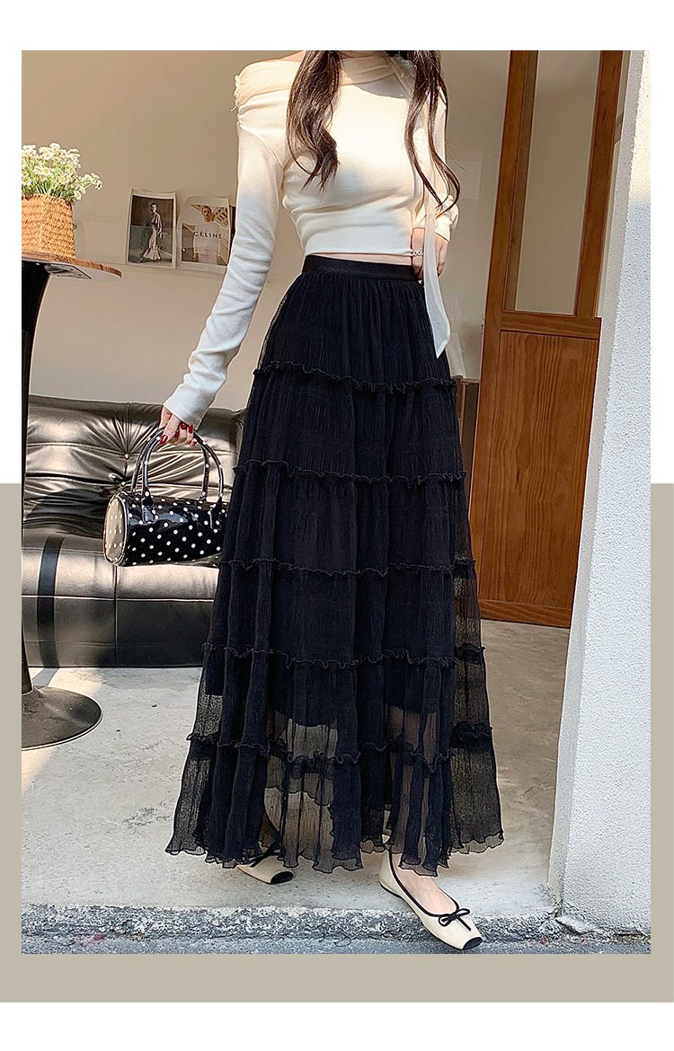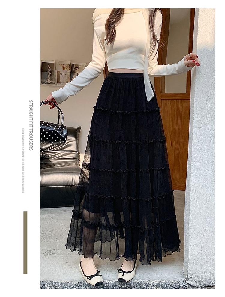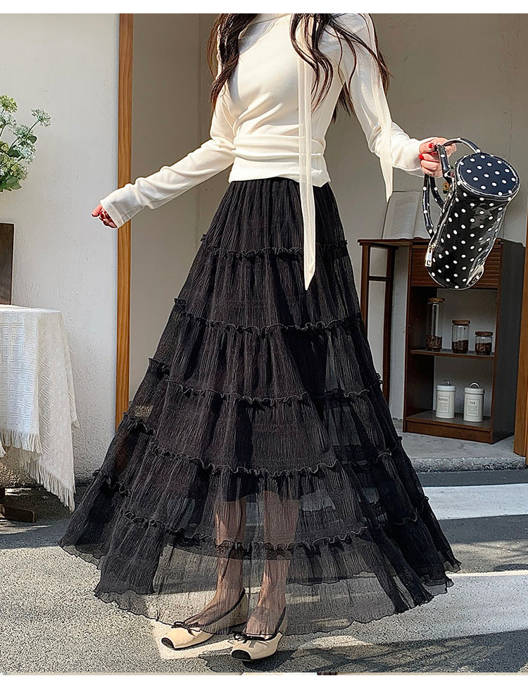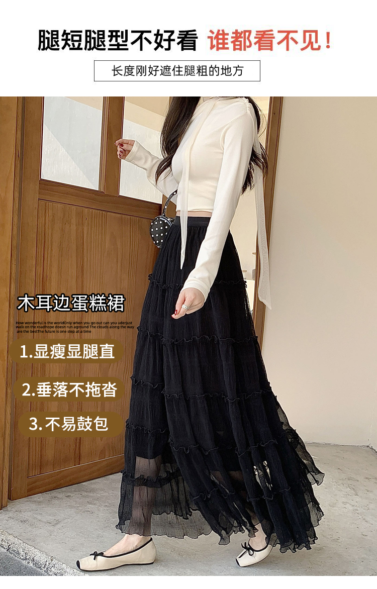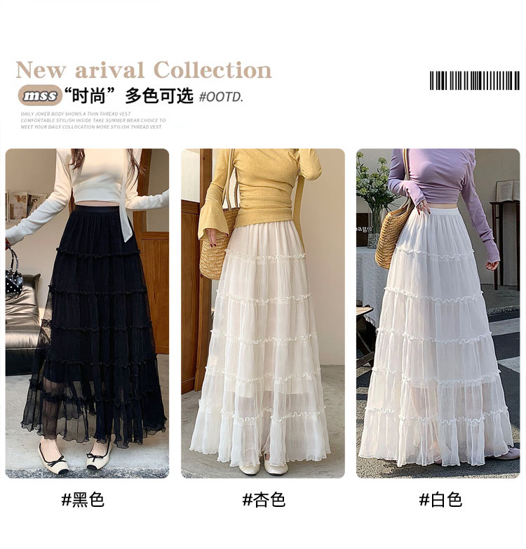 우아한 큰 진자 주름 질감 센스 망사 반신 스커트 여성 여름 얇은 스타일 패션 한 마디 프릴 케이크 드레스