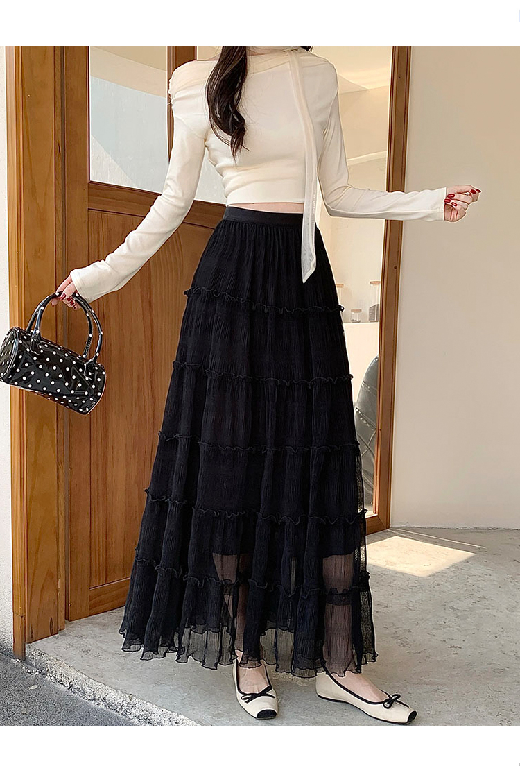 프랑스식 부드러운 바람 요정 가스 케이크 쉬폰 반신 스커트 여성 2026 봄 새로운 하이웨이스트 프릴 a 단어 길이 치마