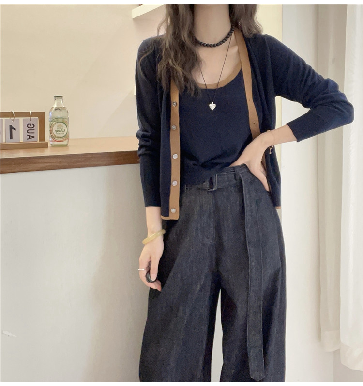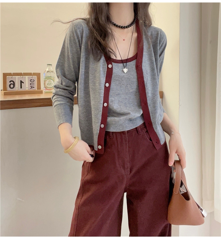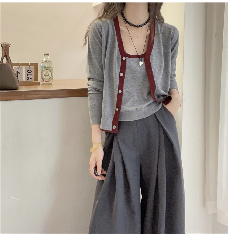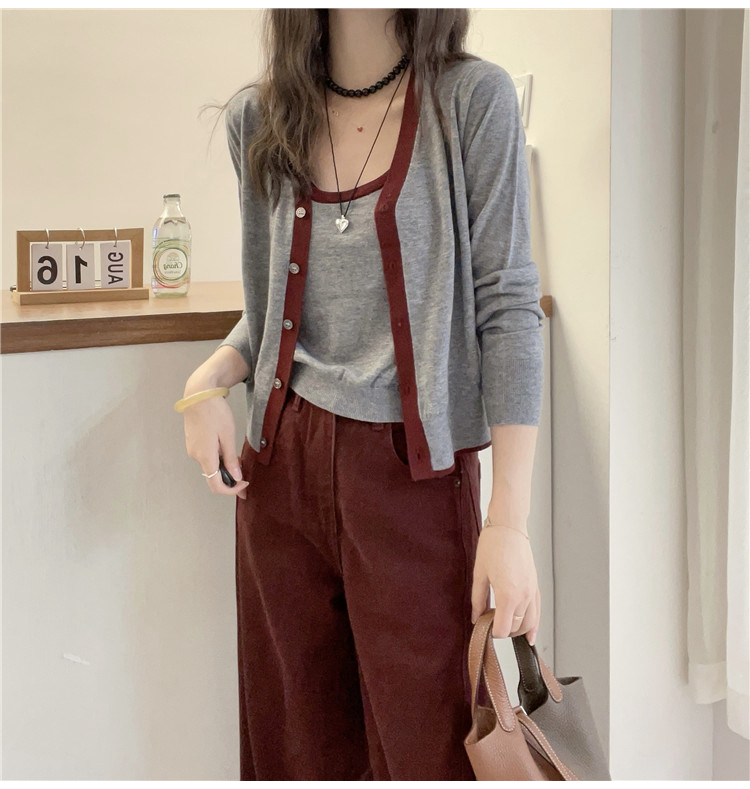 패치워크 색상 측면 얇은 양모 니트 오픈 가디건 스웨터 두 조각 여성 세트 유럽 역 2026 봄 새로운 유럽 상품 여성 의류 트렌디