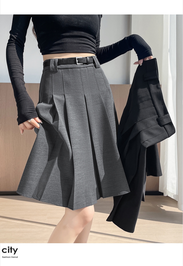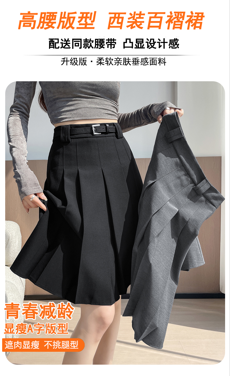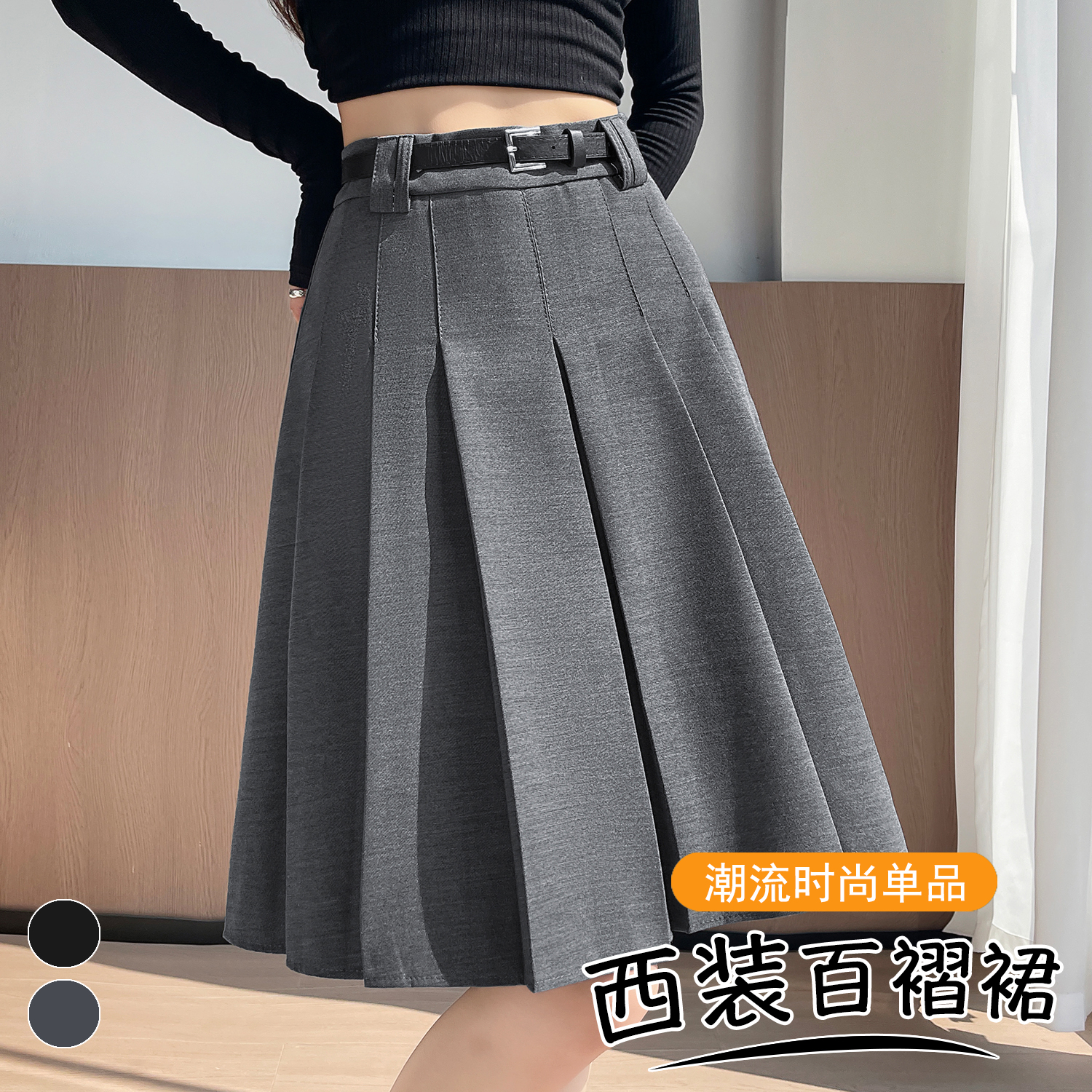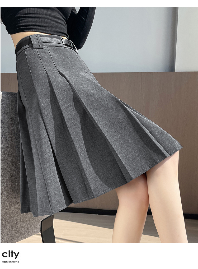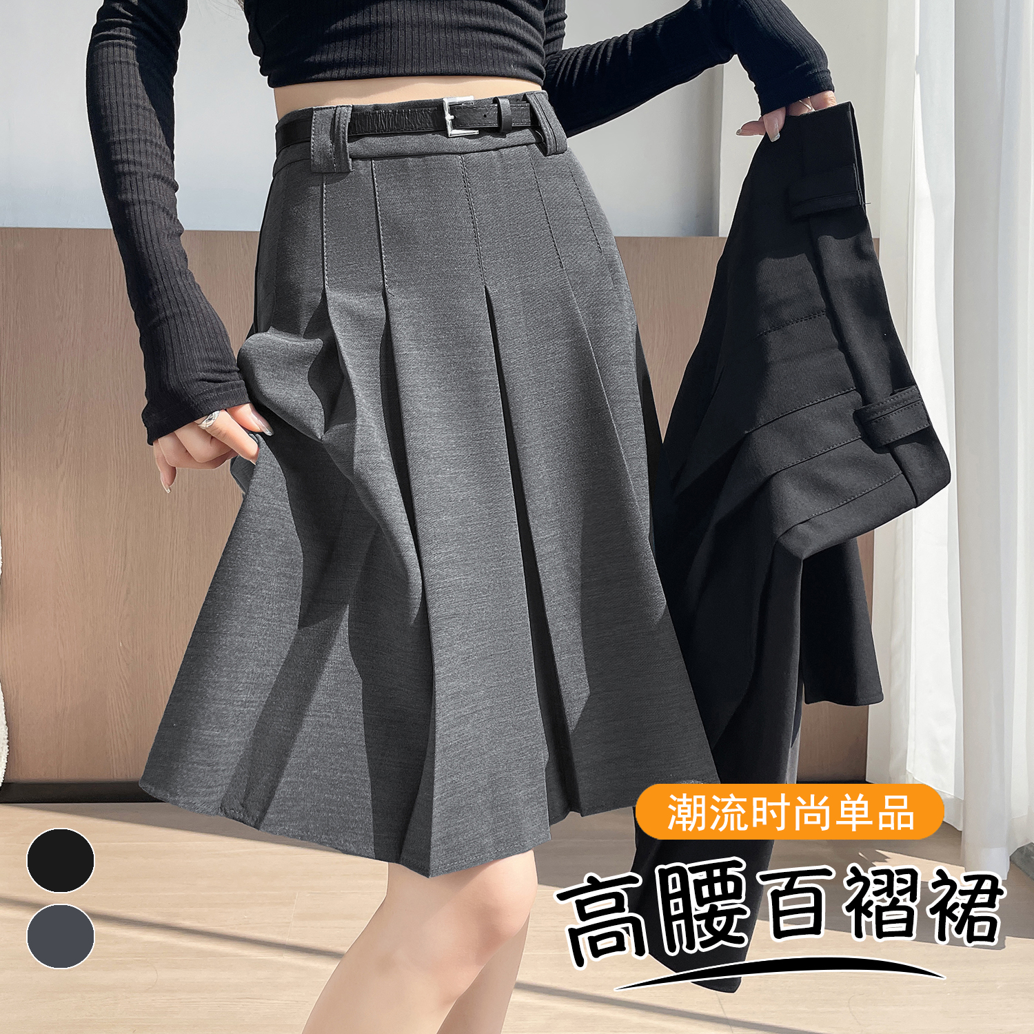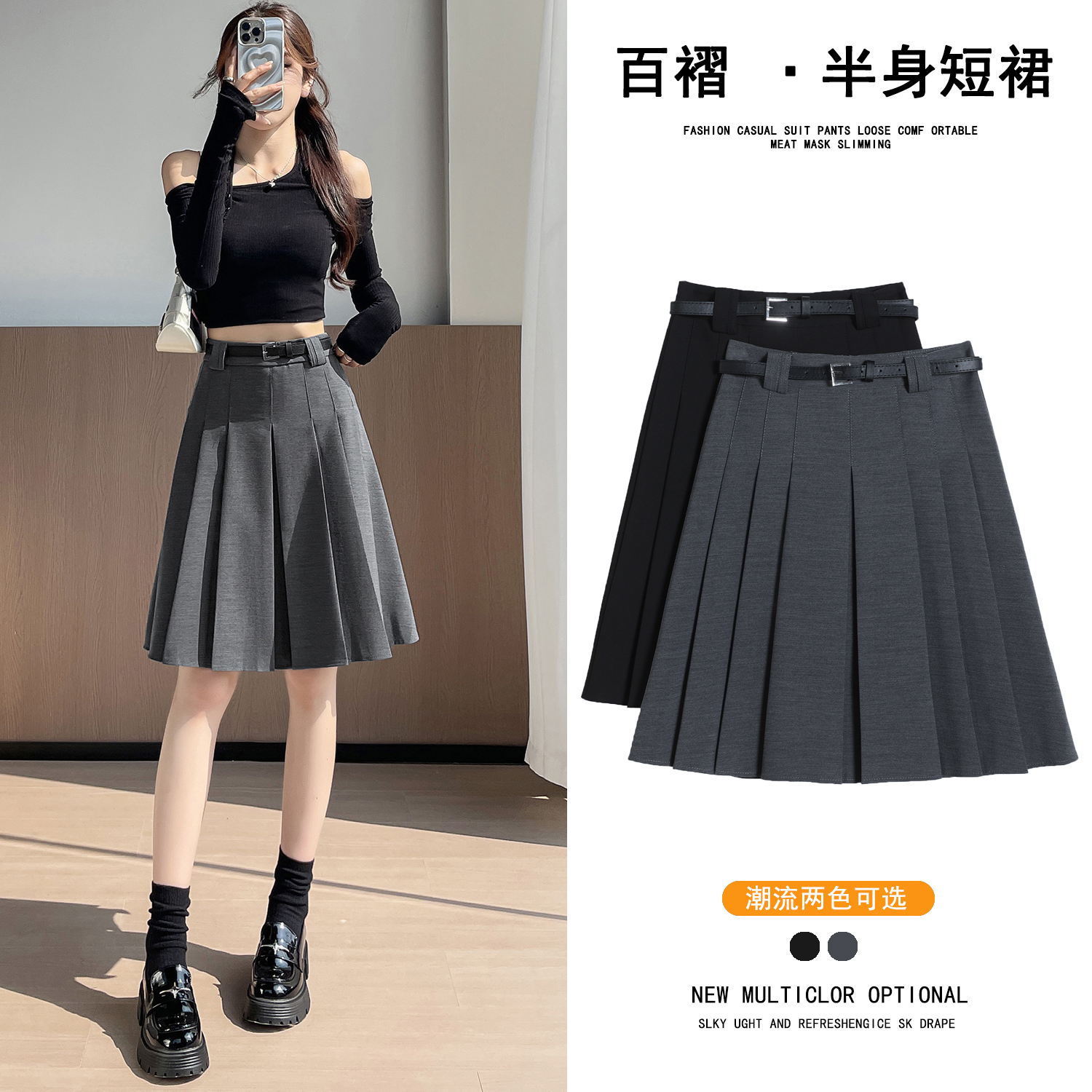 실사 2026 봄 여름 회색 플리츠 반신 스커트 여성 새로운 하이웨이스트 슬림해 보이는 한 마디 정장 다용도 중간 스커트