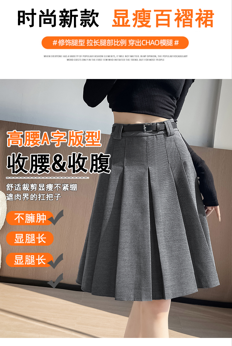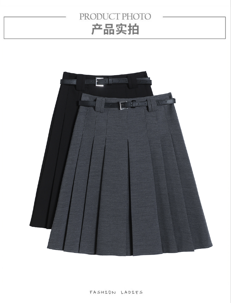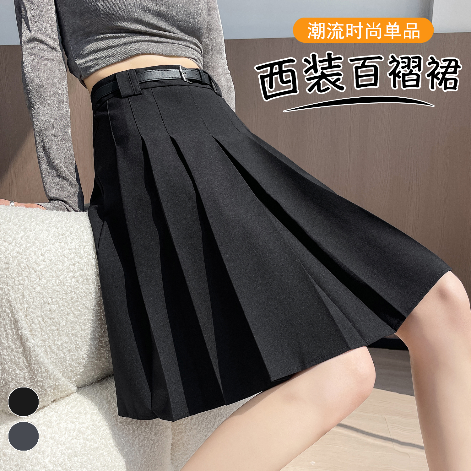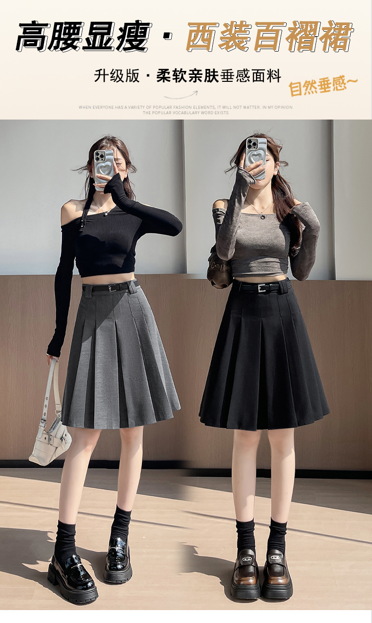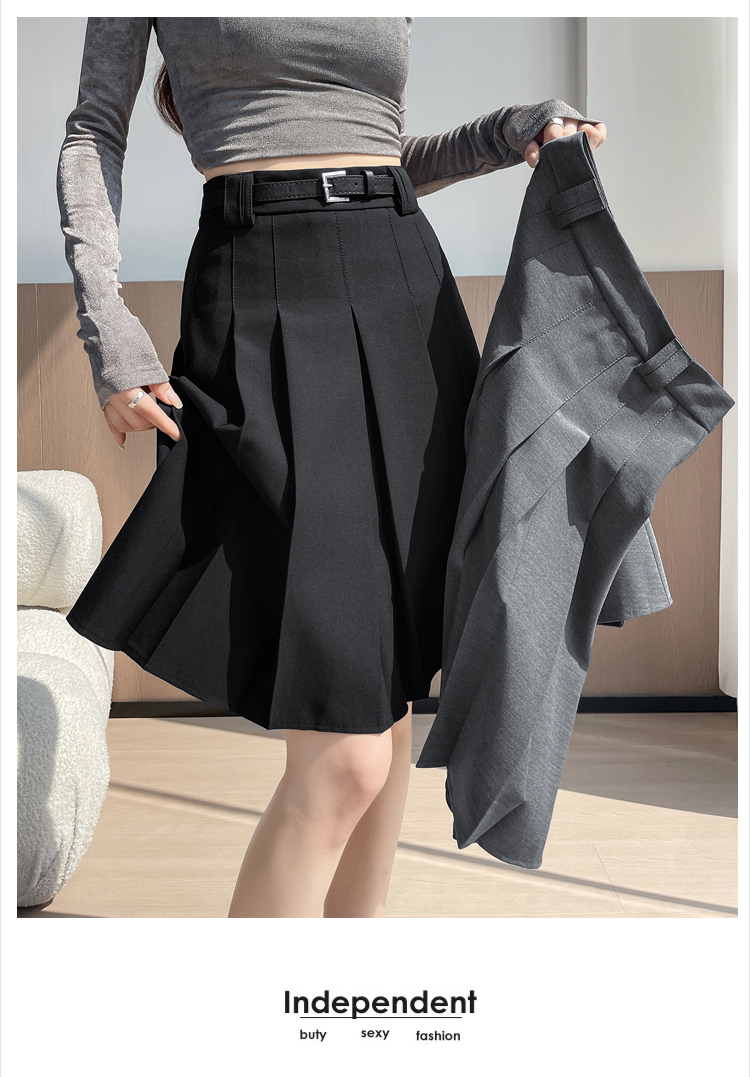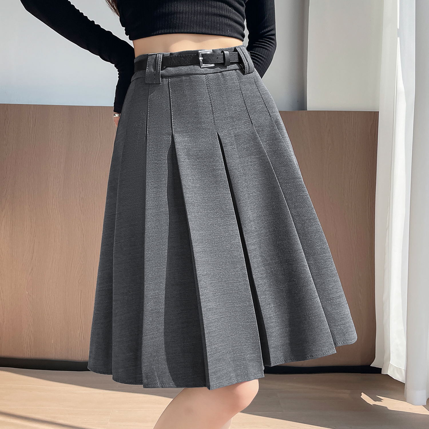 실사 2026 봄 여름 회색 플리츠 반신 스커트 여성 새로운 하이웨이스트 슬림해 보이는 한 마디 정장 다용도 중간 스커트