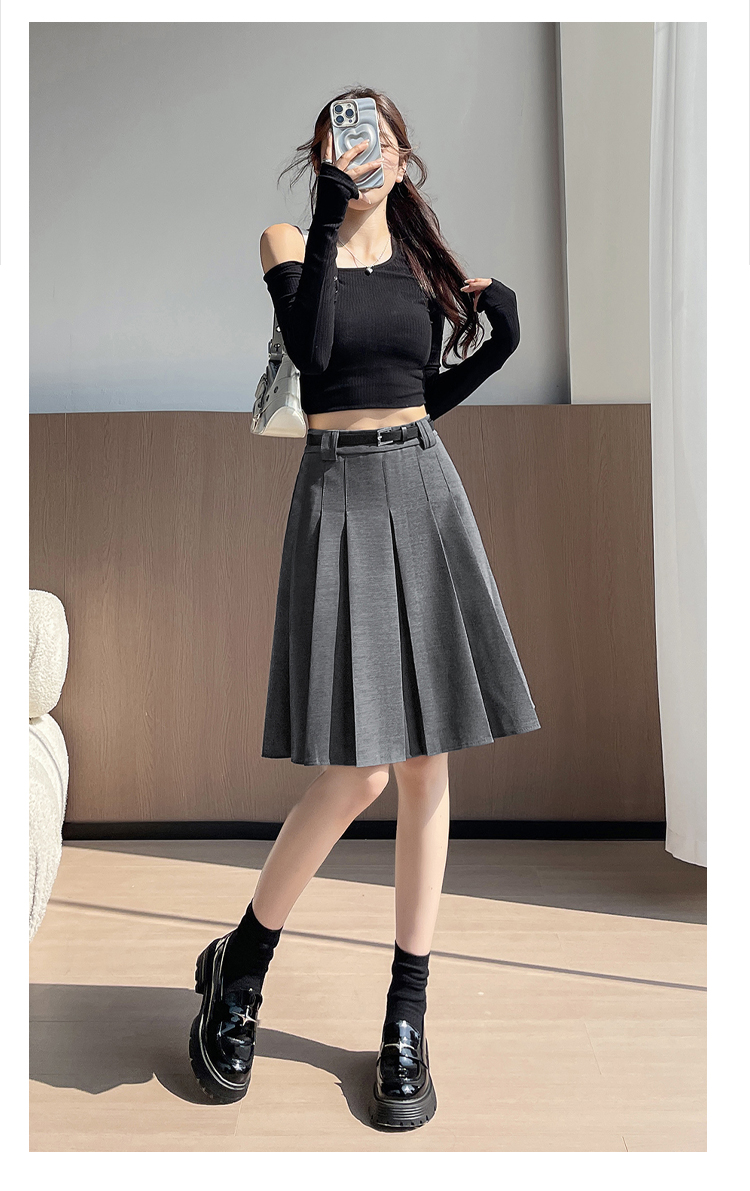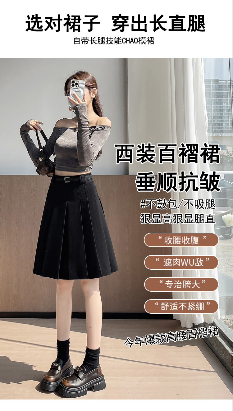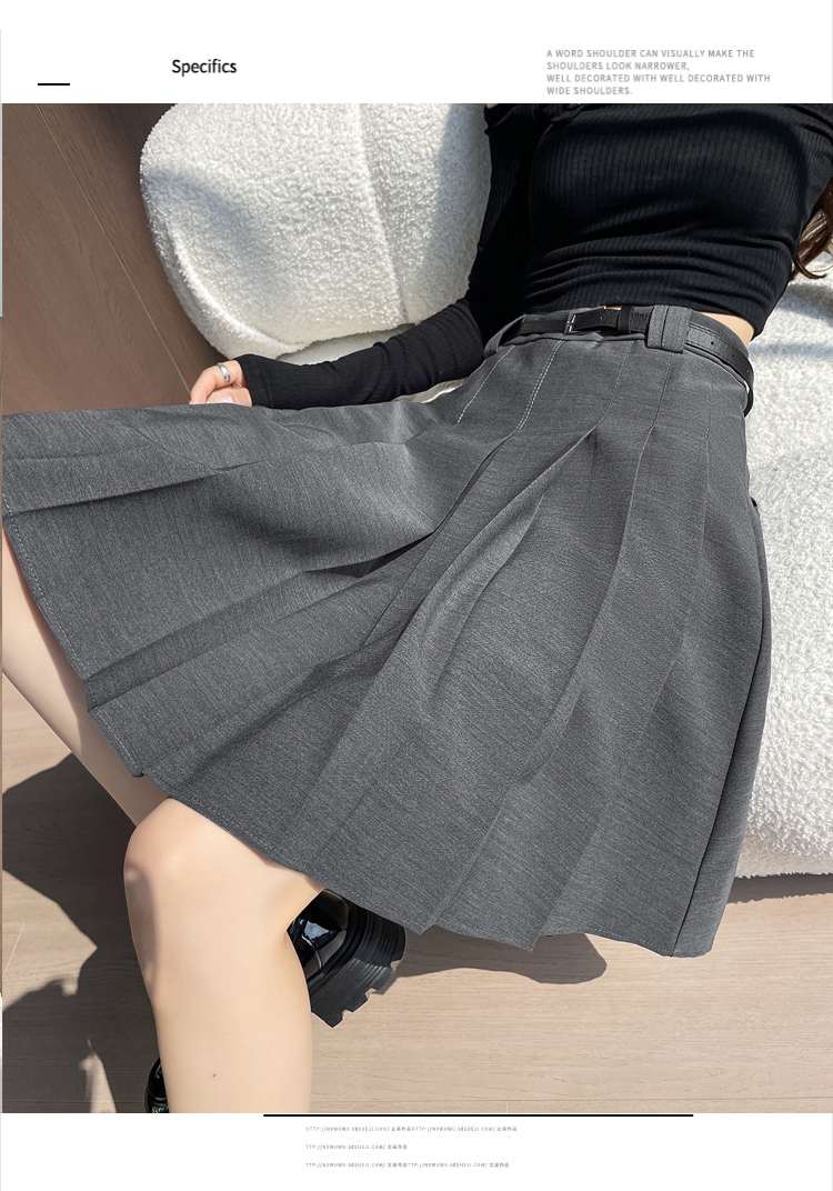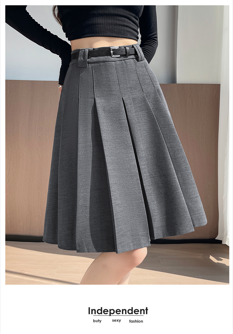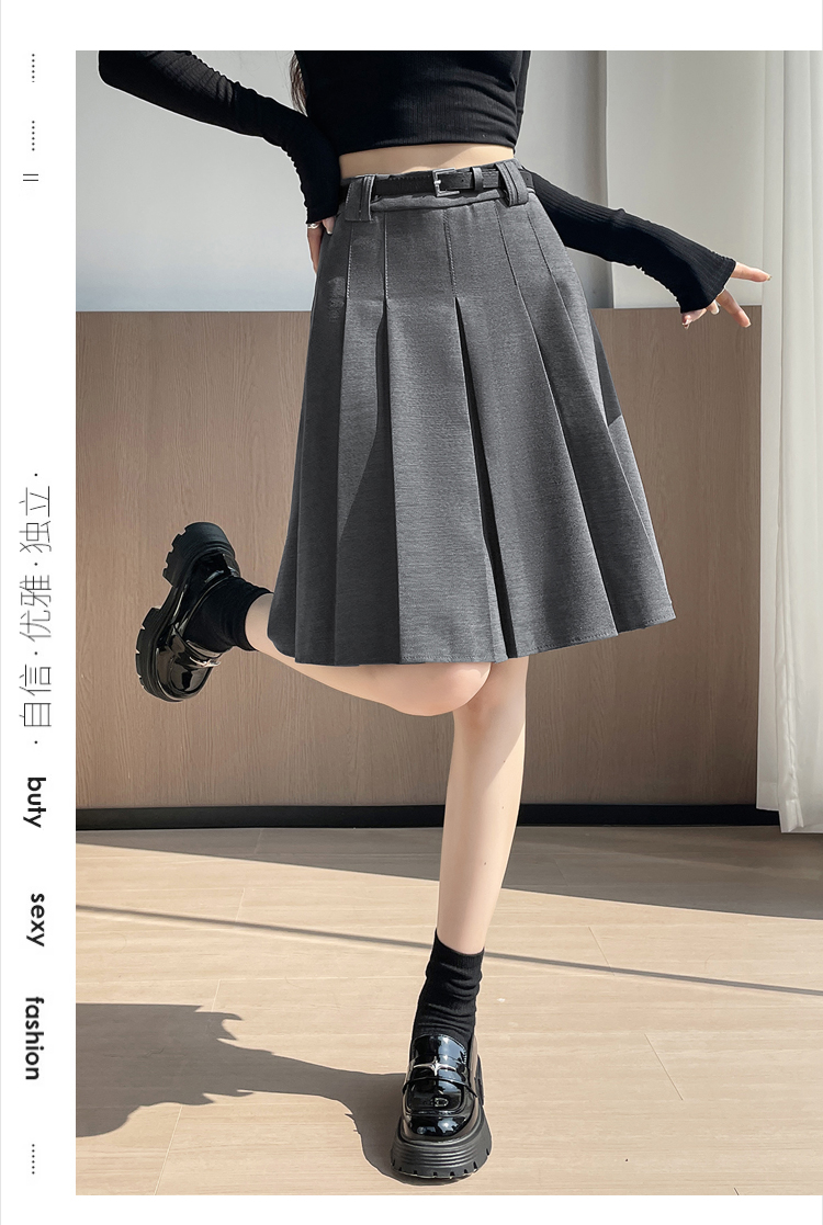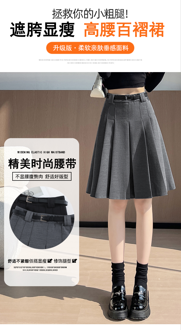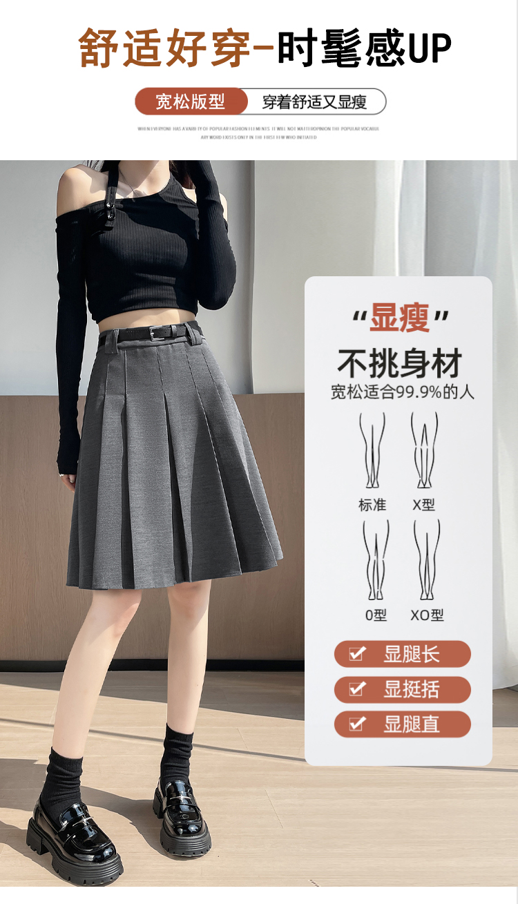 실사 2026 봄 여름 회색 플리츠 반신 스커트 여성 새로운 하이웨이스트 슬림해 보이는 한 마디 정장 다용도 중간 스커트