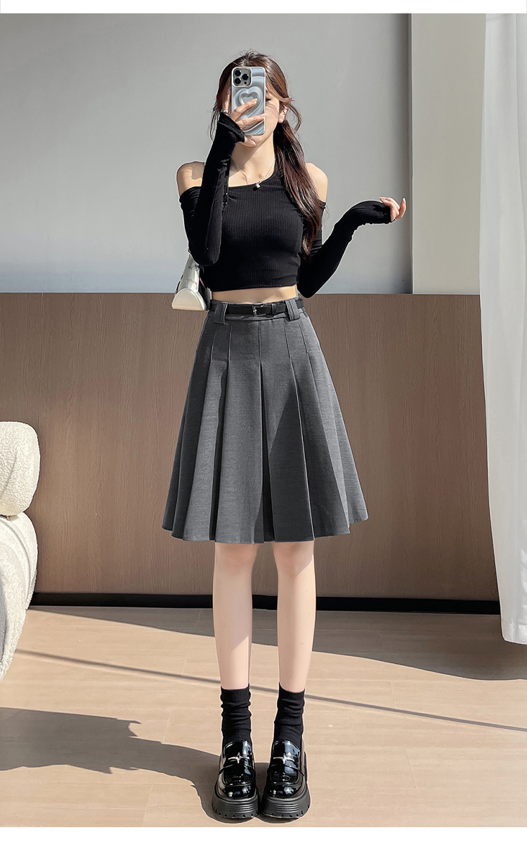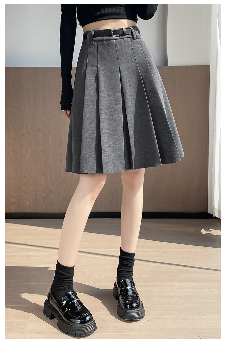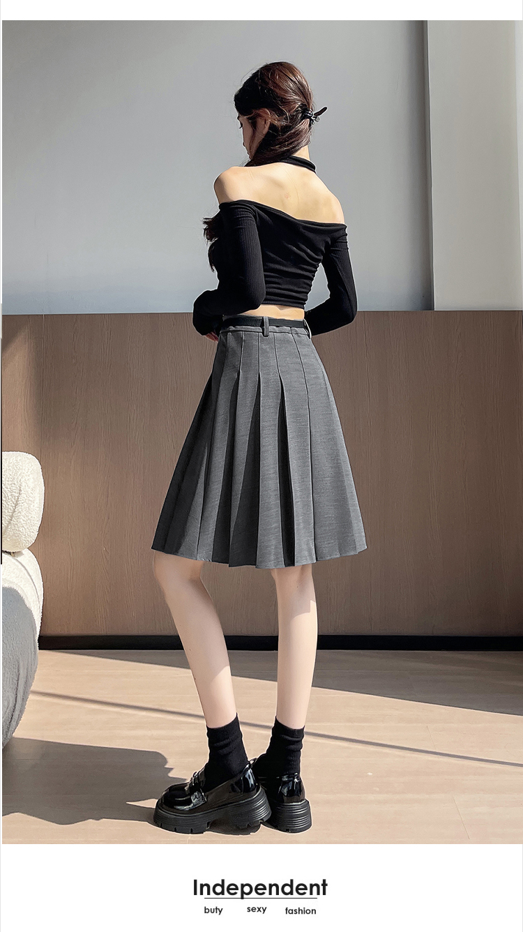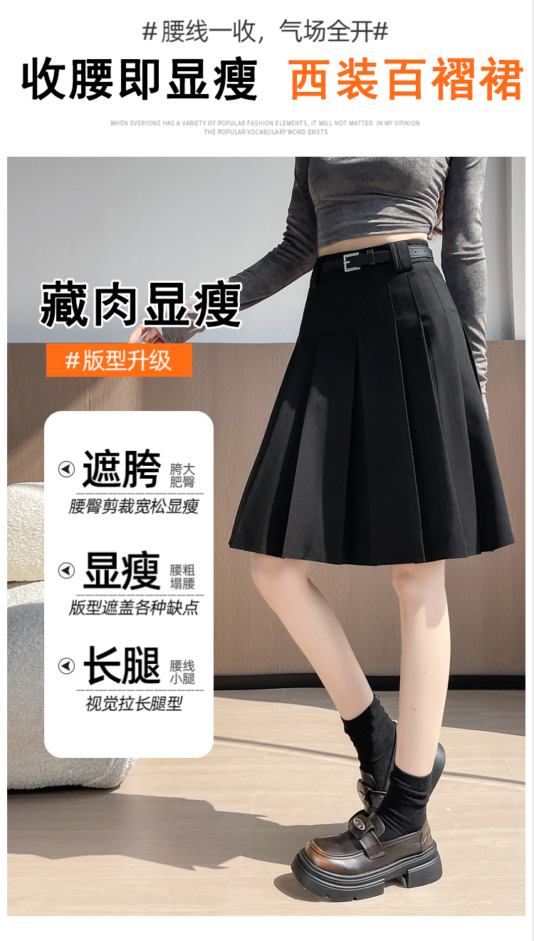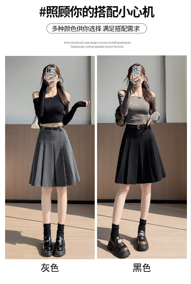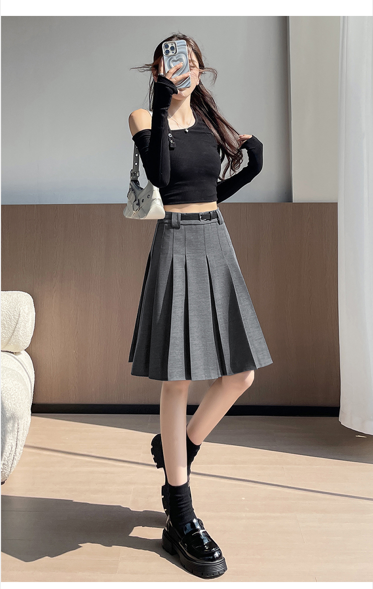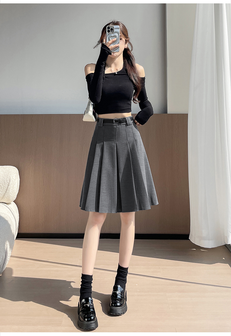 실사 2026 봄 여름 회색 플리츠 반신 스커트 여성 새로운 하이웨이스트 슬림해 보이는 한 마디 정장 다용도 중간 스커트
