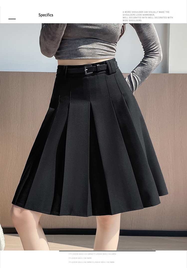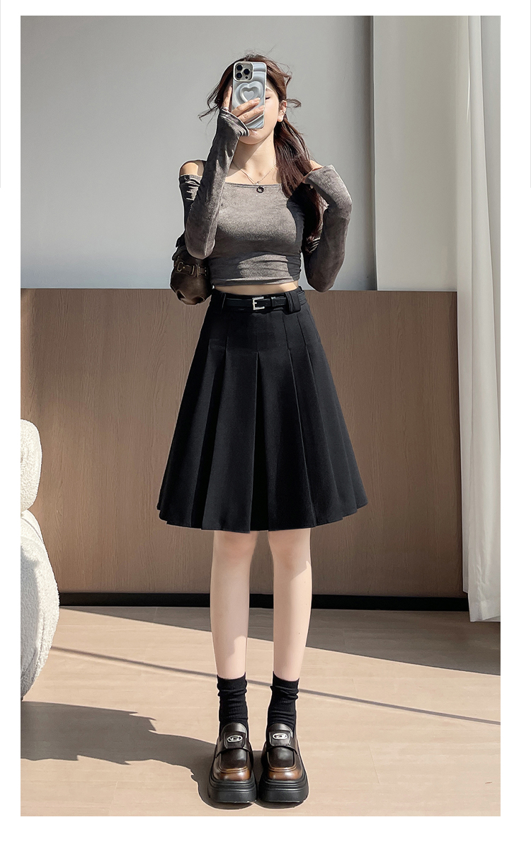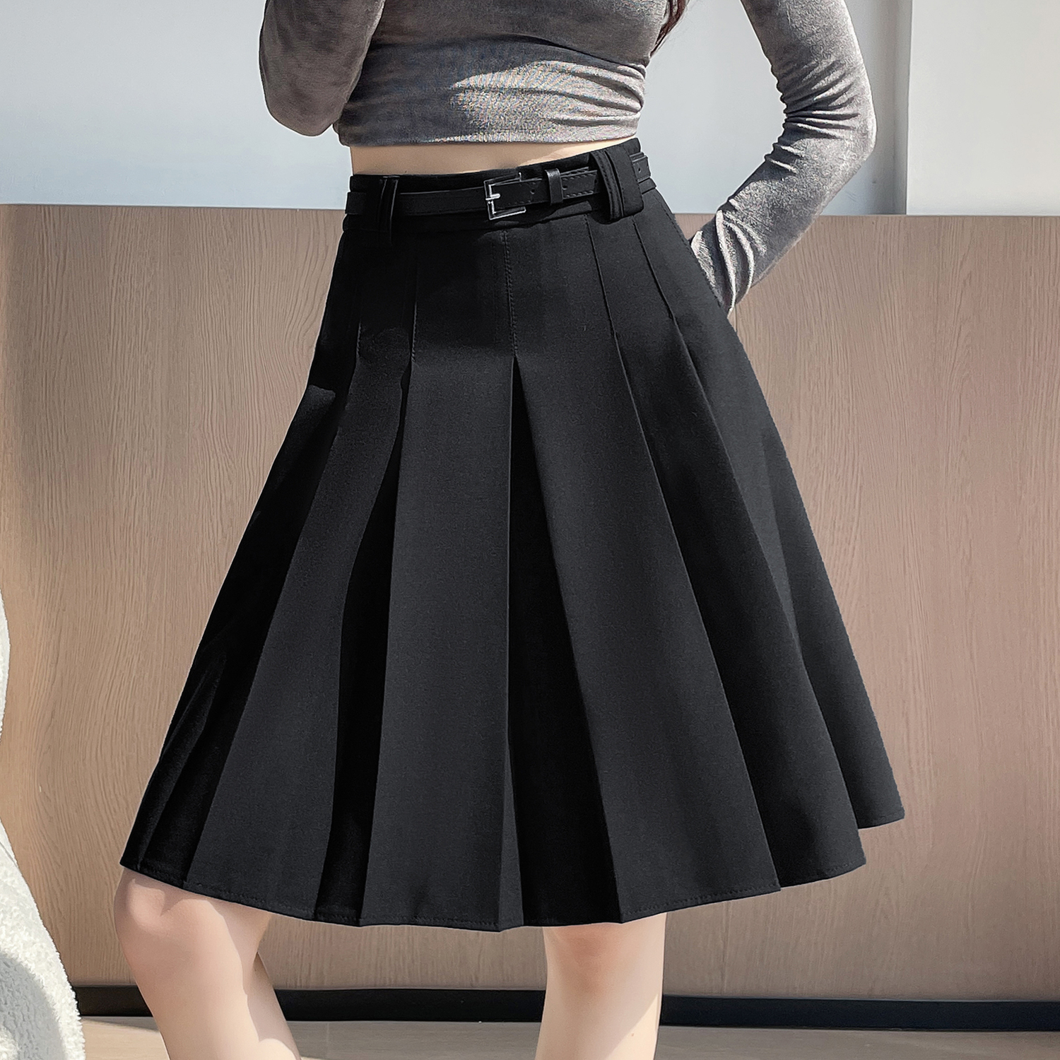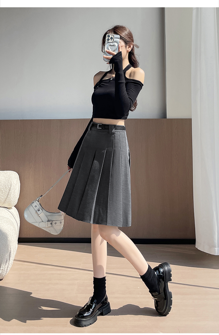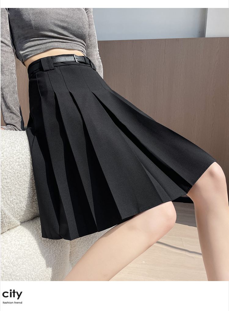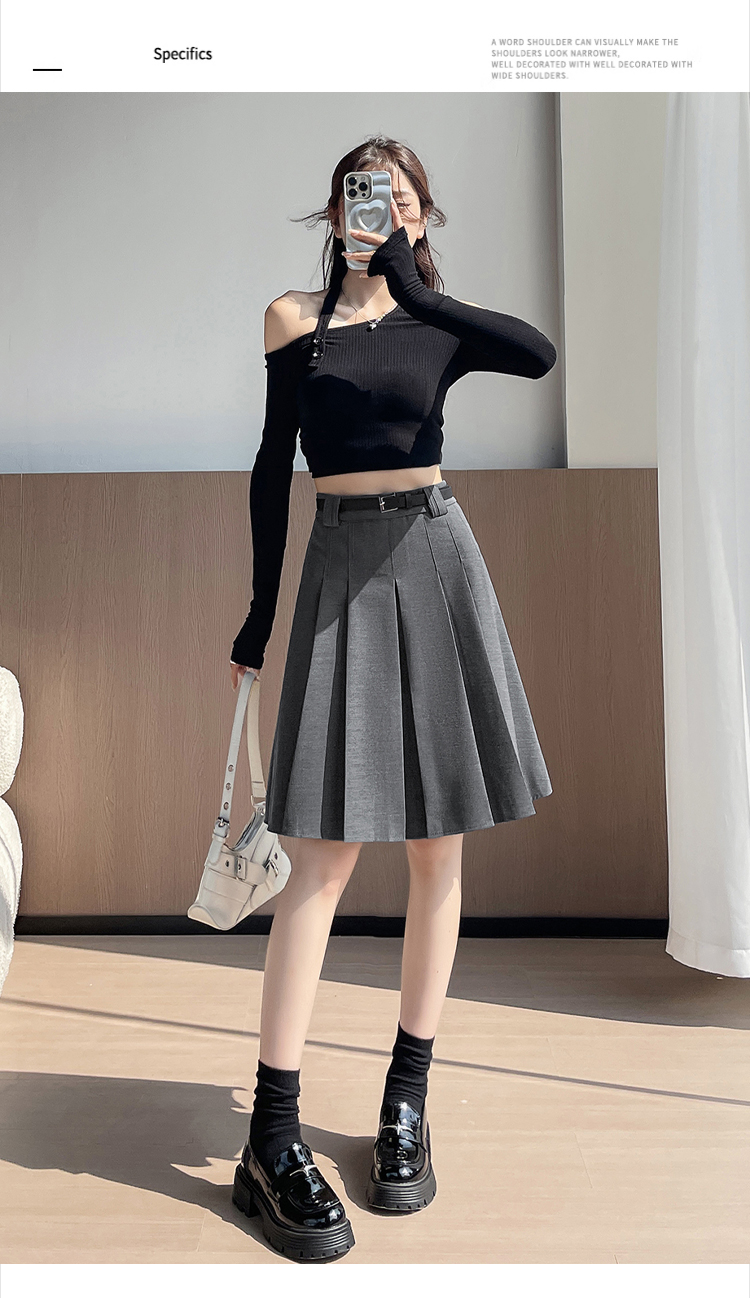 실사 2026 봄 여름 회색 플리츠 반신 스커트 여성 새로운 하이웨이스트 슬림해 보이는 한 마디 정장 다용도 중간 스커트