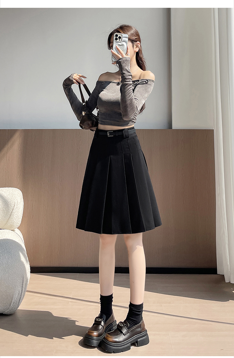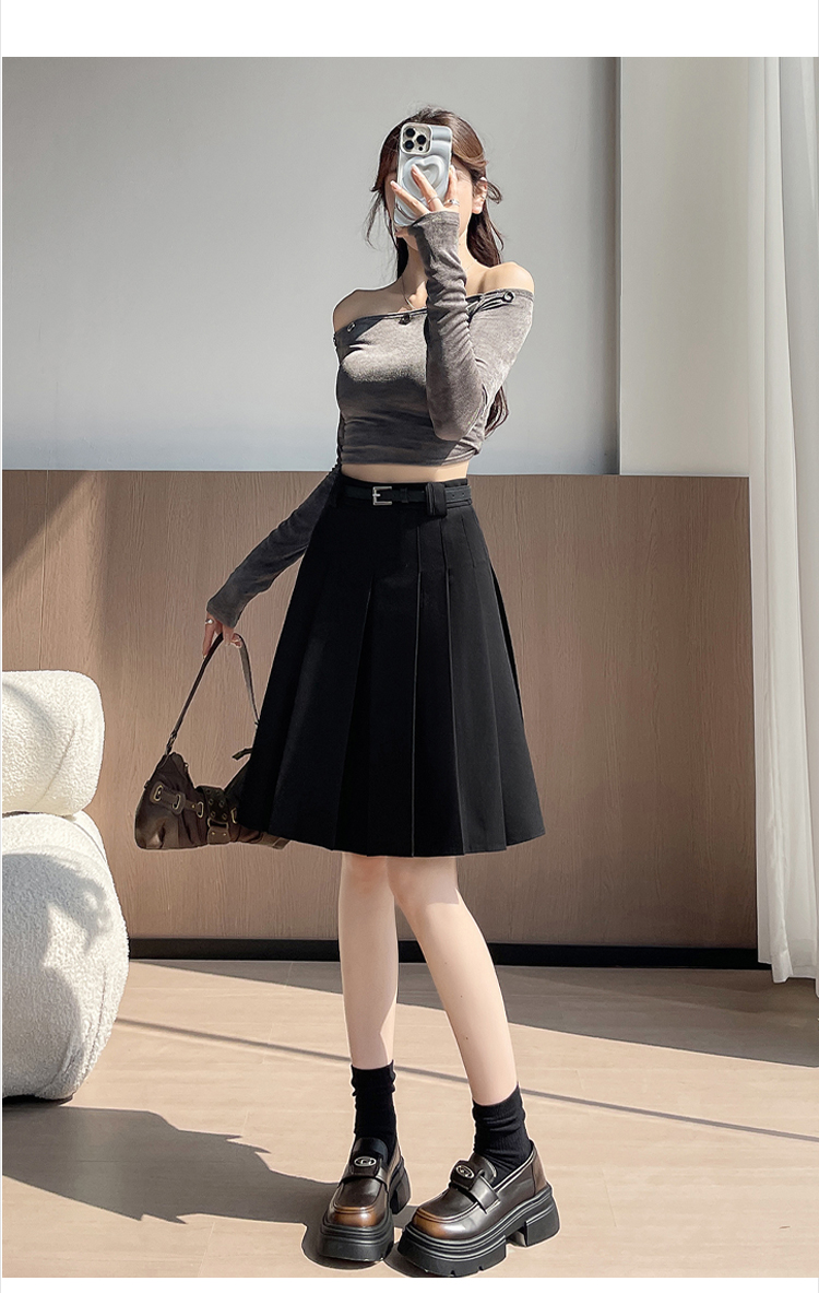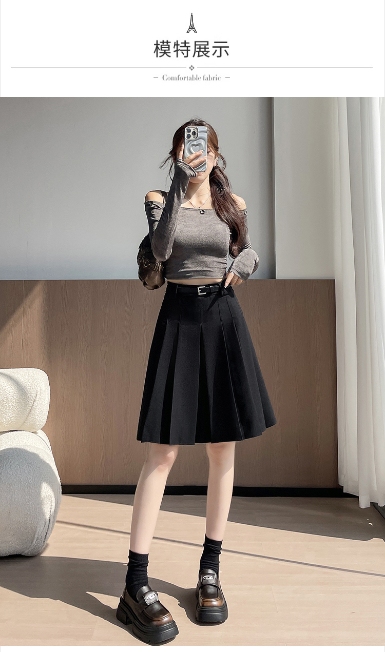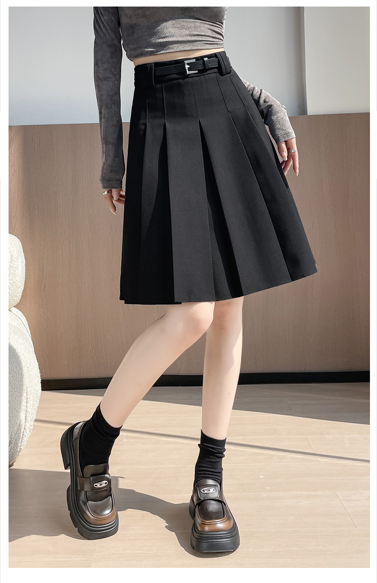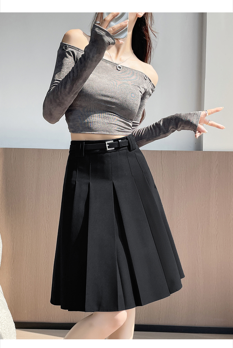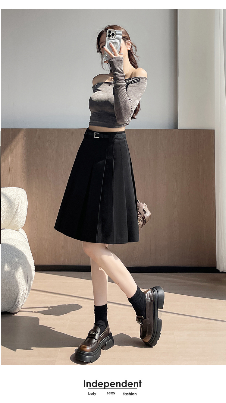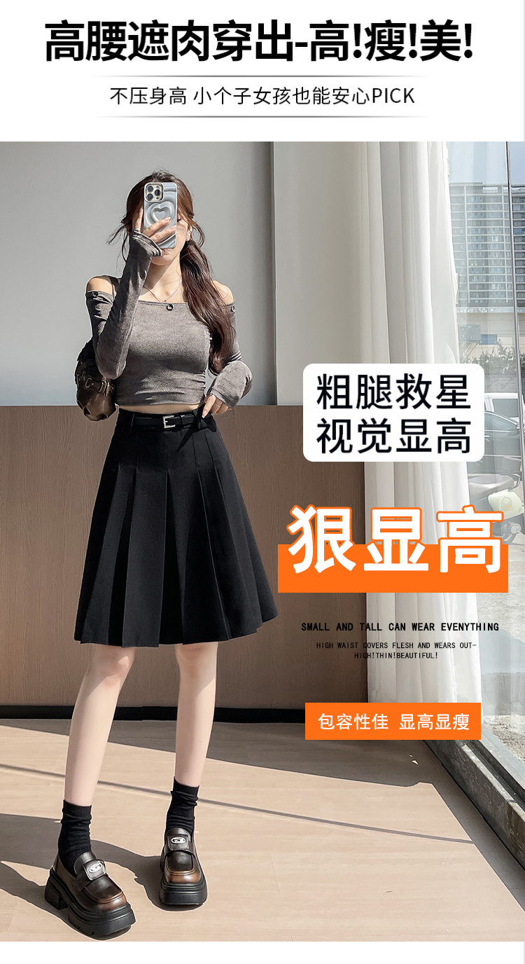 실사 2026 봄 여름 회색 플리츠 반신 스커트 여성 새로운 하이웨이스트 슬림해 보이는 한 마디 정장 다용도 중간 스커트