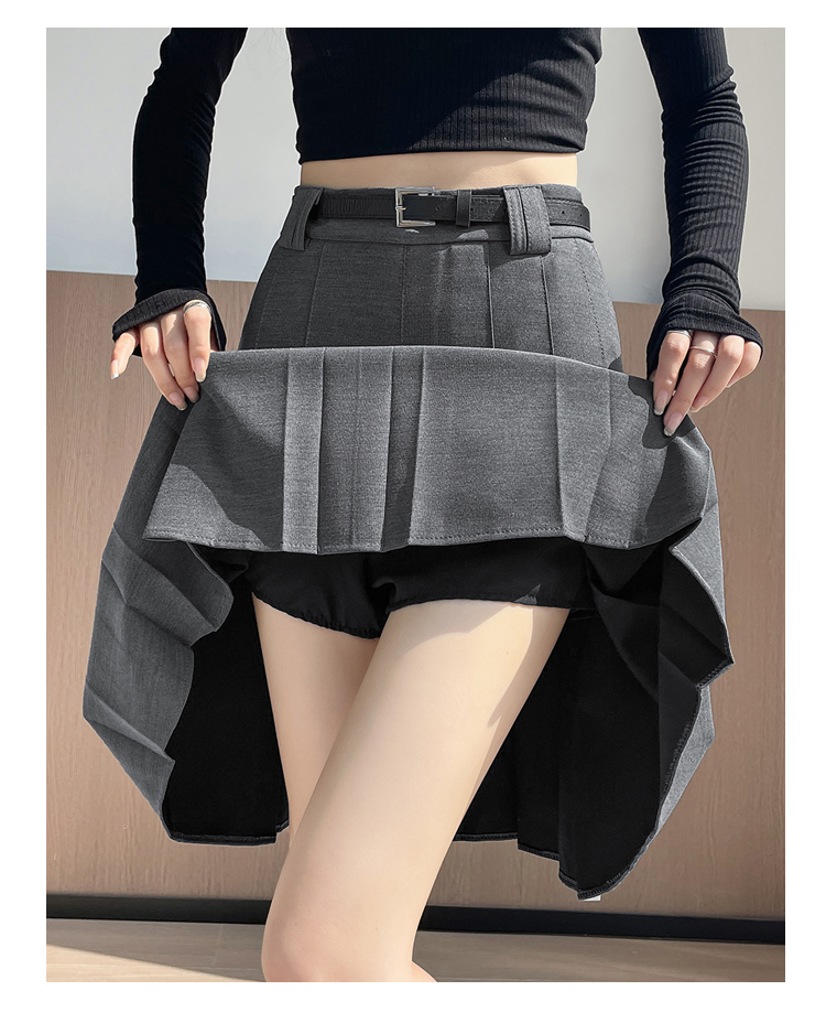 실사 2026 봄 여름 새로운 측면 트임 하이웨이스트 슬림해 보이는 치마바지 외국 가스 다용도 회색 정장 반신 스커트 여성