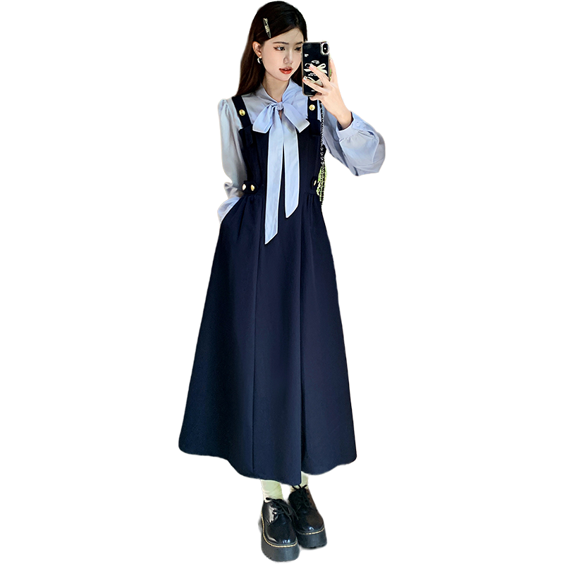 실사 품격 긴팔 점프 슈트 치마 세트 빅 사이즈 2026 봄 가을 새로운 연령 감소 작은 키 베스트 투피스 세트